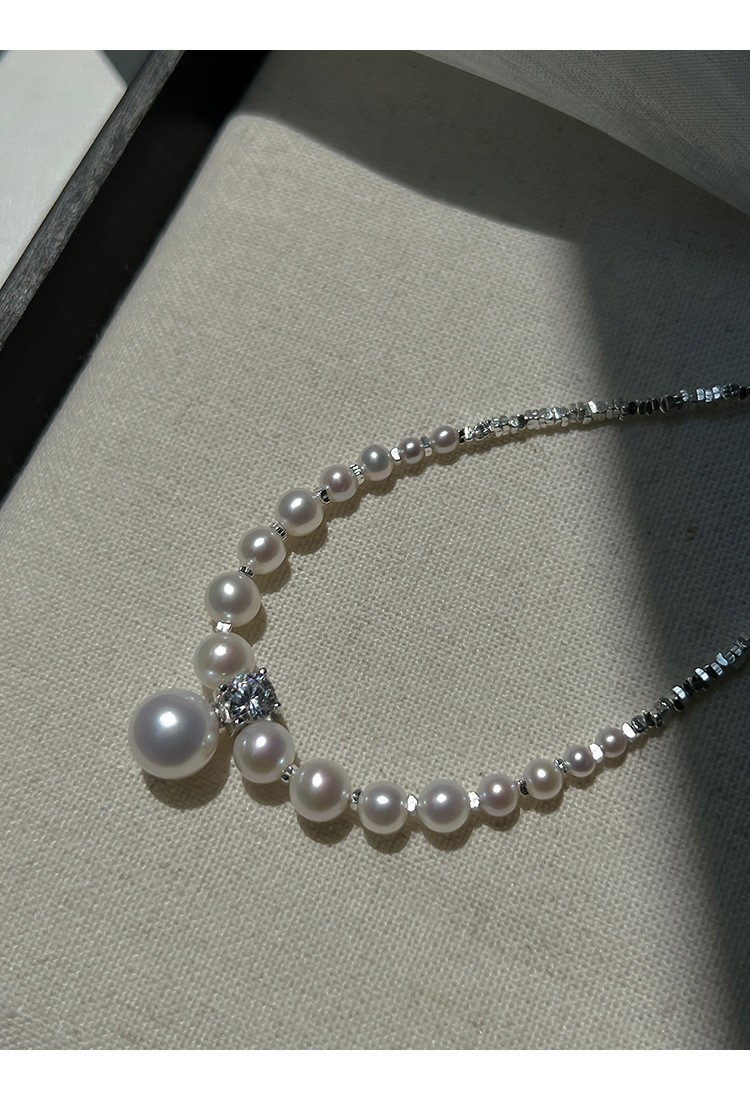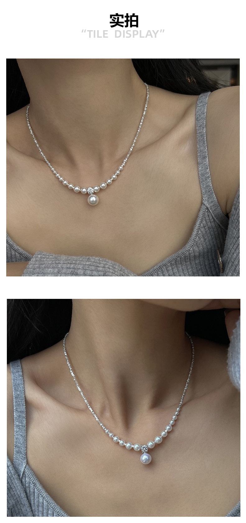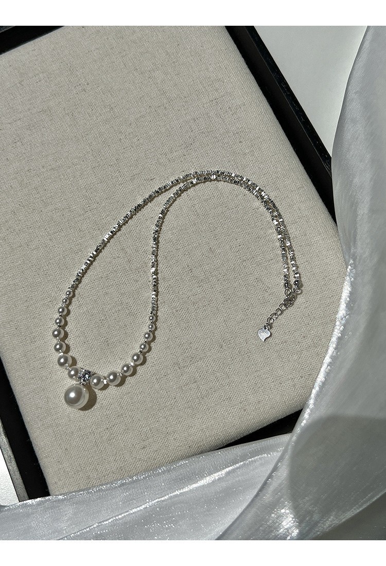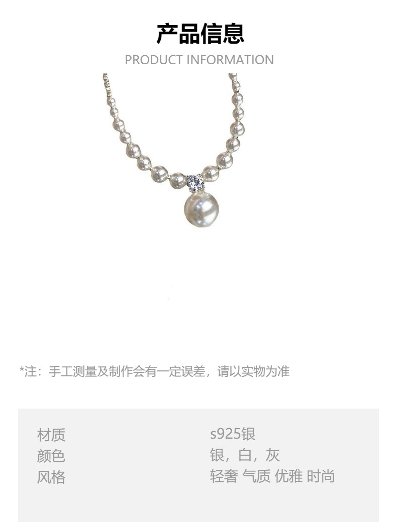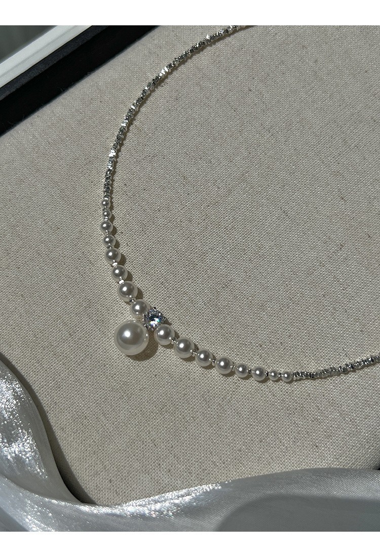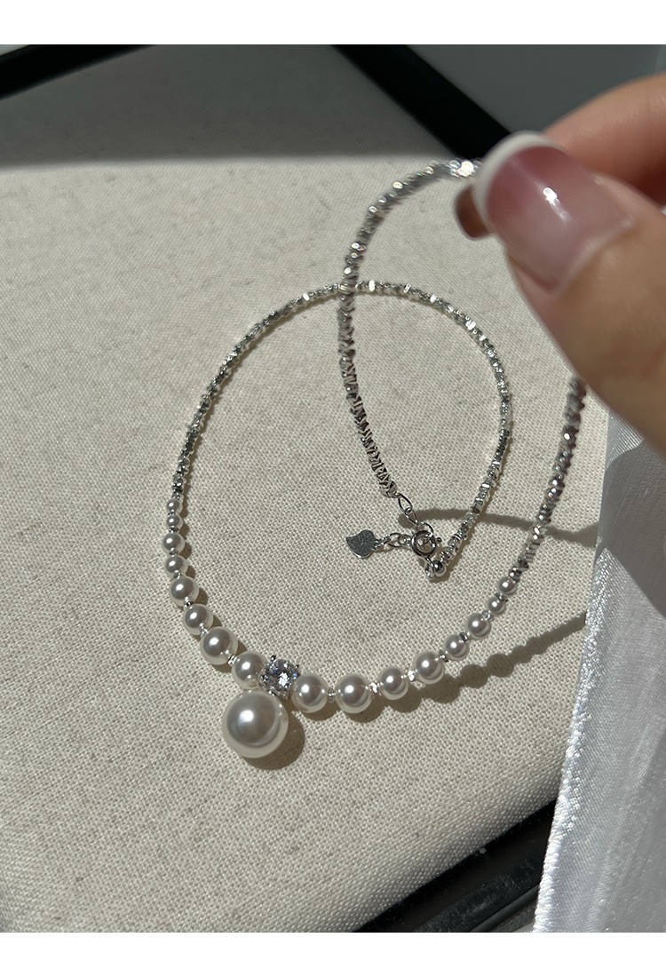 s925纯银施家珍珠锆石碎银子项链女高级小众设计感时尚百搭锁骨链