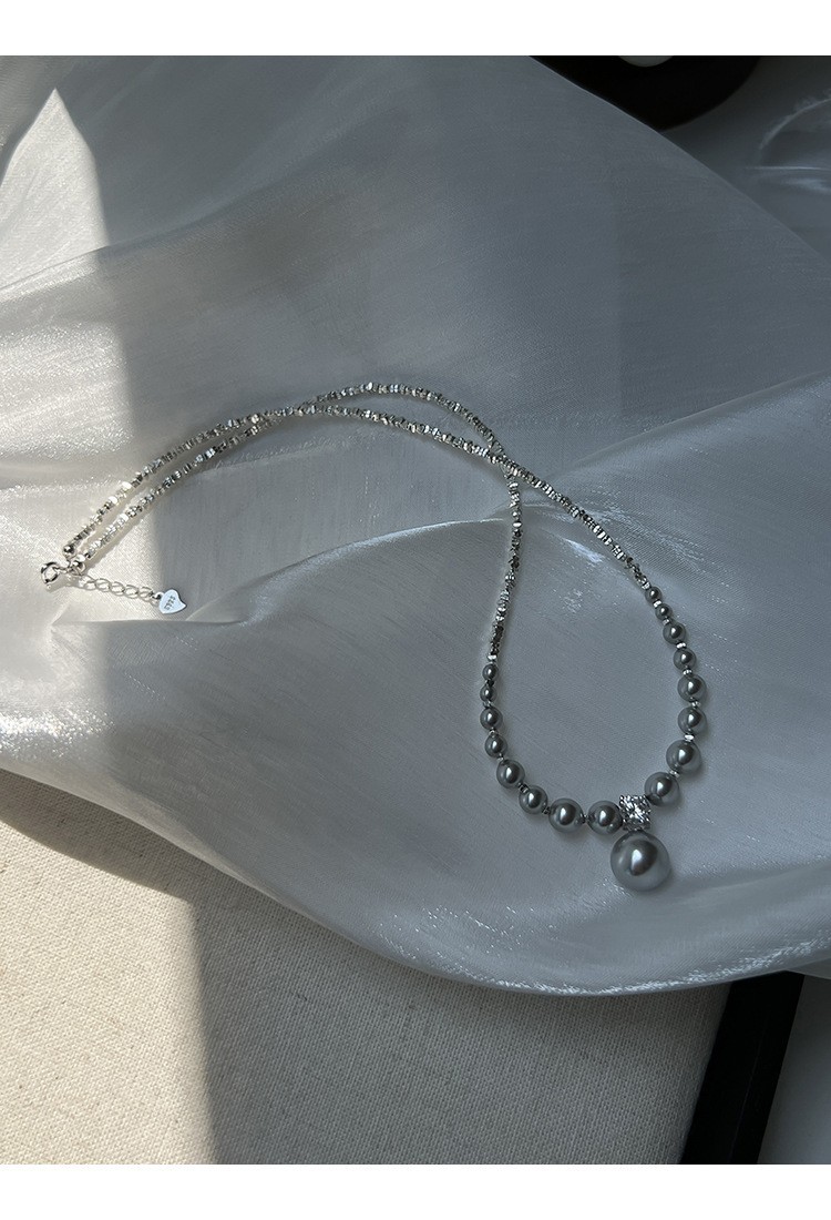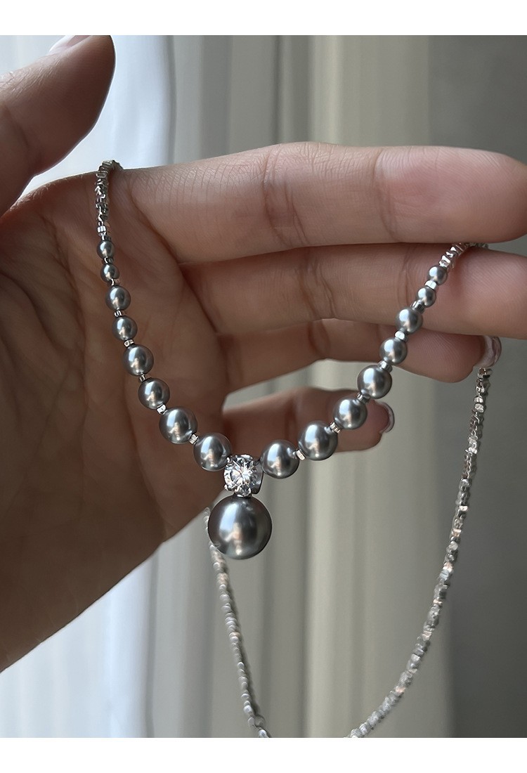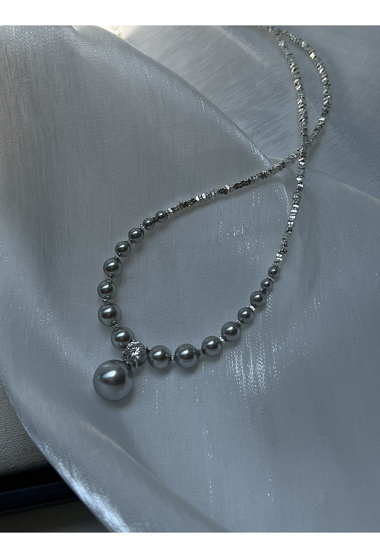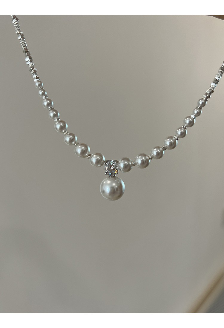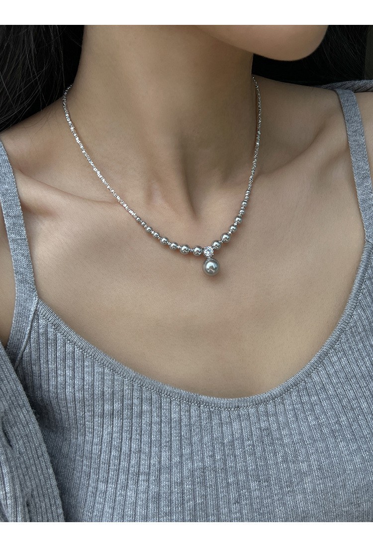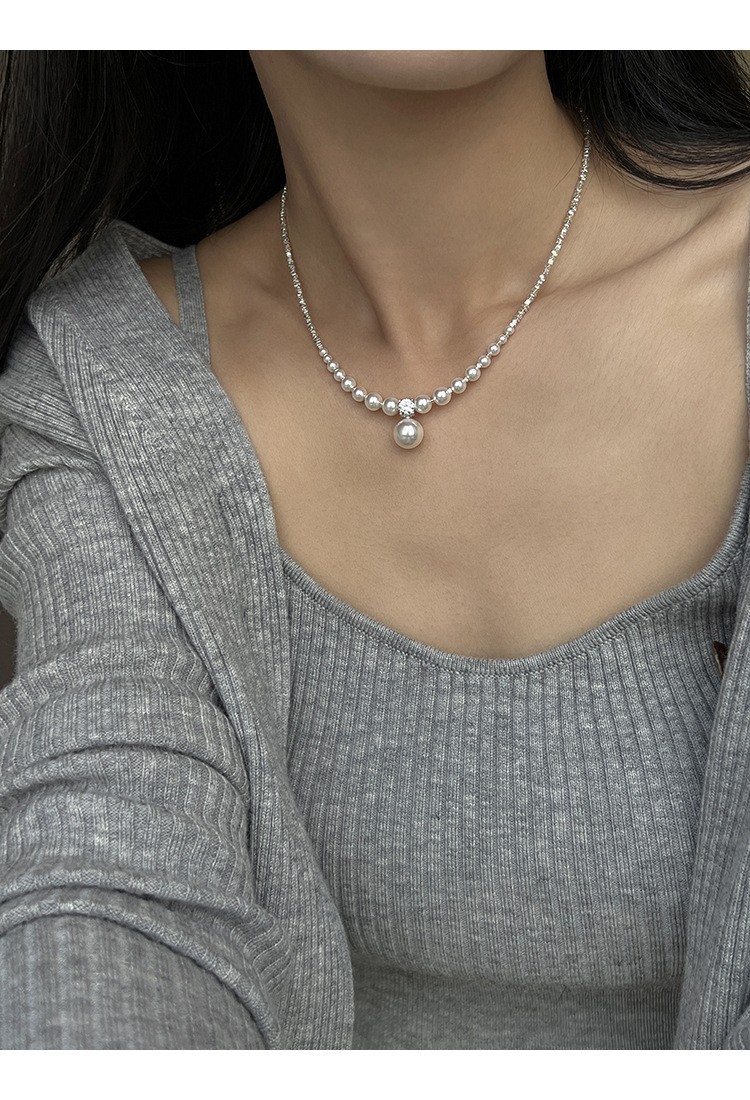 s925纯银施家珍珠锆石碎银子项链女高级小众设计感时尚百搭锁骨链