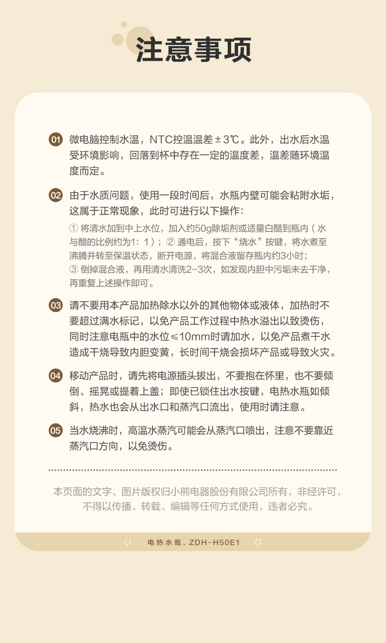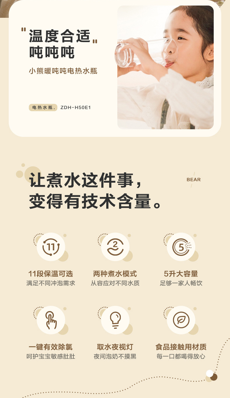 小熊电热水瓶恒温烧水壶家用自动保温一体电热水壶ZDH-H50E1