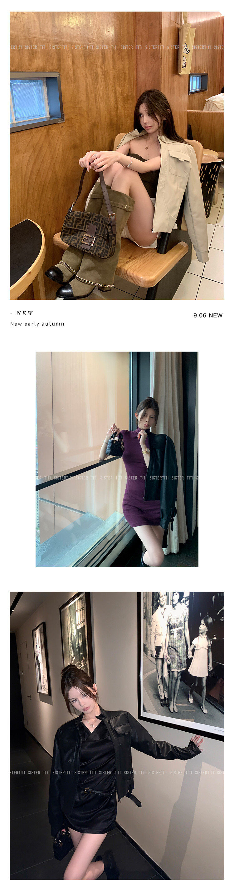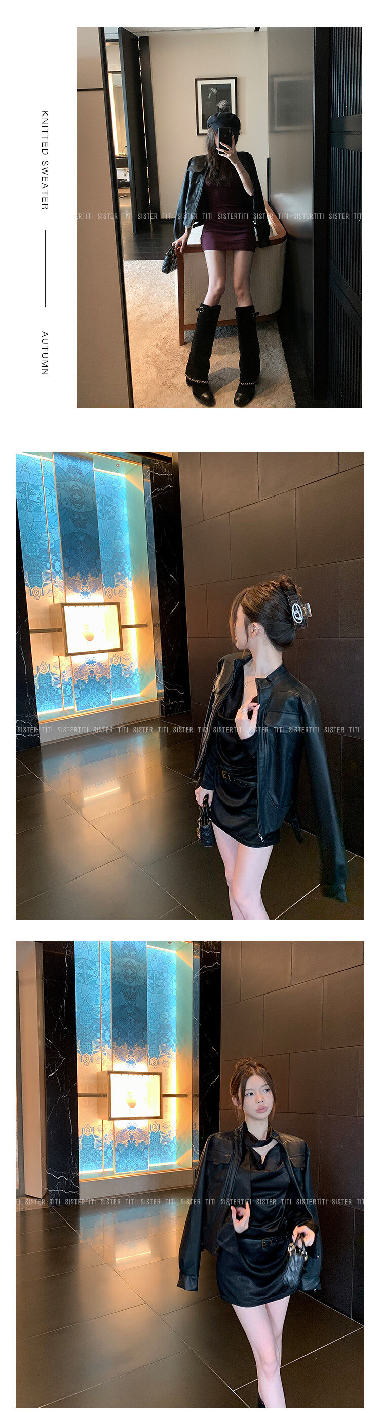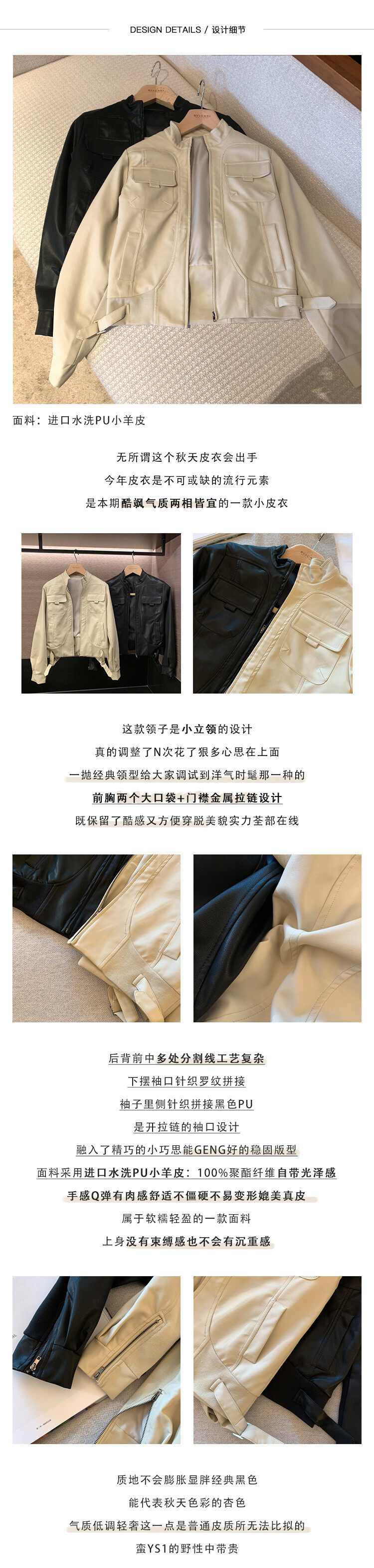 titi小姐姐【落日秋桐】两色立领口袋机车服夹克拉链长袖皮衣外套