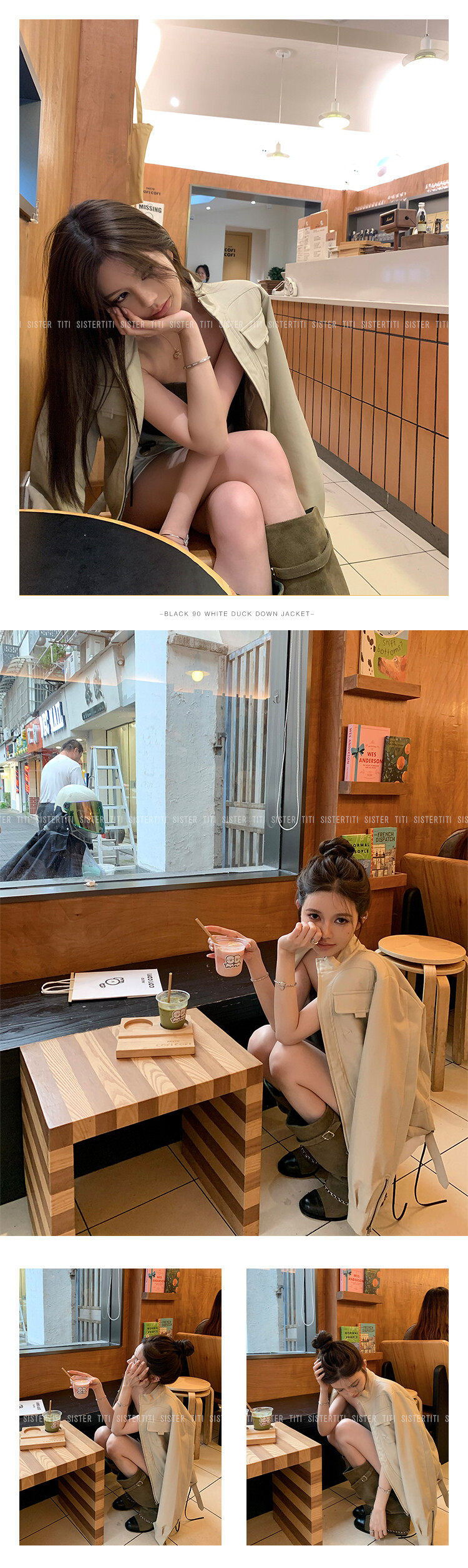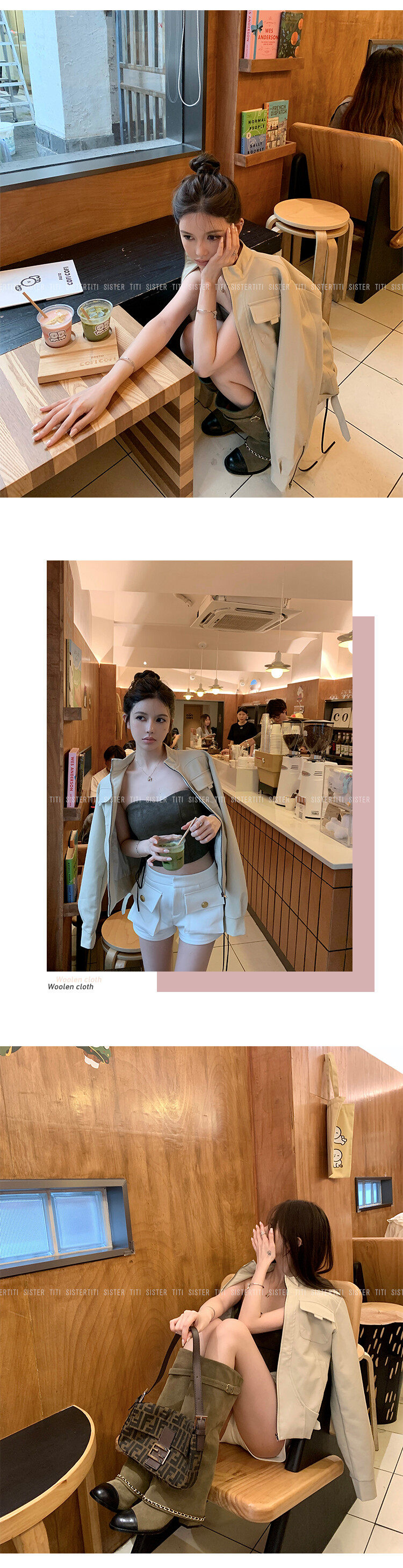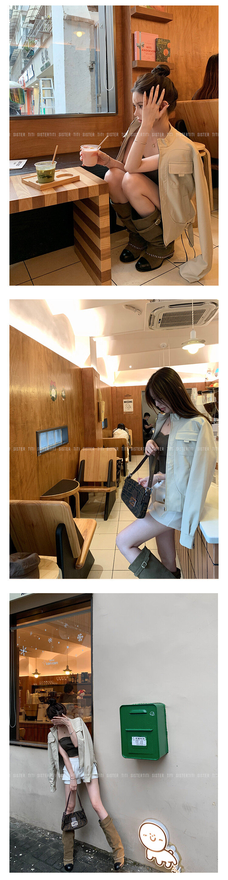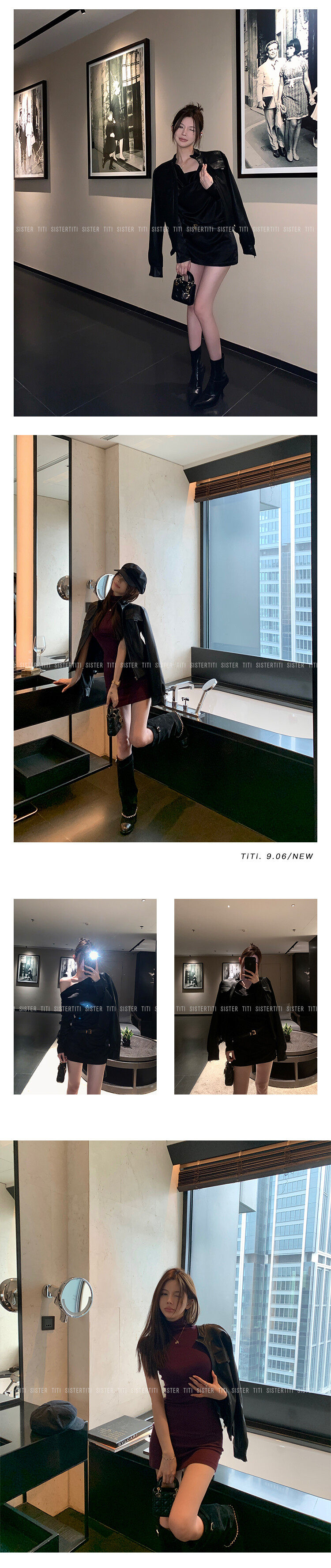 titi小姐姐【落日秋桐】两色立领口袋机车服夹克拉链长袖皮衣外套