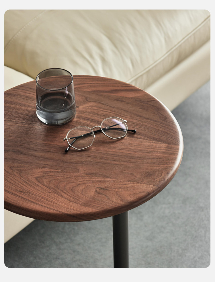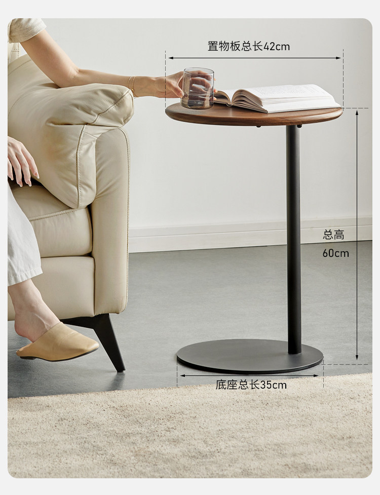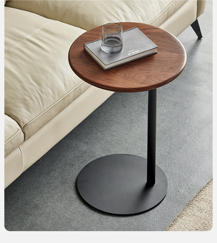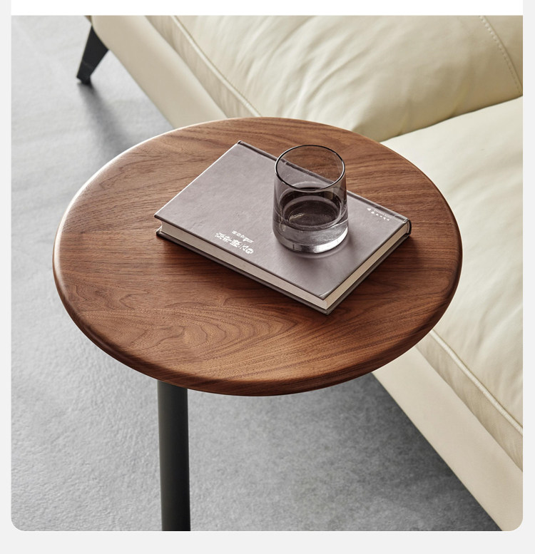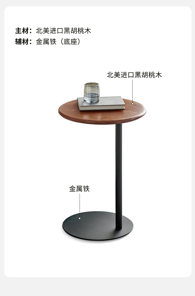 源氏木语实木边几黑胡桃木创意沙发小圆桌现代简约阳台C型小茶几