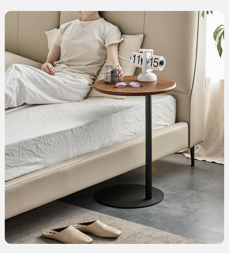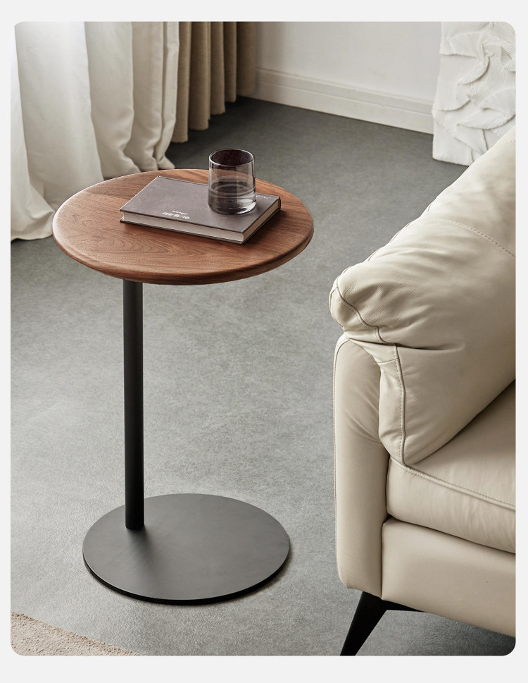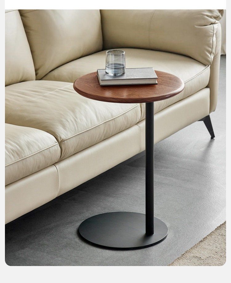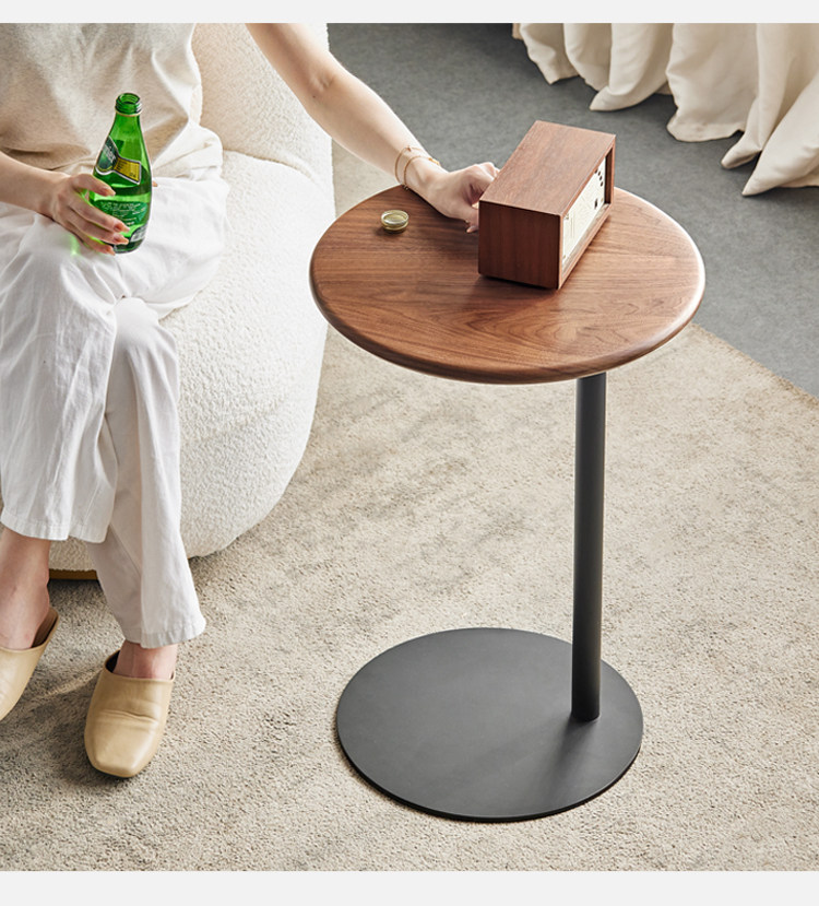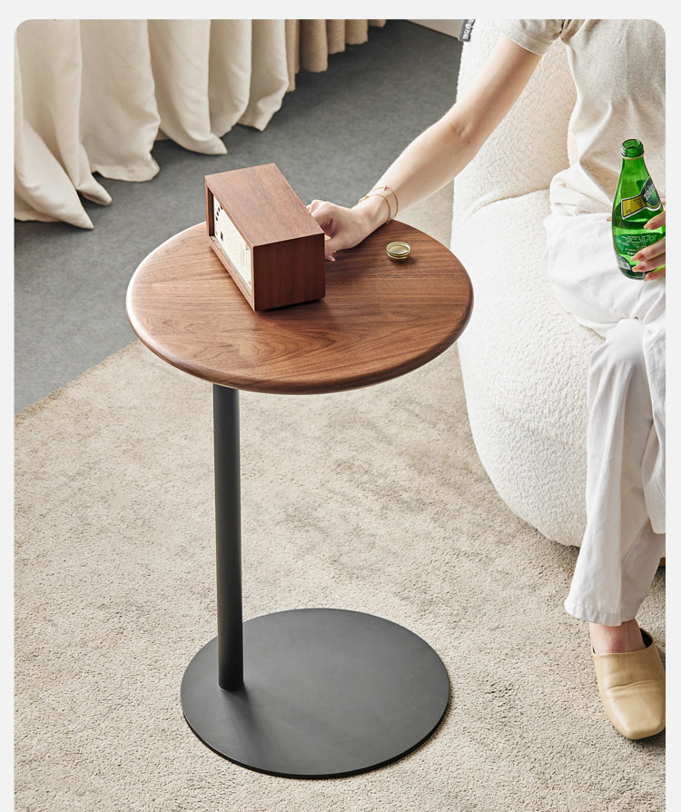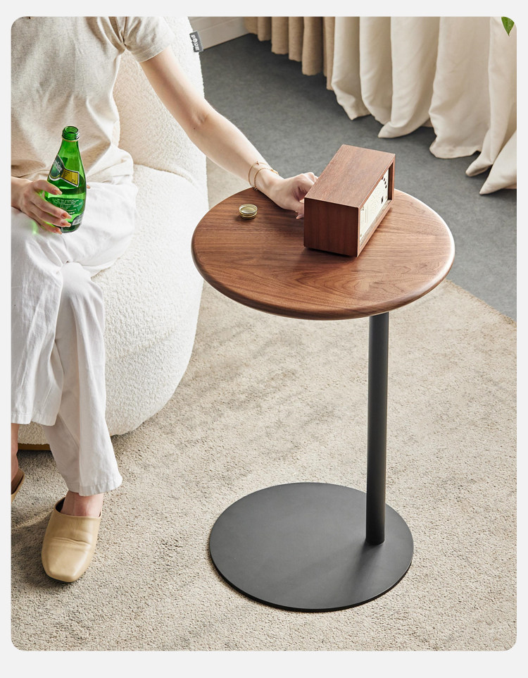 源氏木语实木边几黑胡桃木创意沙发小圆桌现代简约阳台C型小茶几