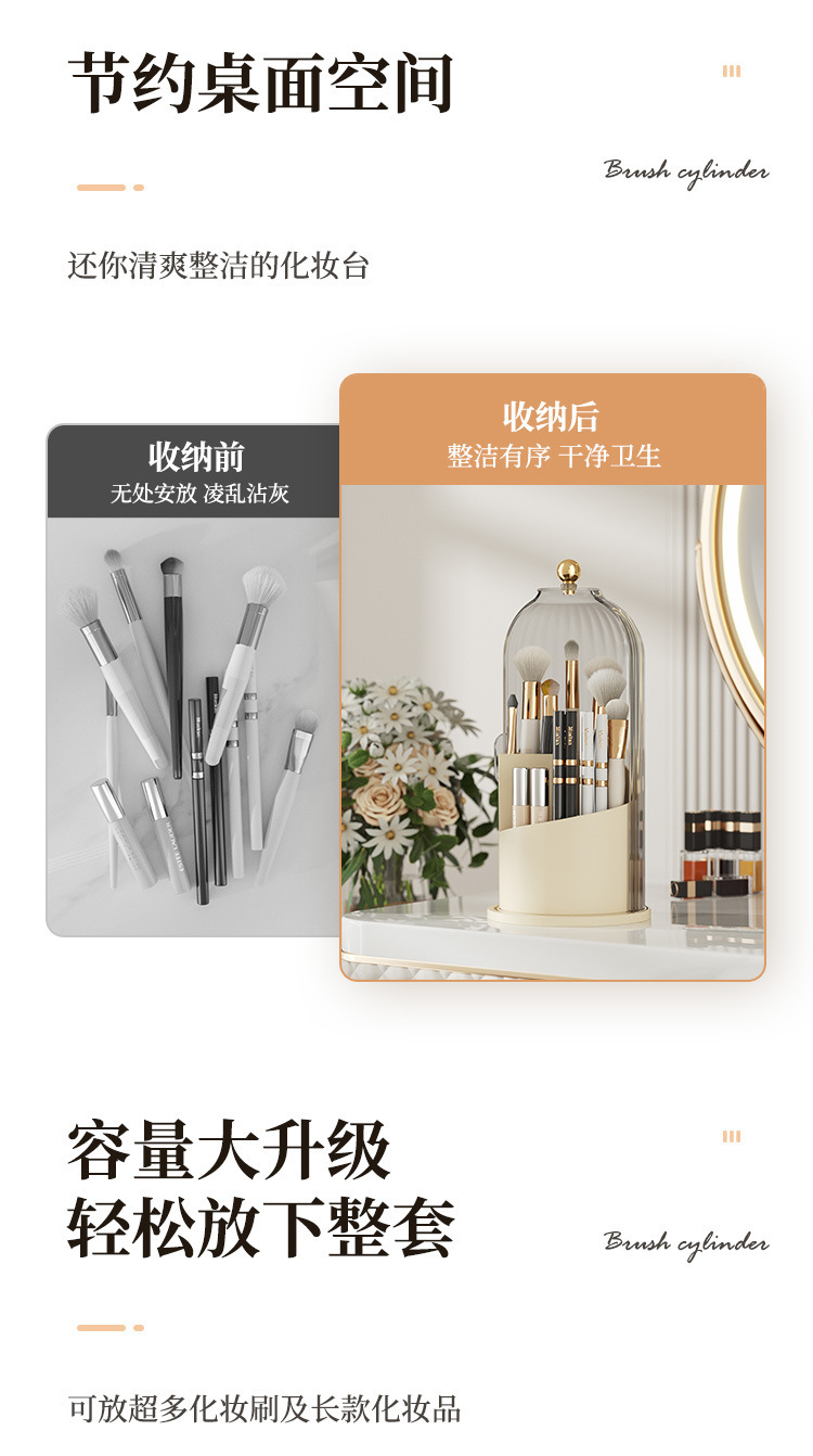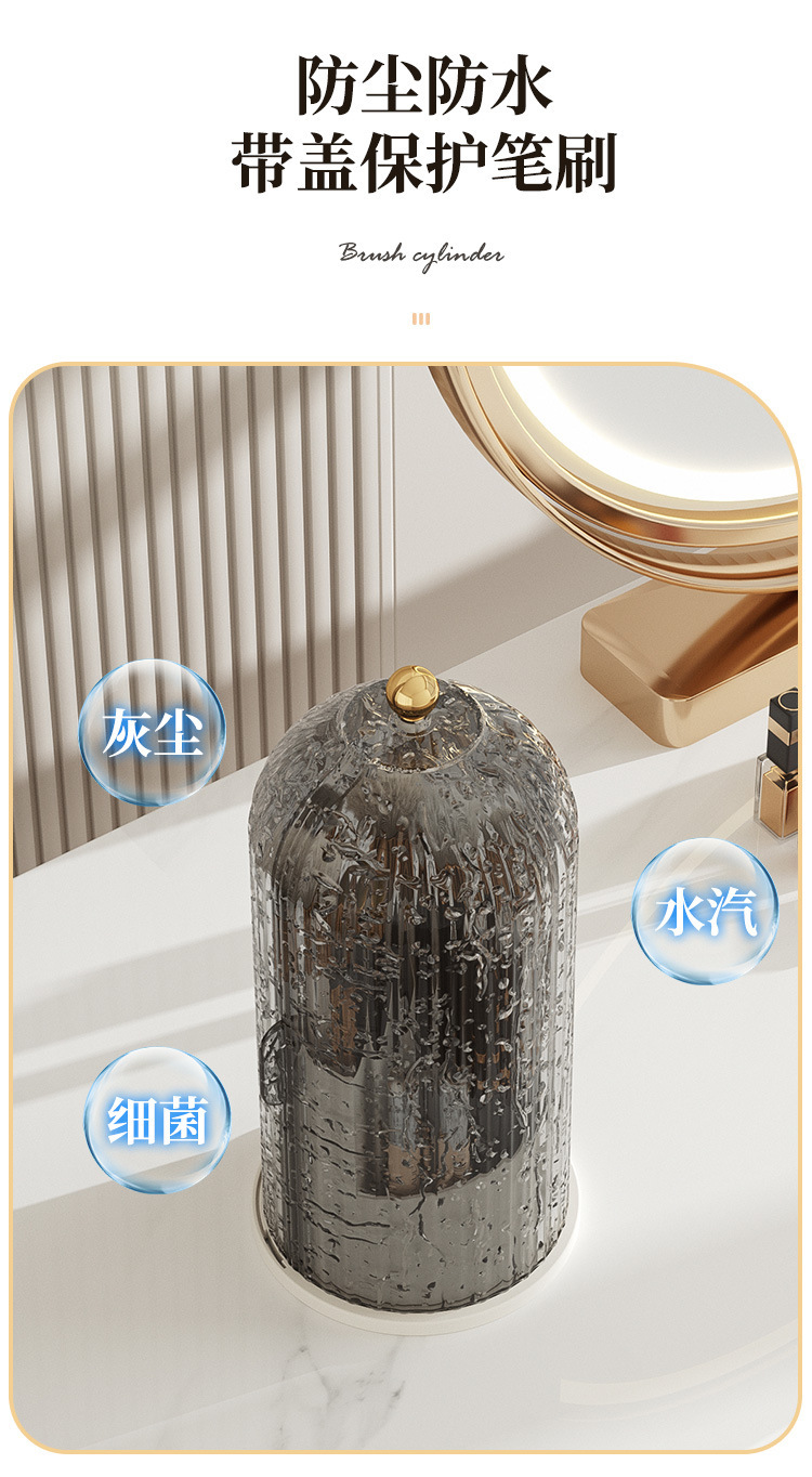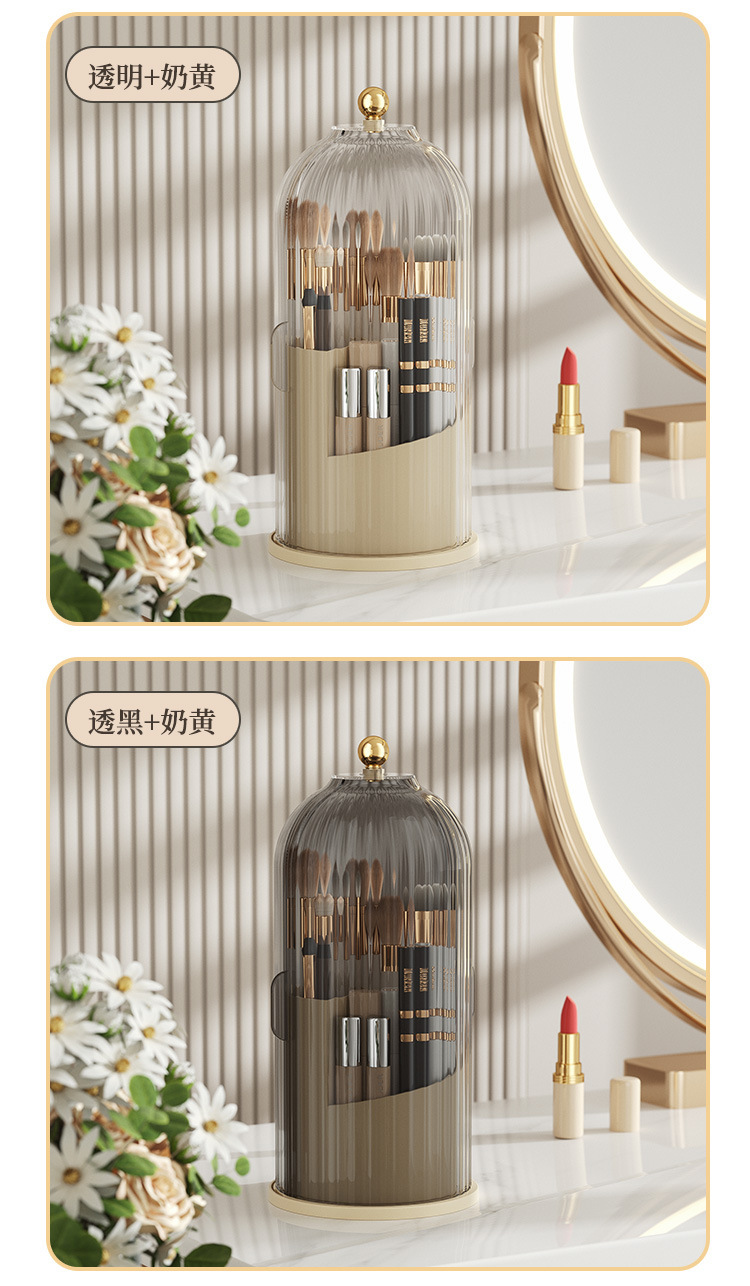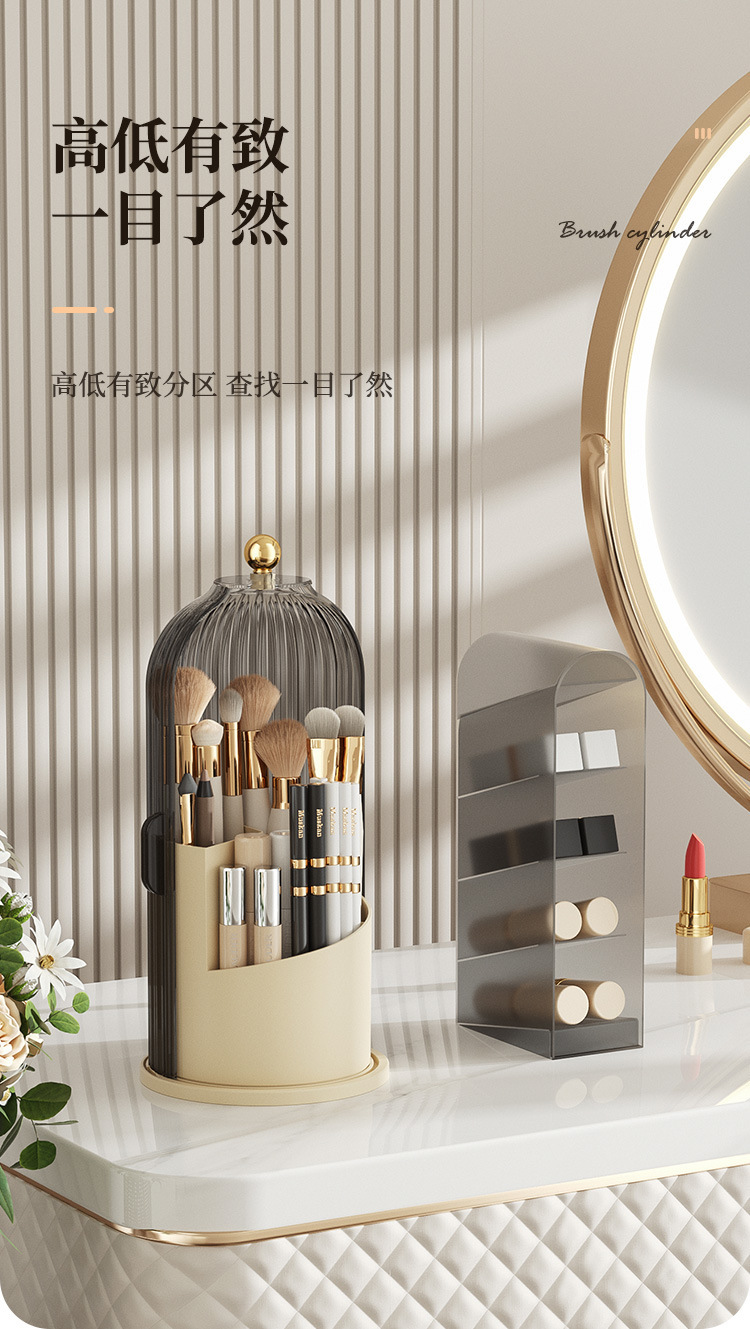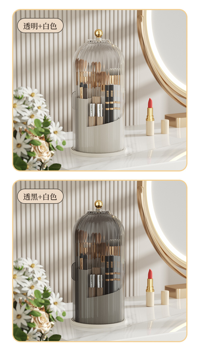 可旋转化妆品收纳盒透明推拉口红置物架防尘桌面彩妆刷梳妆台笔筒