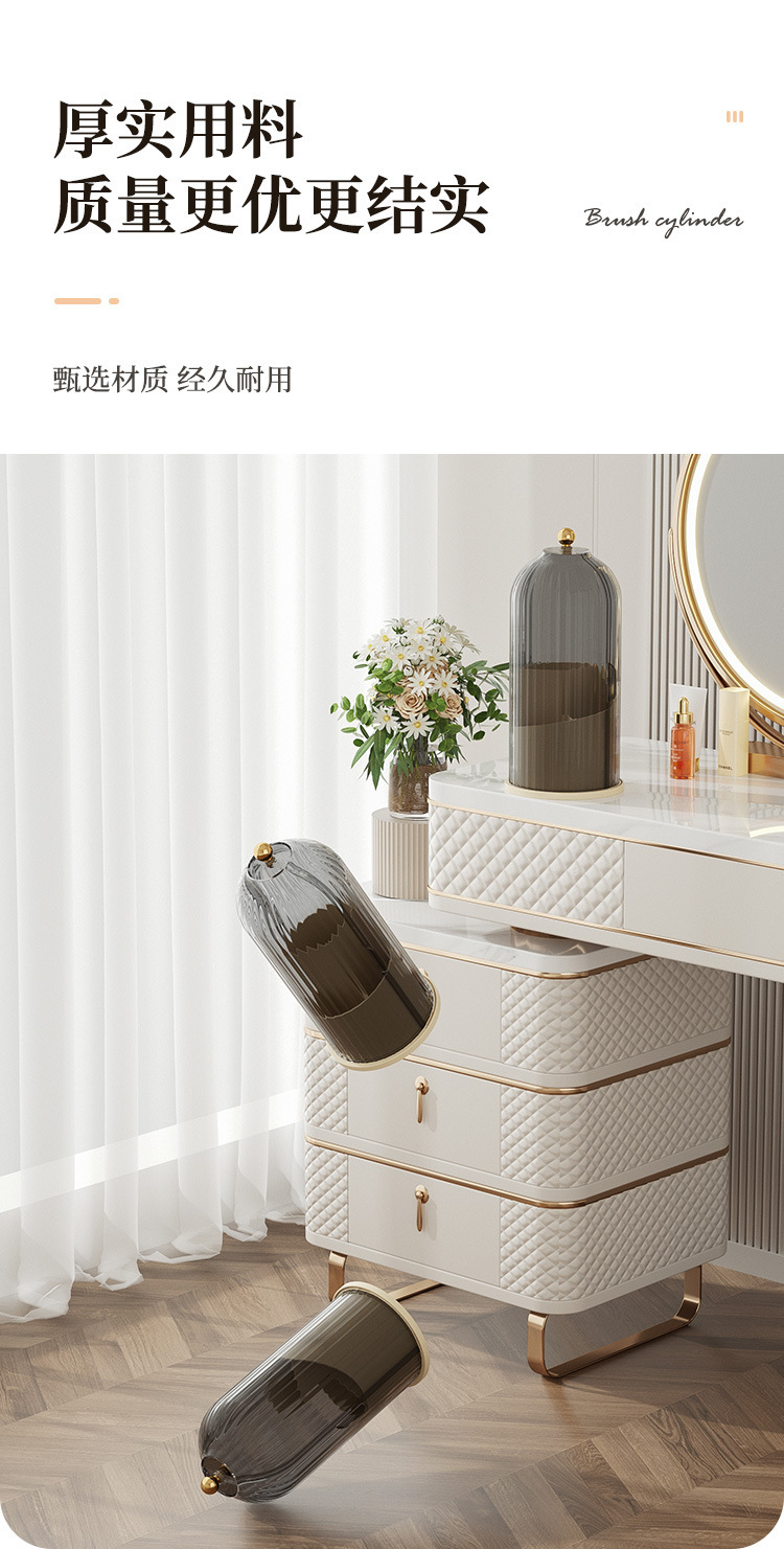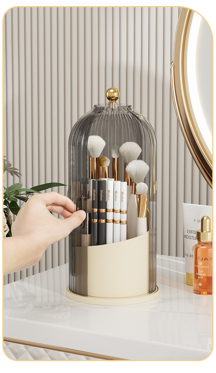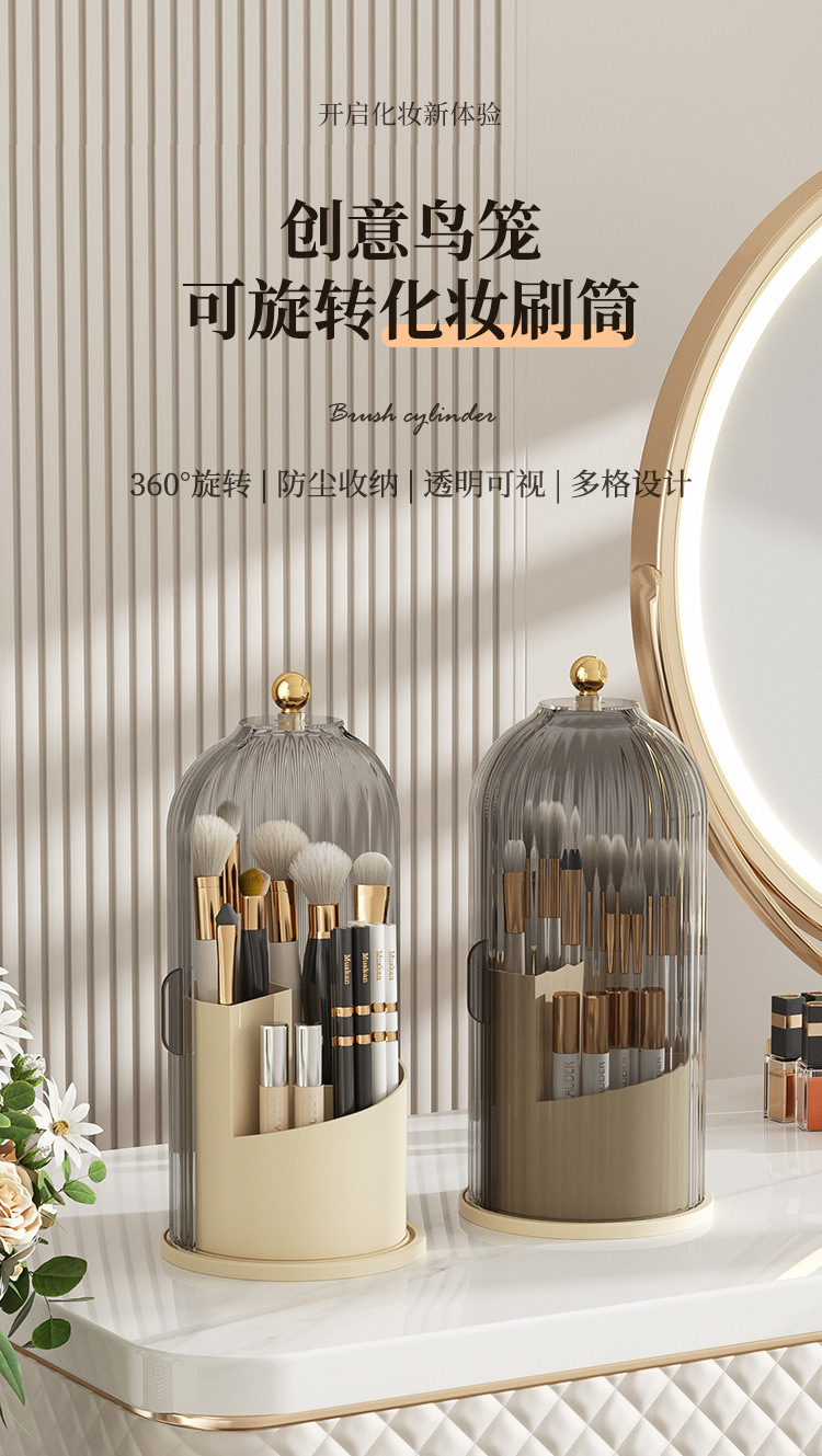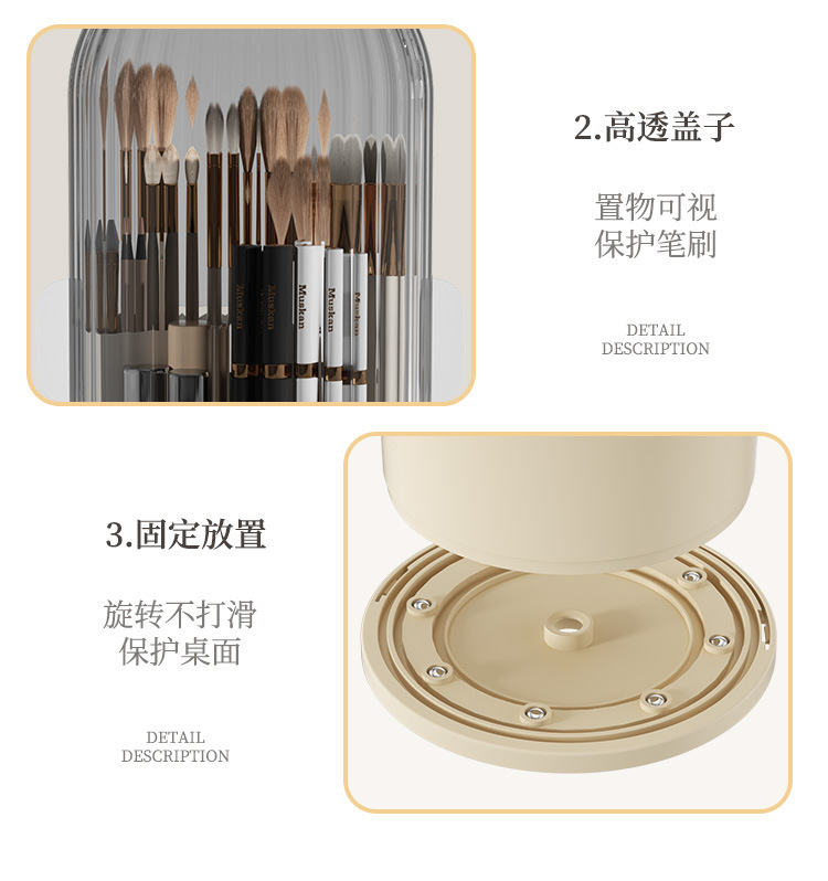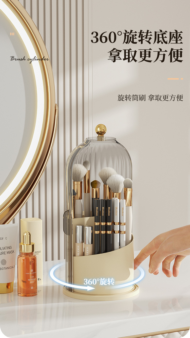 可旋转化妆品收纳盒透明推拉口红置物架防尘桌面彩妆刷梳妆台笔筒