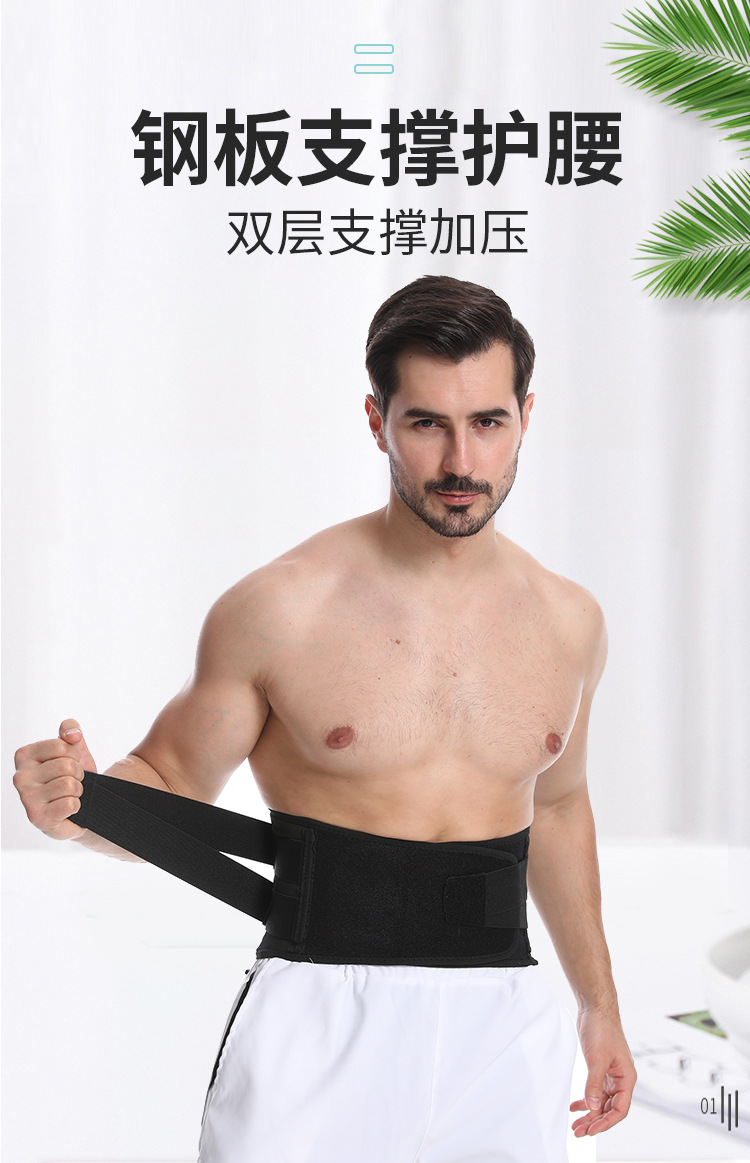 运动男女弹力网状钢板护腰带深蹲腰部固定弹簧支撑加压健身护腰