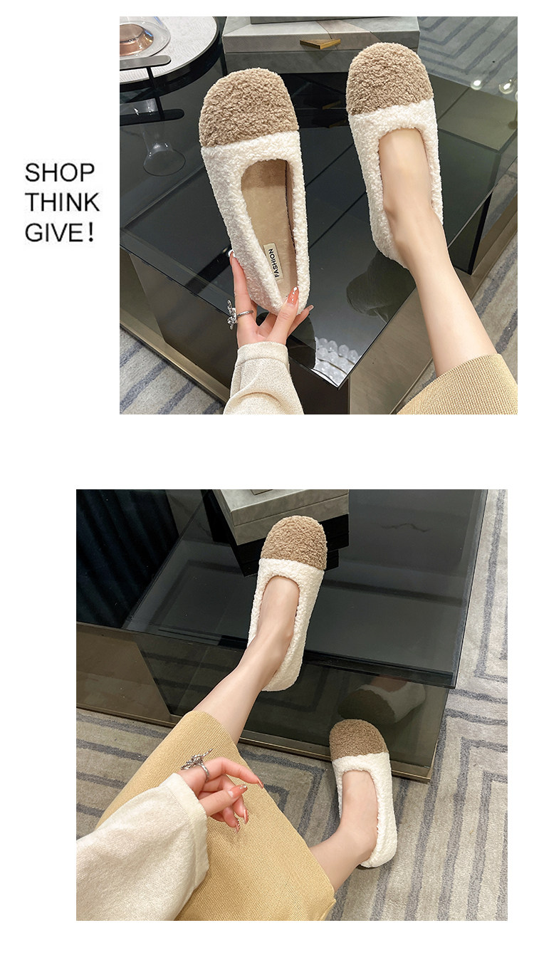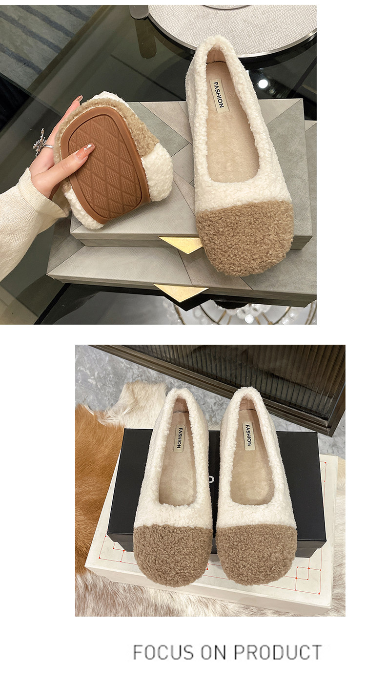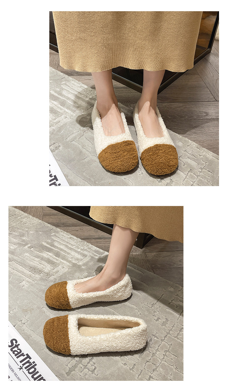 毛毛鞋女秋冬外穿2023年新款拼色仙女豆豆鞋羊羔毛平底加绒棉瓢鞋