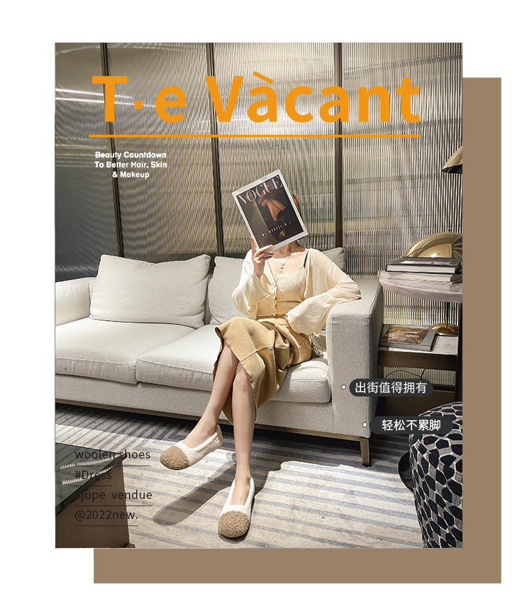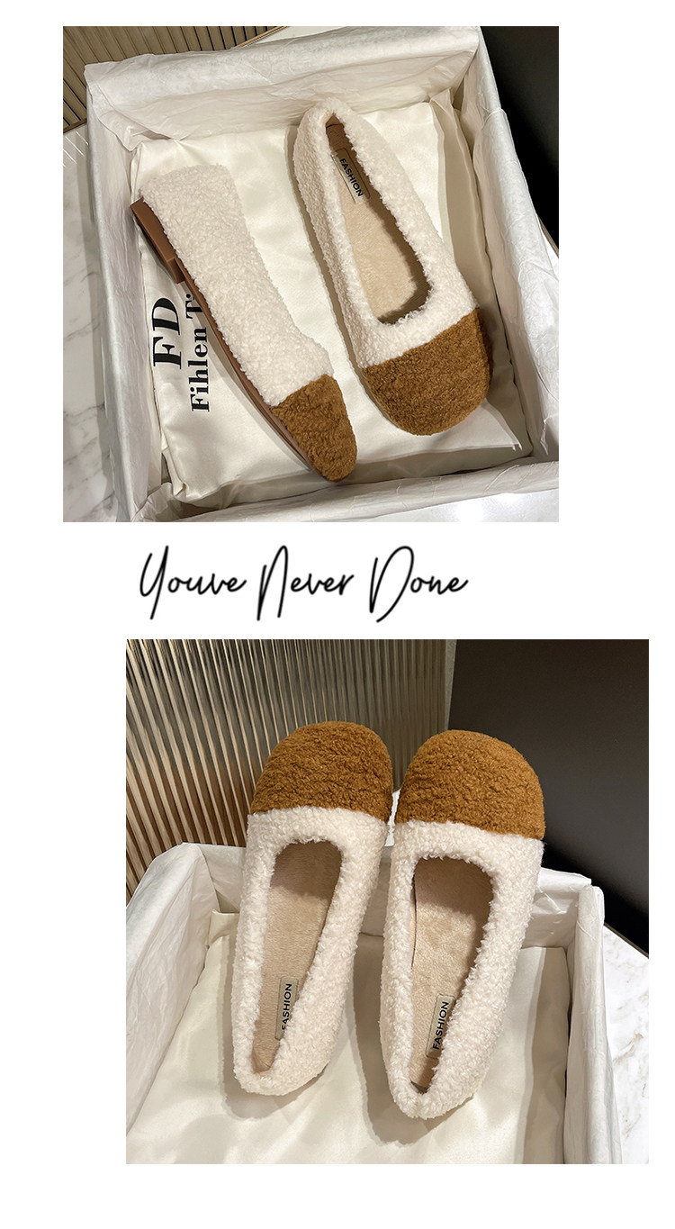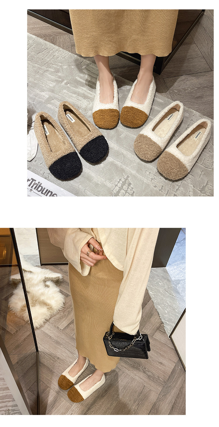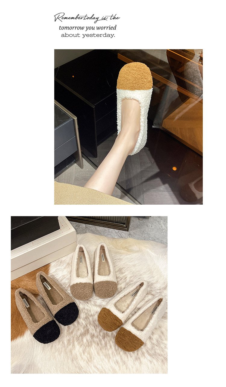 毛毛鞋女秋冬外穿2023年新款拼色仙女豆豆鞋羊羔毛平底加绒棉瓢鞋