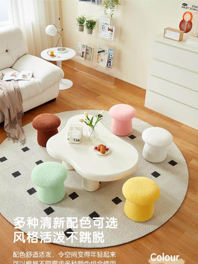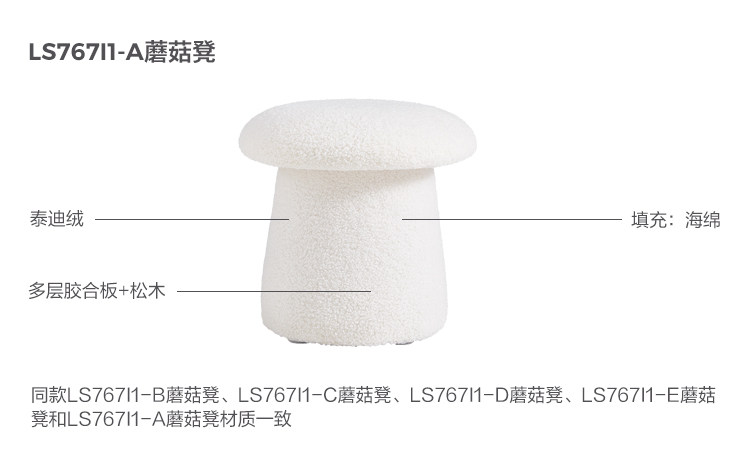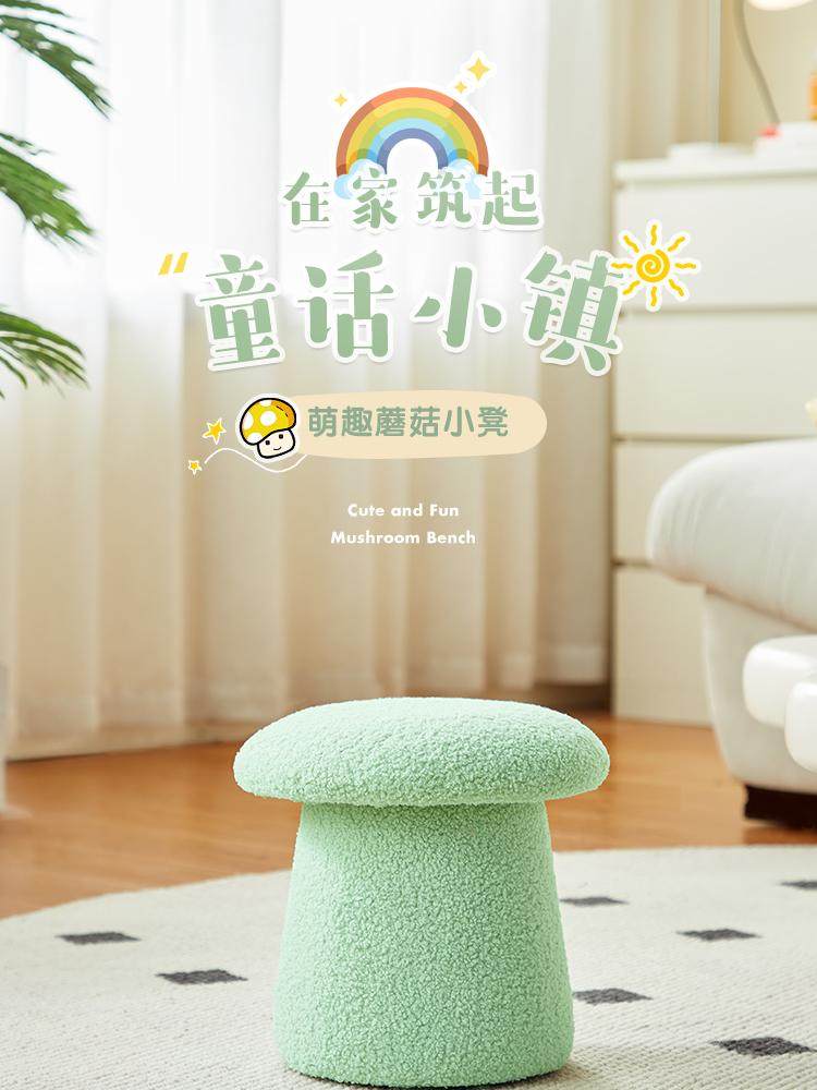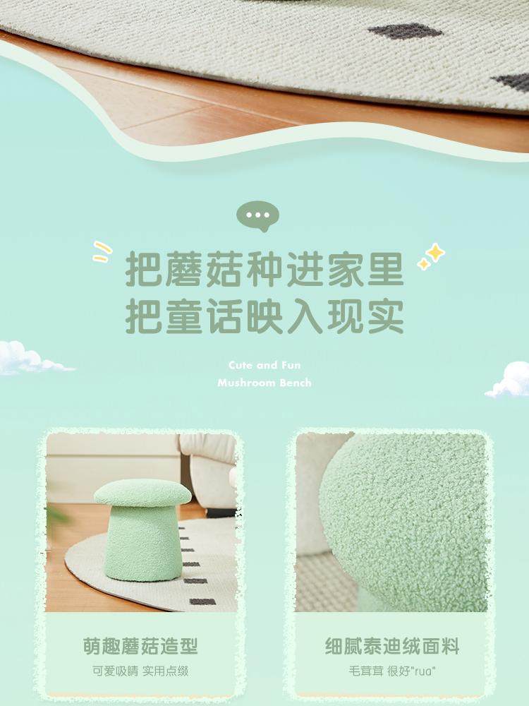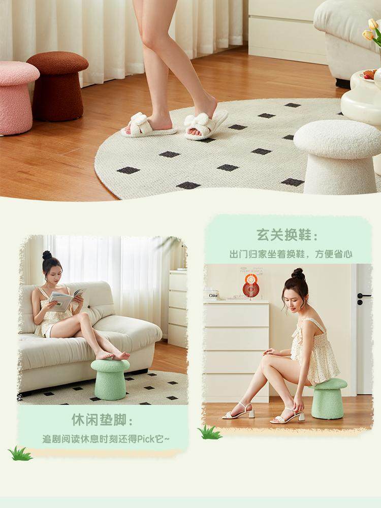 林氏家居可爱蘑菇凳主卧室客厅泰迪绒小凳子换鞋凳林氏木业LS767