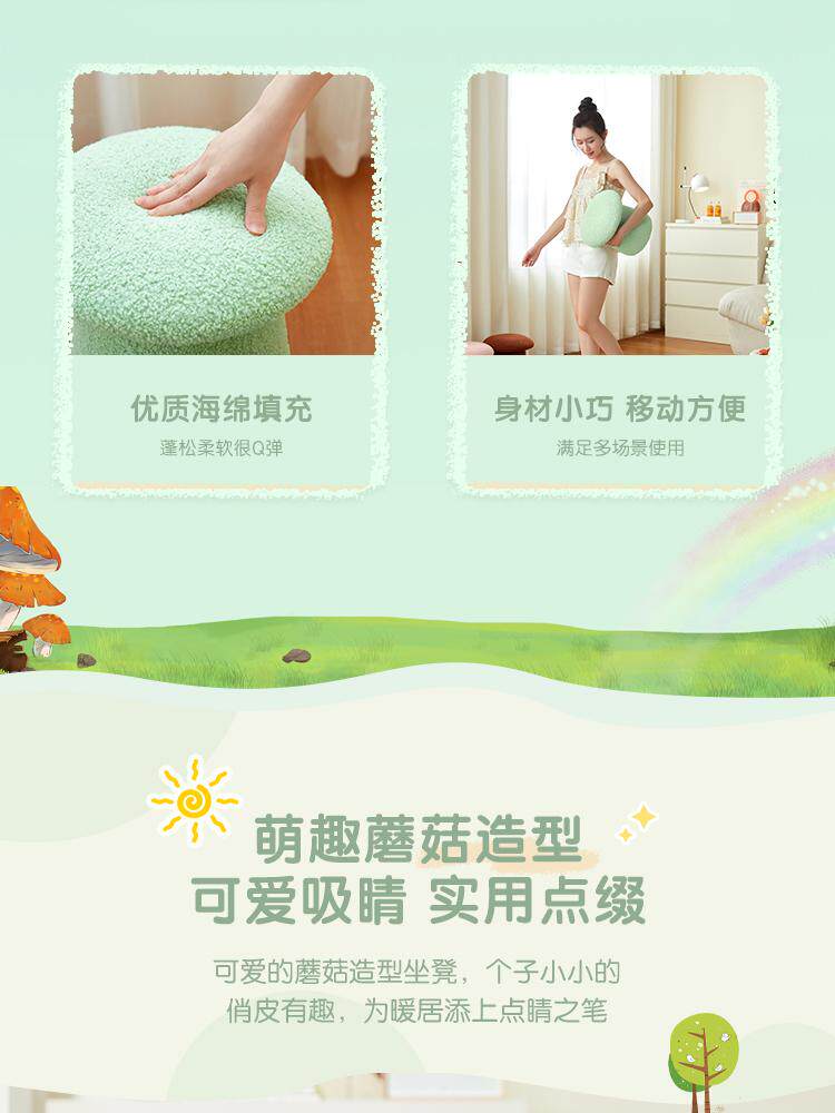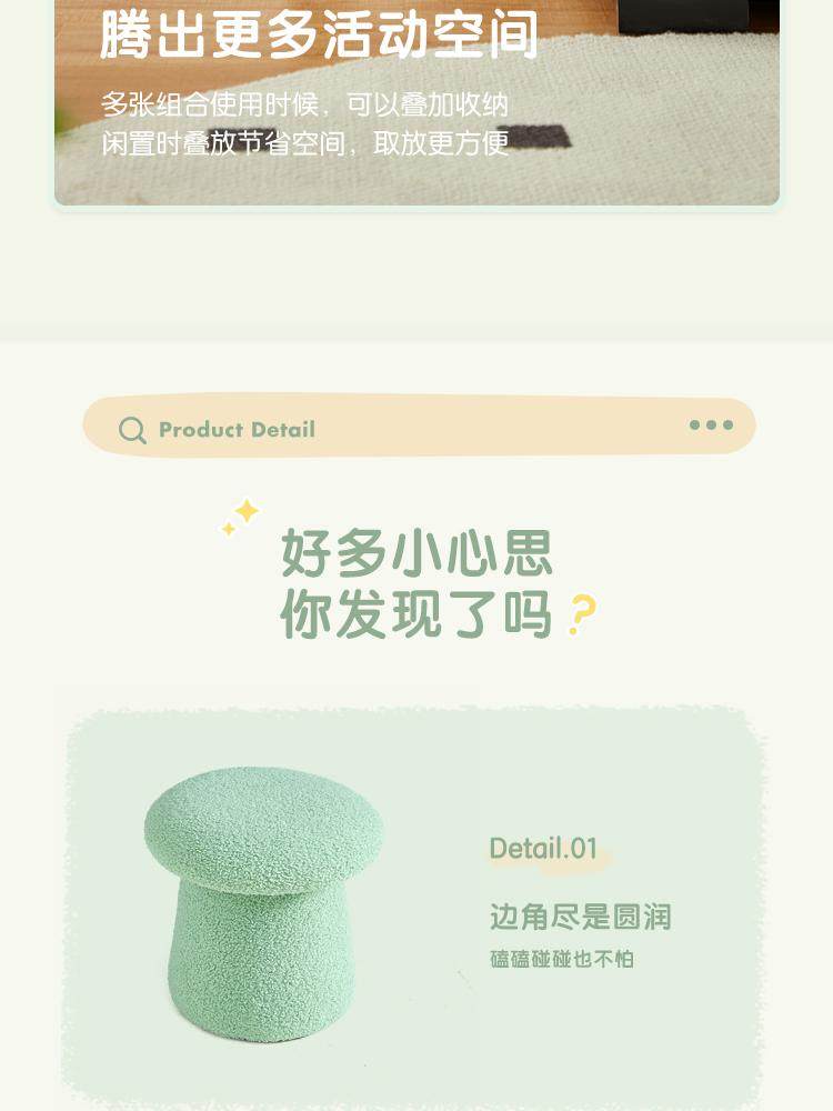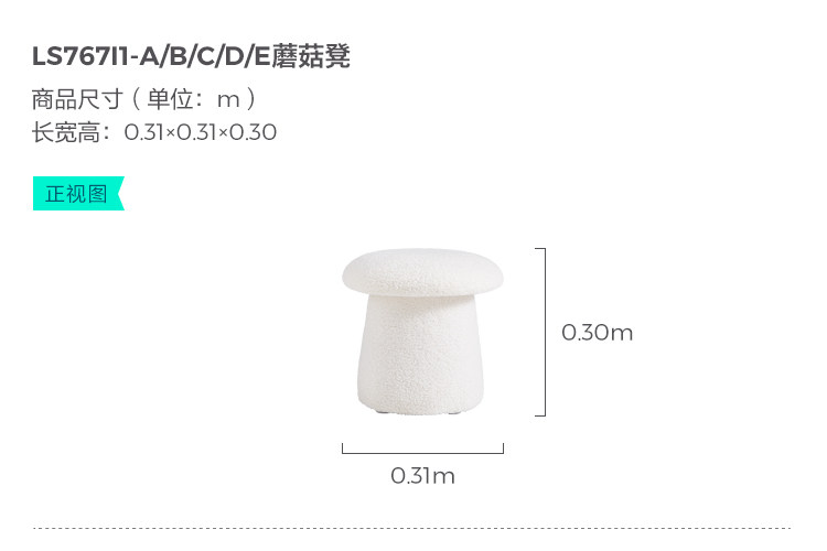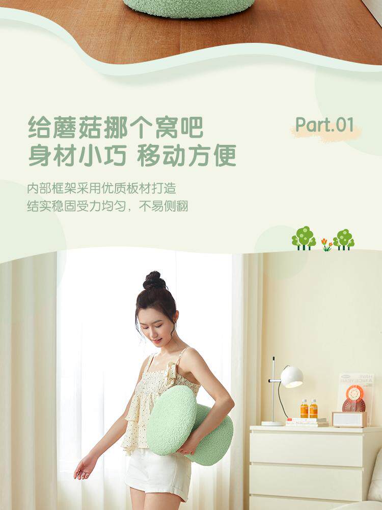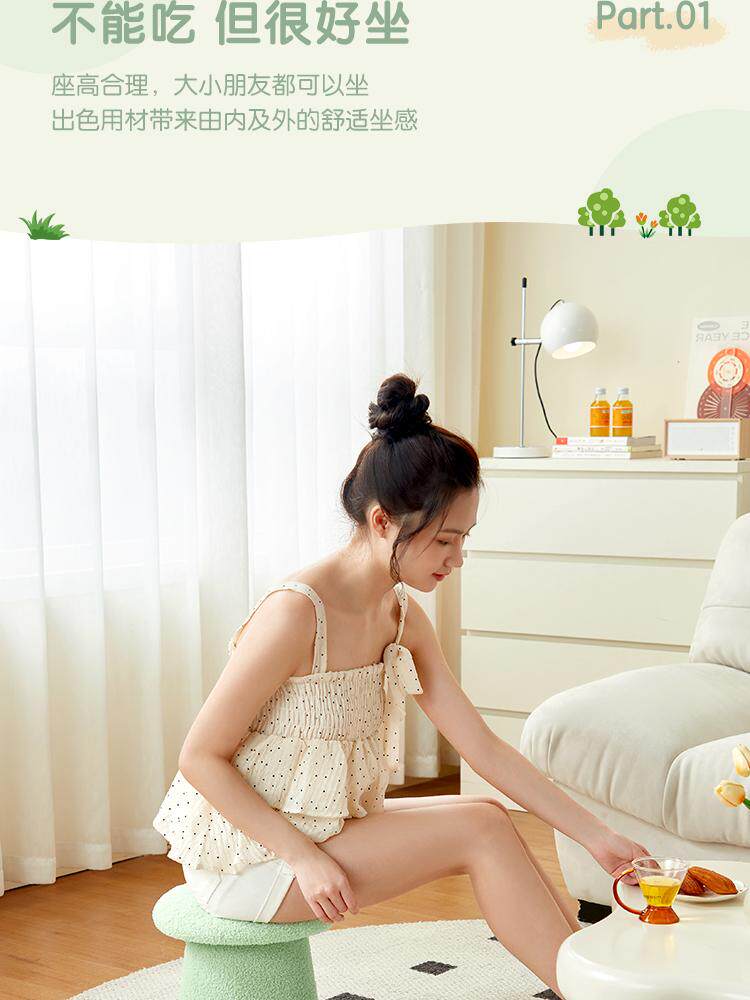 林氏家居可爱蘑菇凳主卧室客厅泰迪绒小凳子换鞋凳林氏木业LS767
