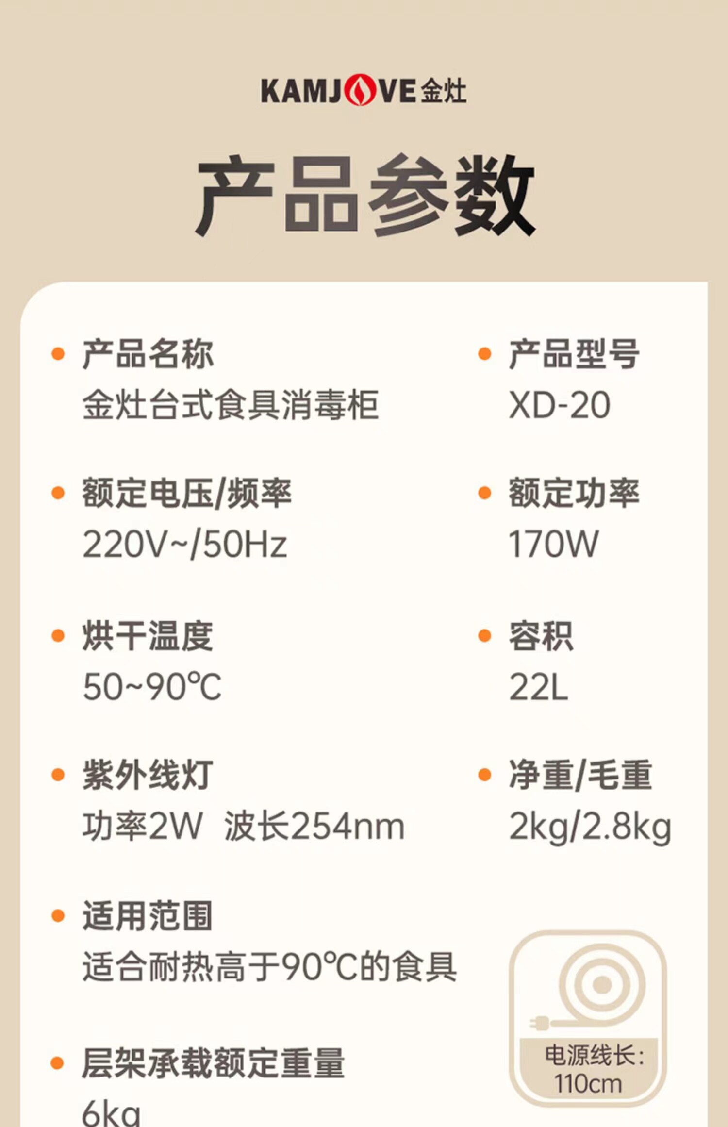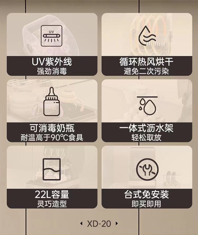 金灶XD-20迷你消毒柜茶具杯子餐具智能小型消毒烘干收纳一体家用
