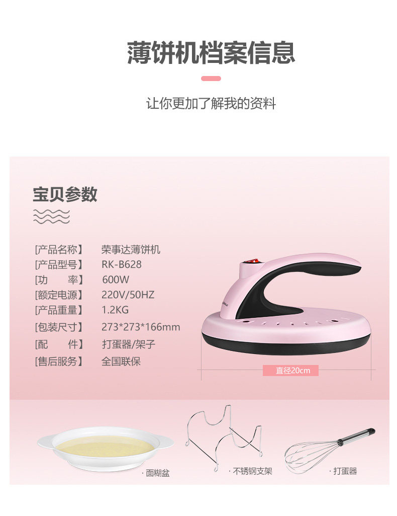 荣事达薄饼机春饼机春卷皮家用博饼机电饼铛迷你小型煎饼烙饼锅