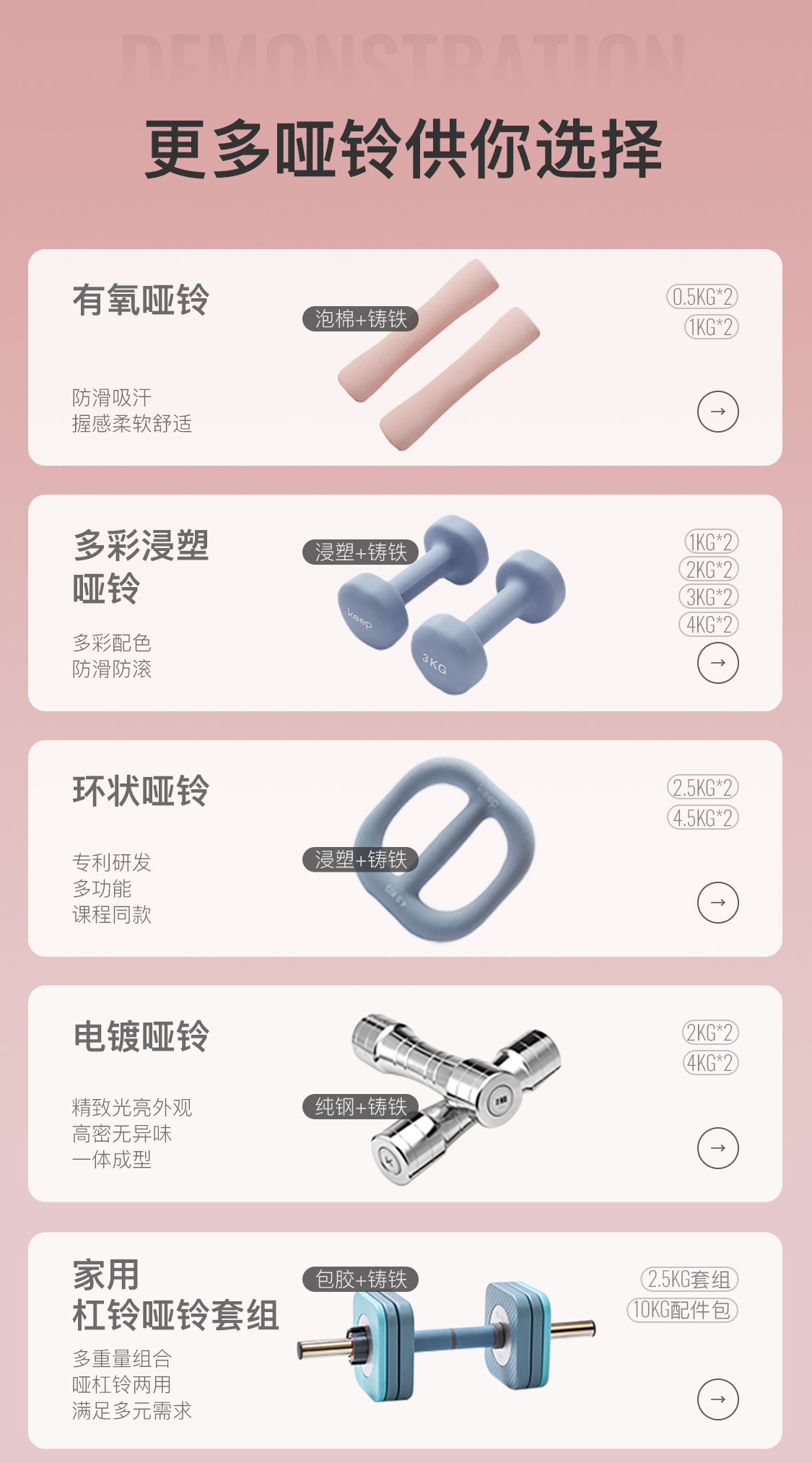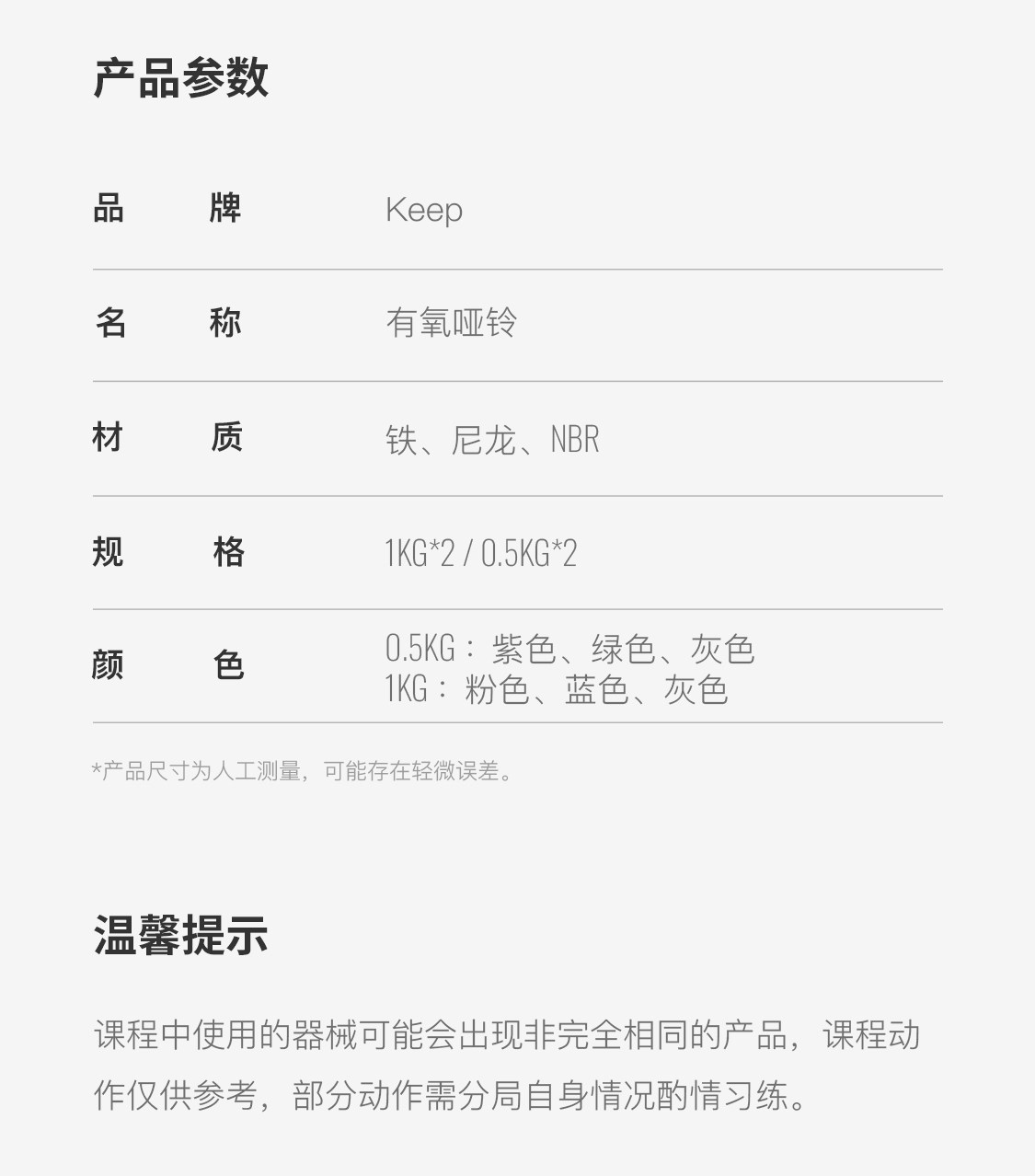keep哑铃女士健身家用有氧跳操男士健身器材初学者瑜伽练臂肌一对