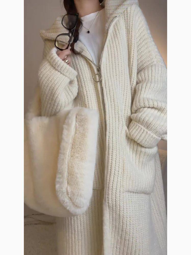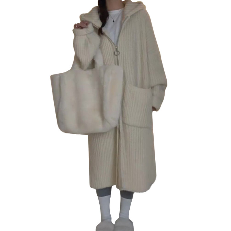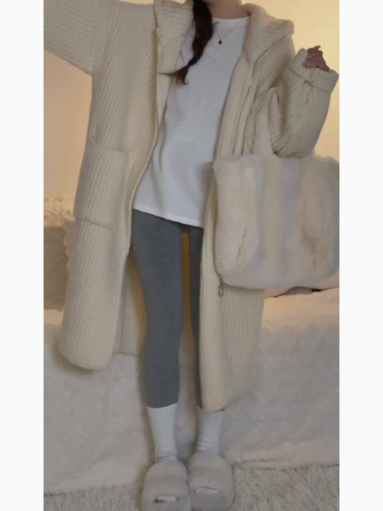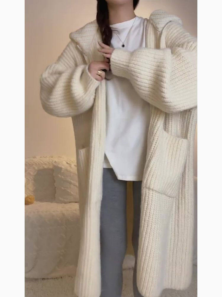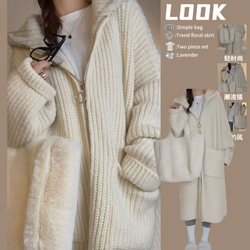 春秋慵懒温柔风穿搭小众冬季韩版长款针织毛衣连帽外套气质开衫女