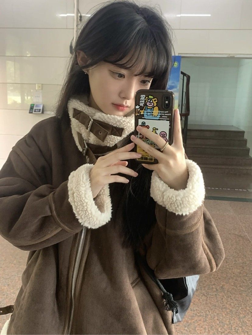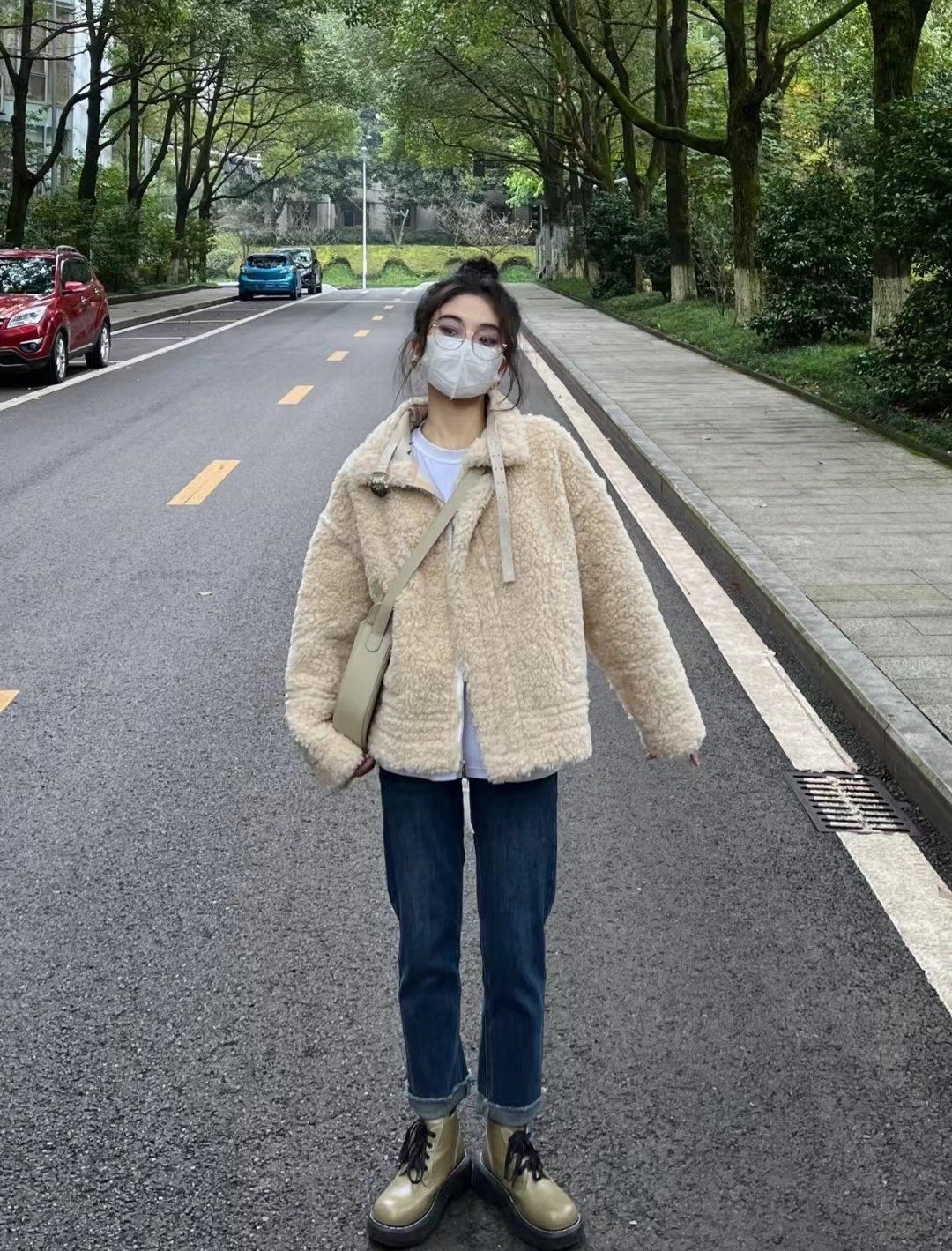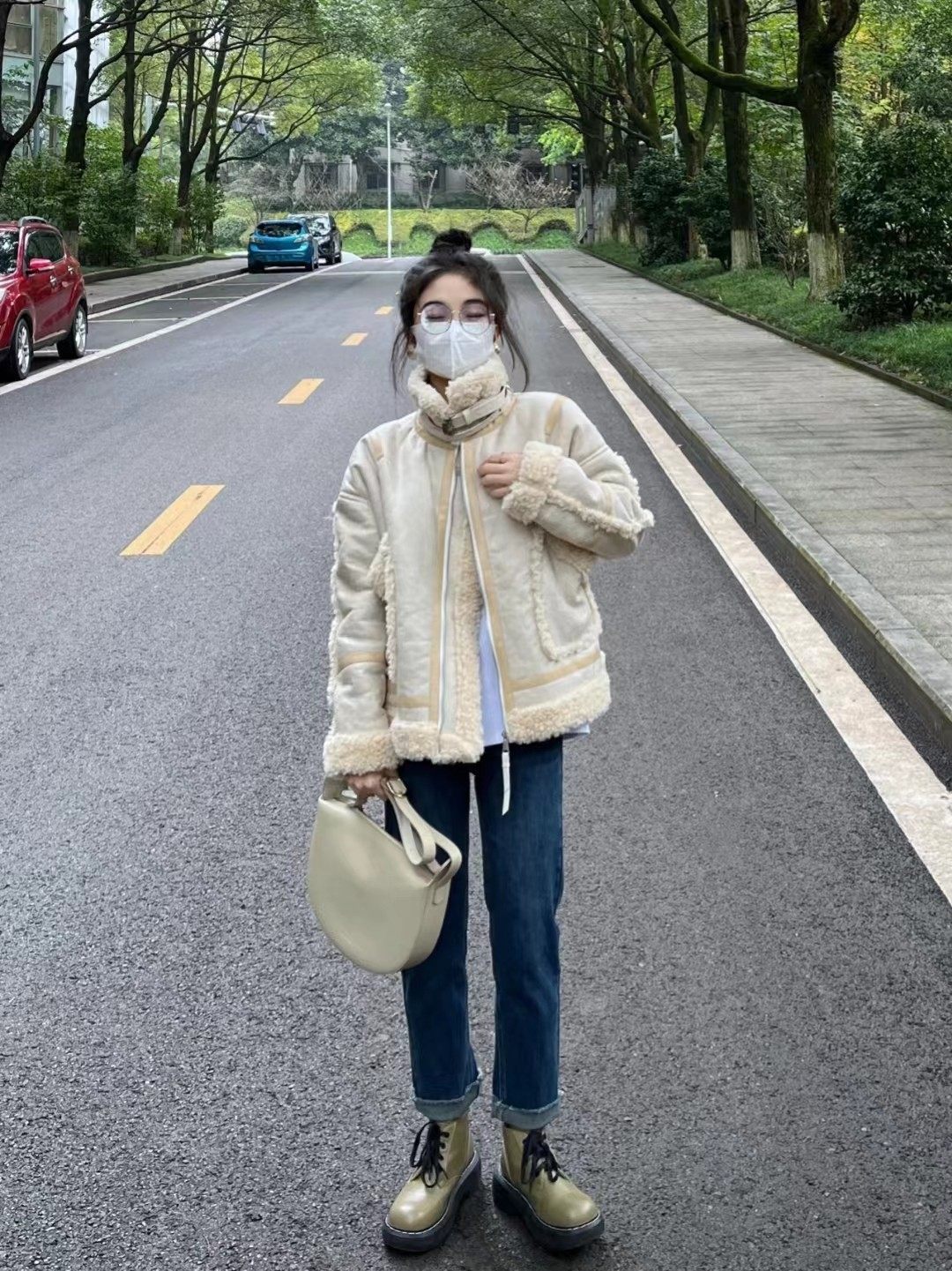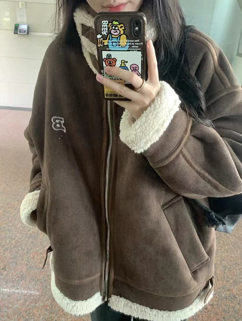 日系宽松羊羔毛外套女冬季ins炸街加厚韩版情侣机车皮毛一体棉服