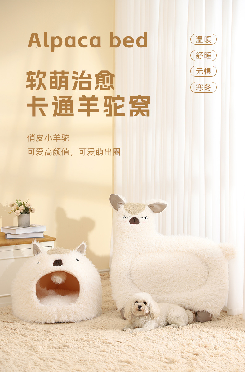 秋冬爆款窝垫羊驼猫咪窝半封闭式宠物沙发保暖用品猫吊床狗房屋子