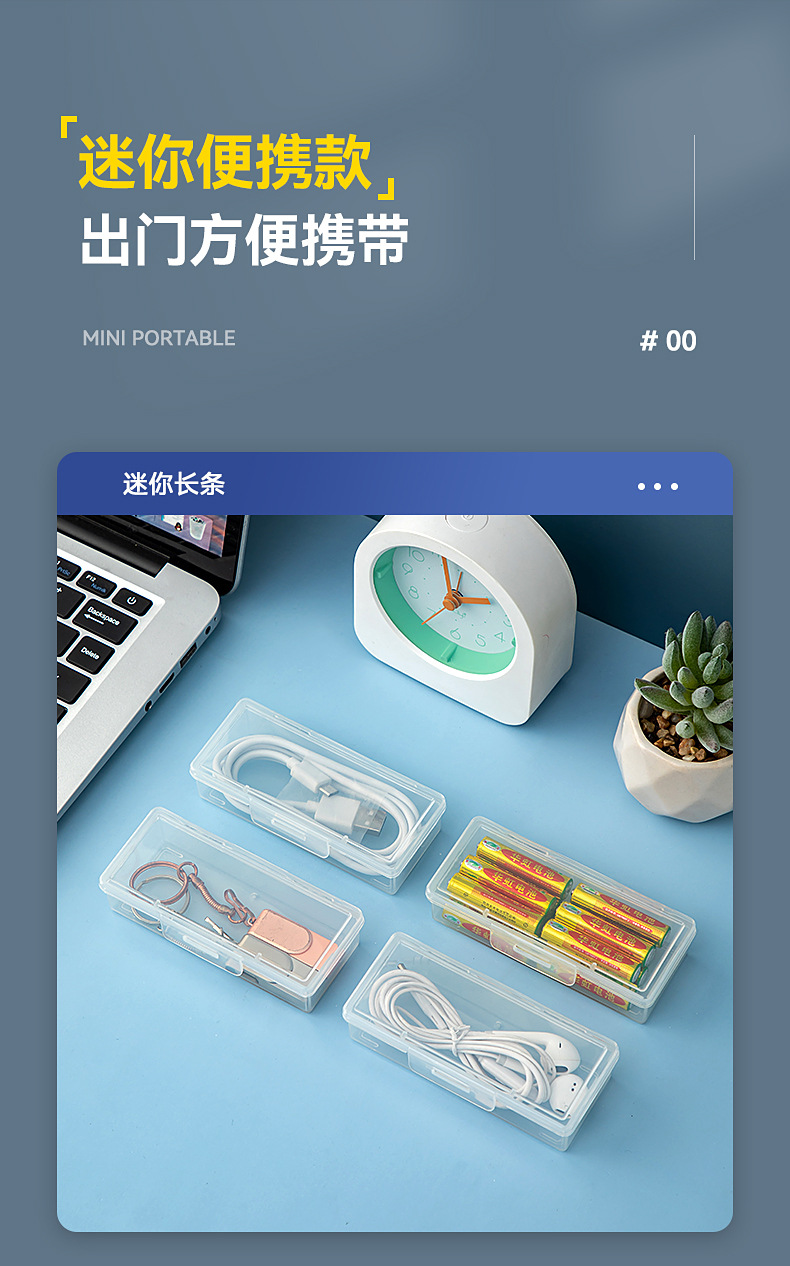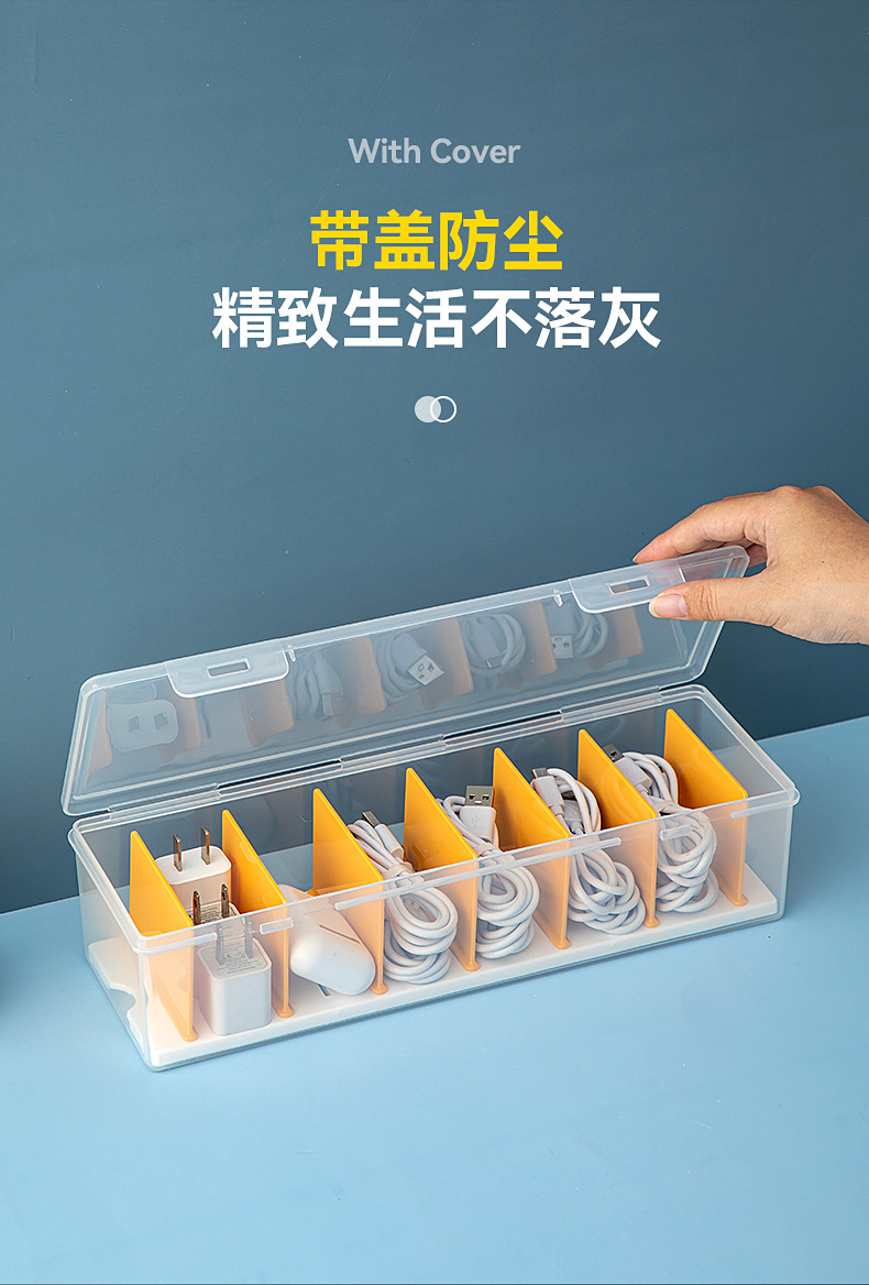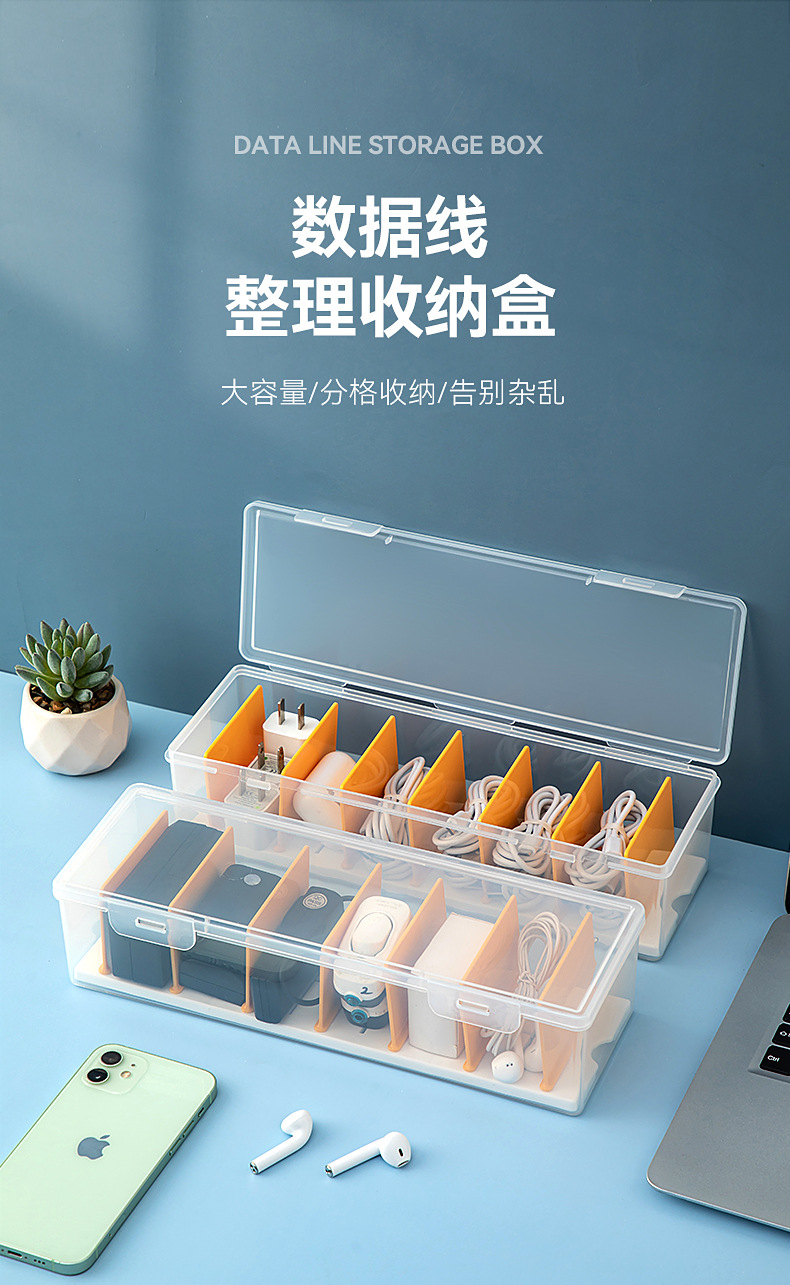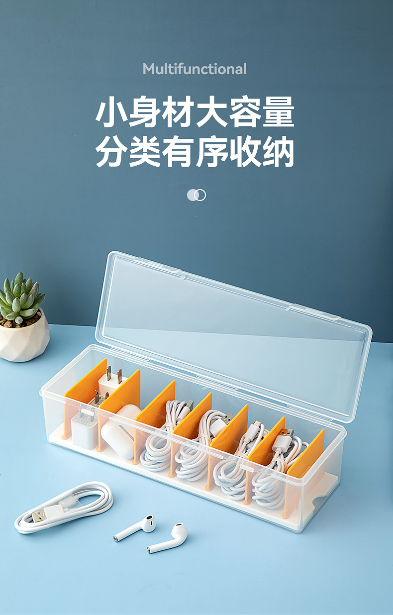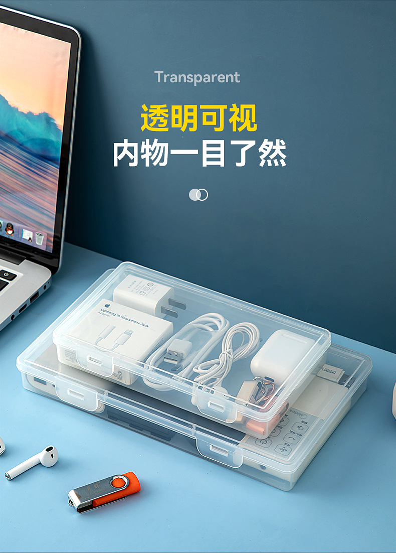 桌面分格数据线收纳盒带盖透明抽屉迷你收纳盒翻盖塑料耳机收纳盒