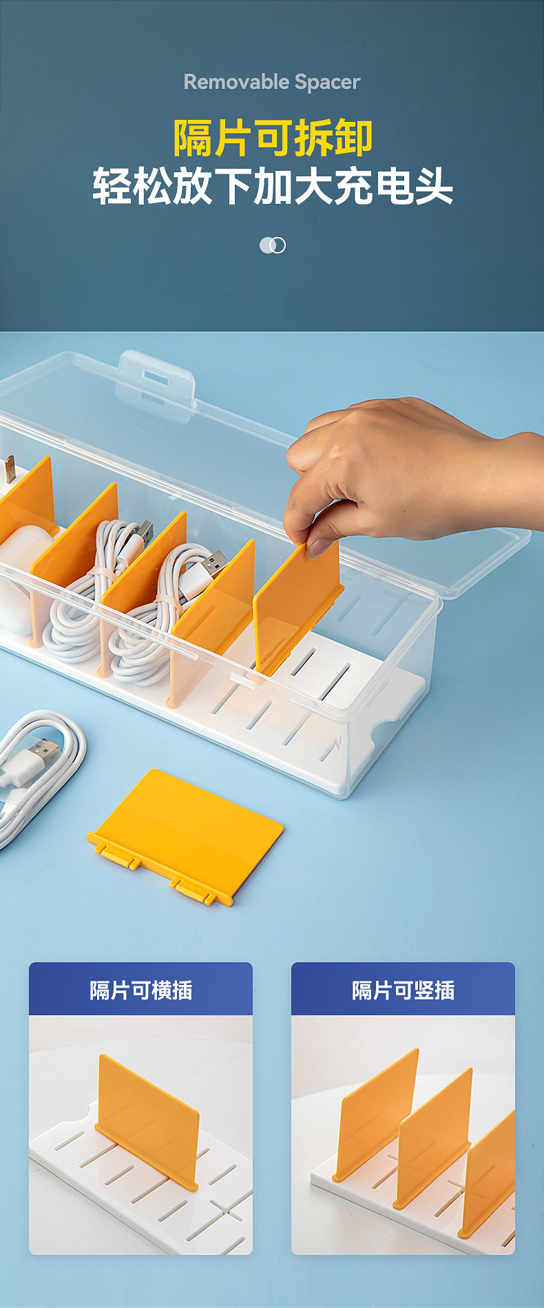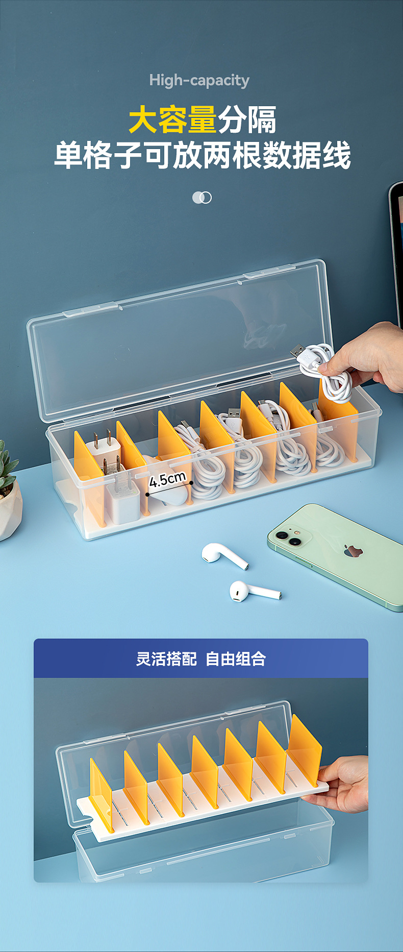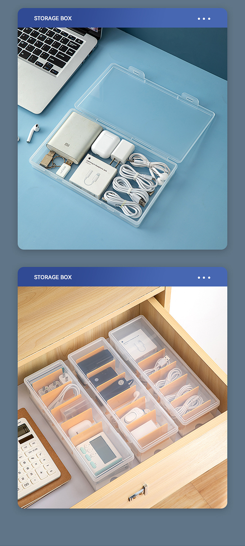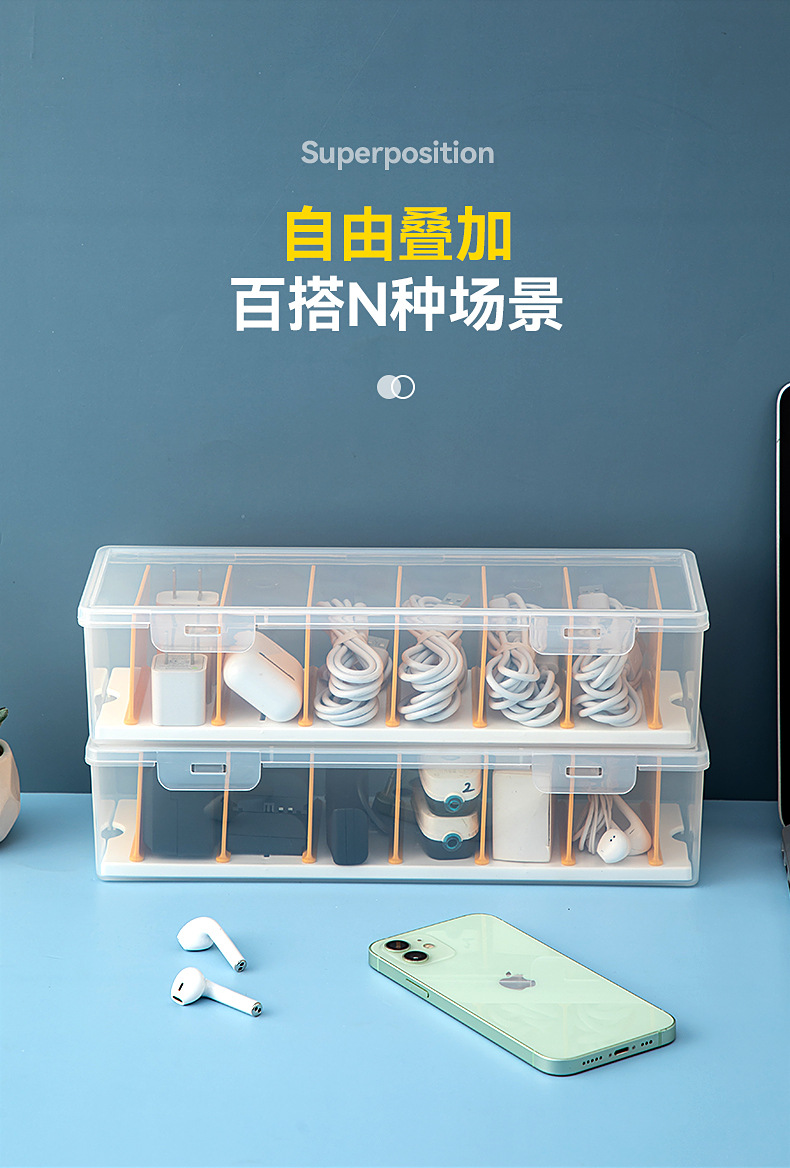 桌面分格数据线收纳盒带盖透明抽屉迷你收纳盒翻盖塑料耳机收纳盒