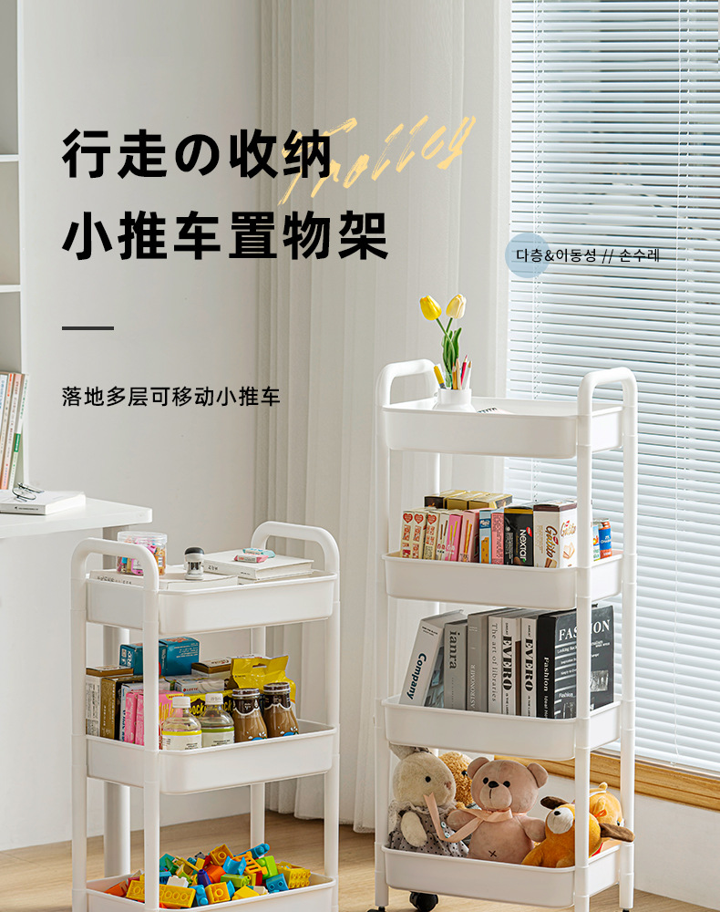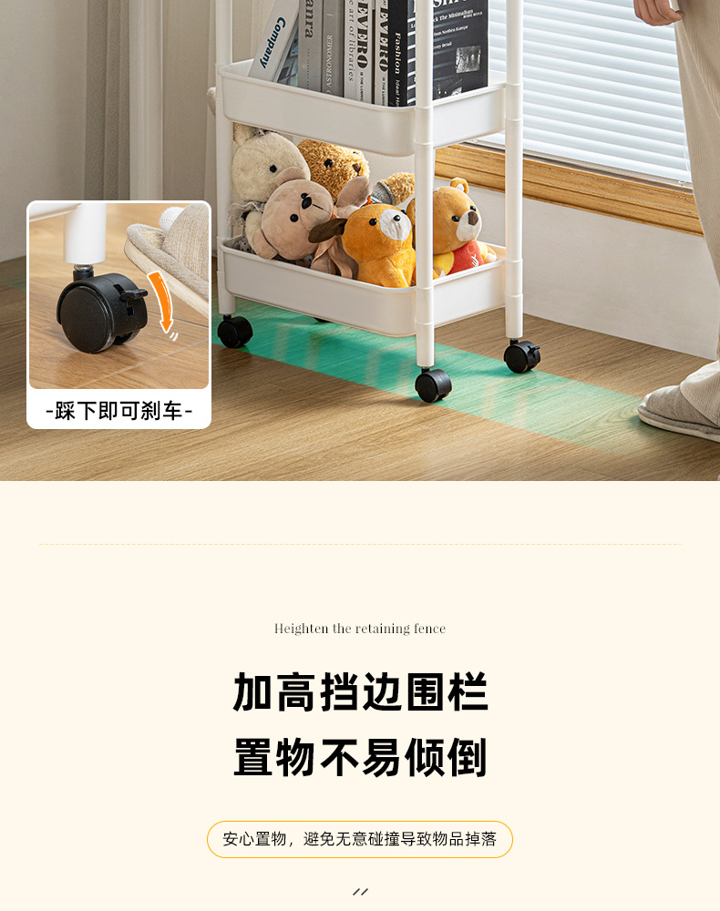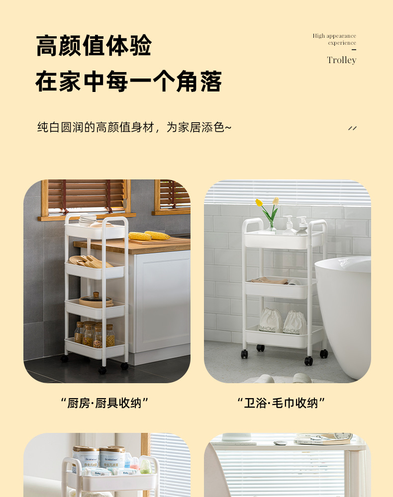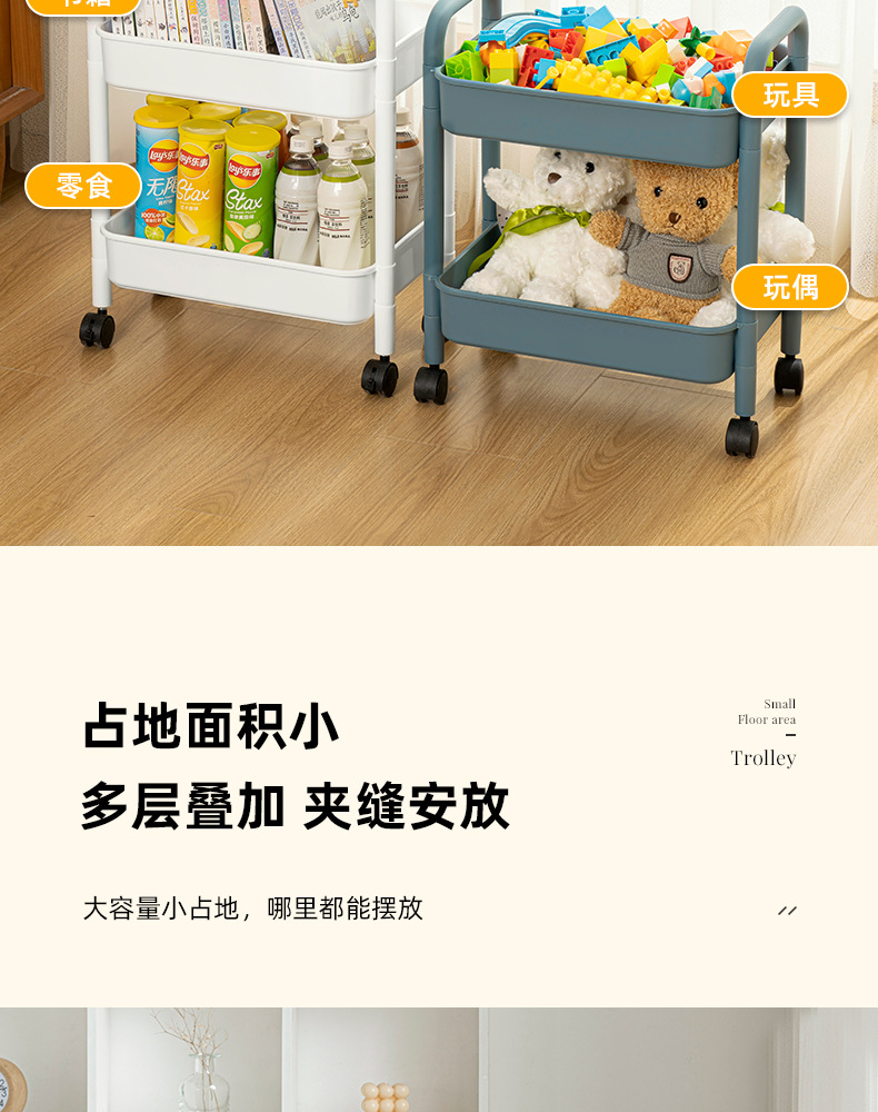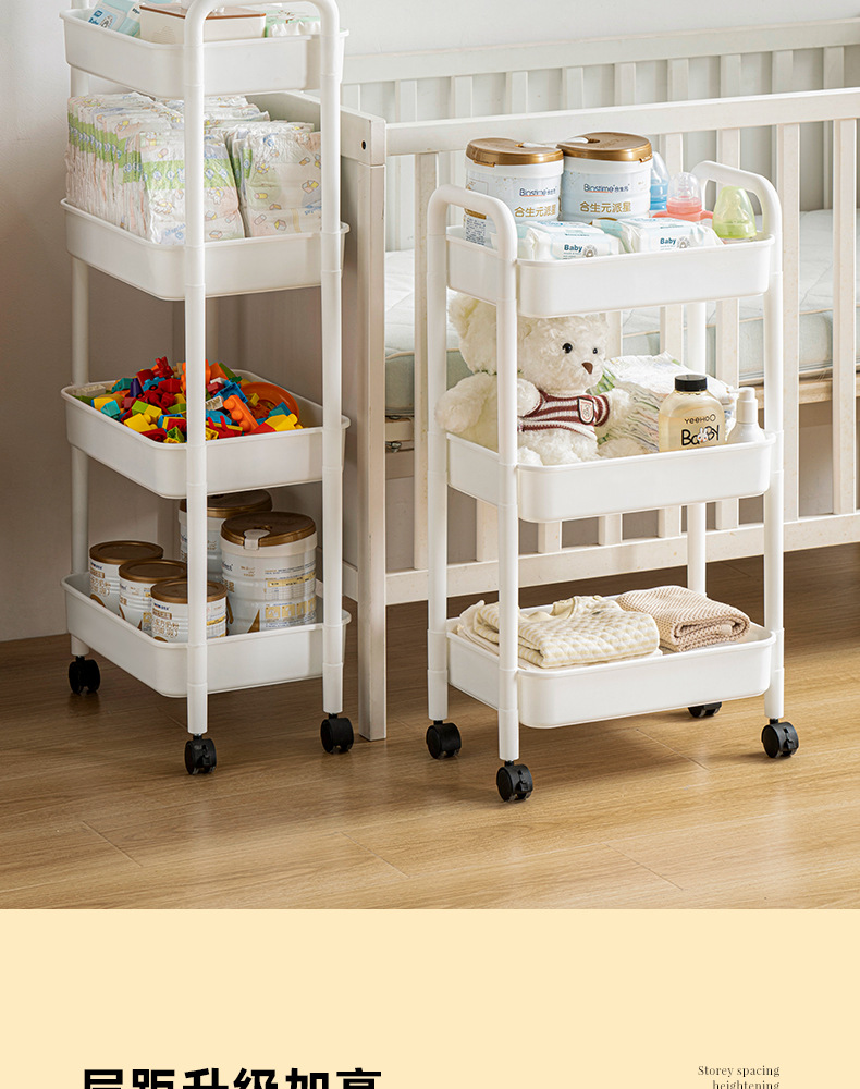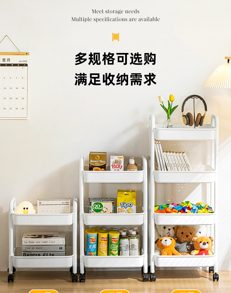 家用客厅零食收纳小推车置物架 浴室移动婴儿用品收纳落地储物架