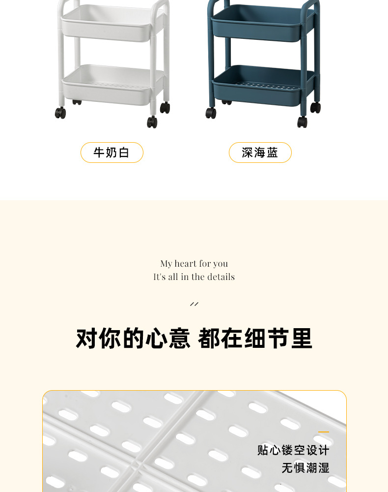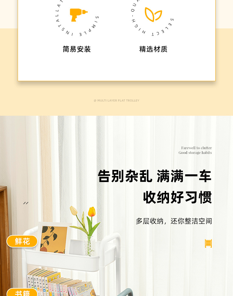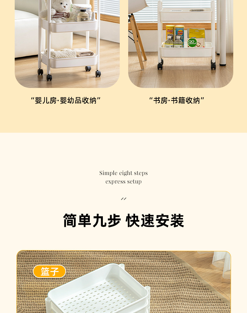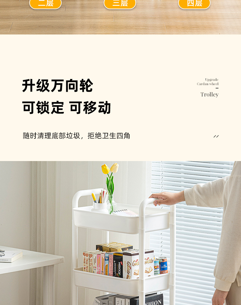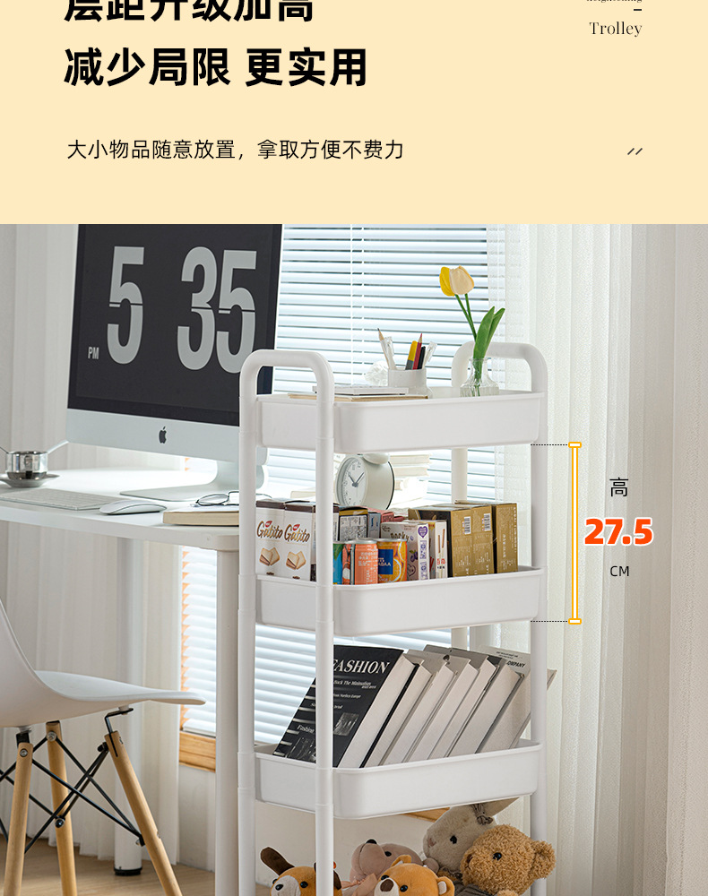 家用客厅零食收纳小推车置物架 浴室移动婴儿用品收纳落地储物架