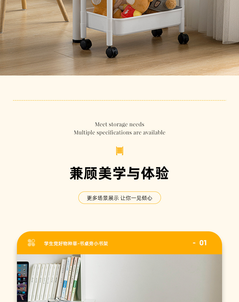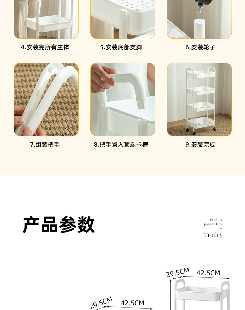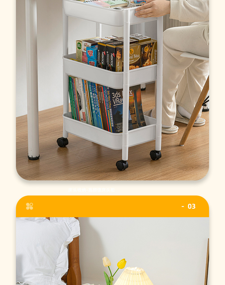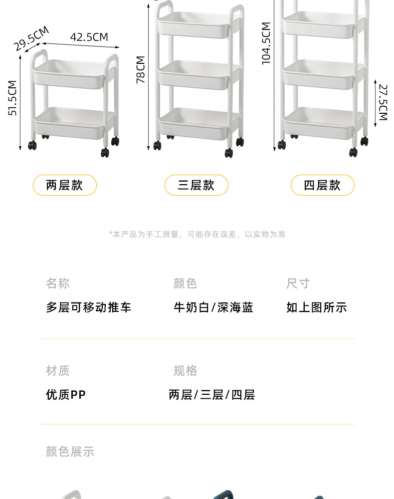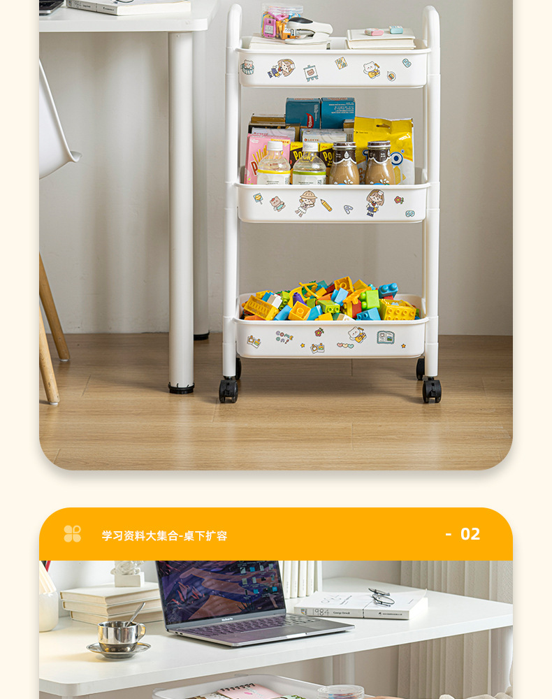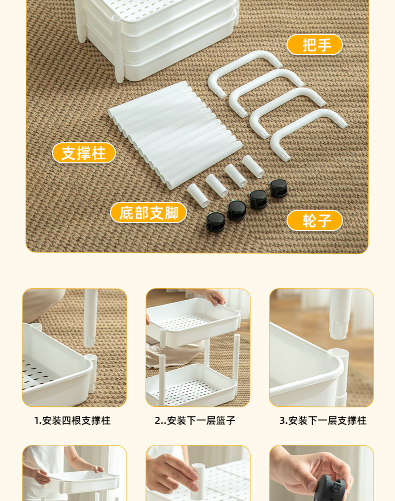 家用客厅零食收纳小推车置物架 浴室移动婴儿用品收纳落地储物架