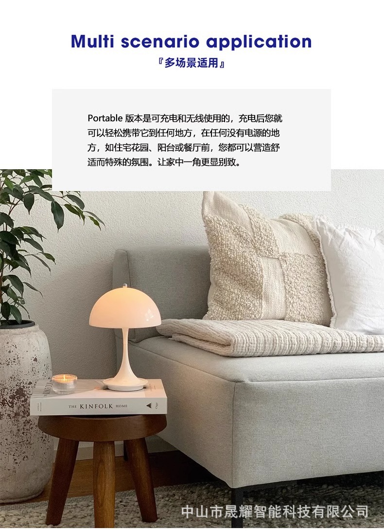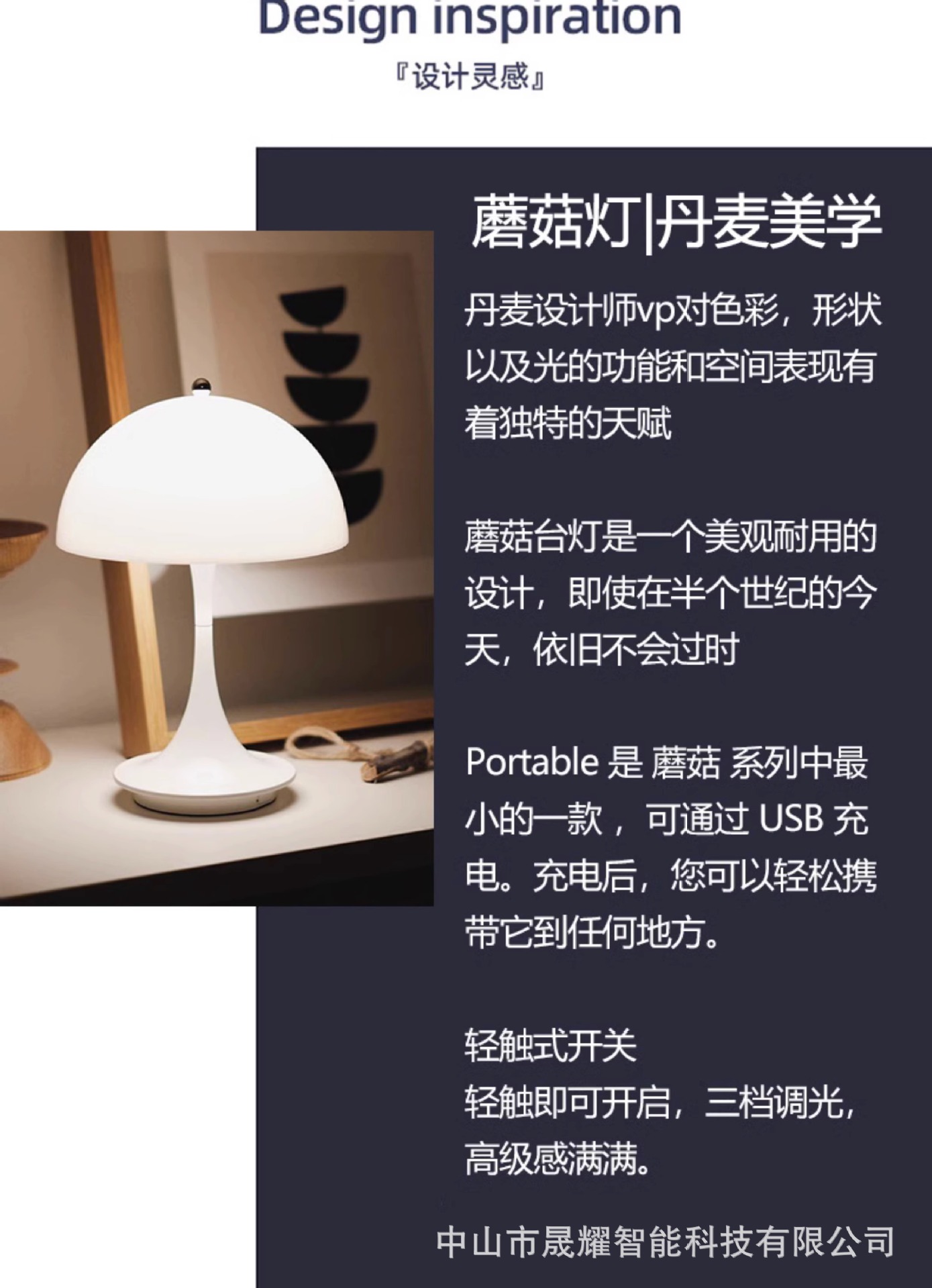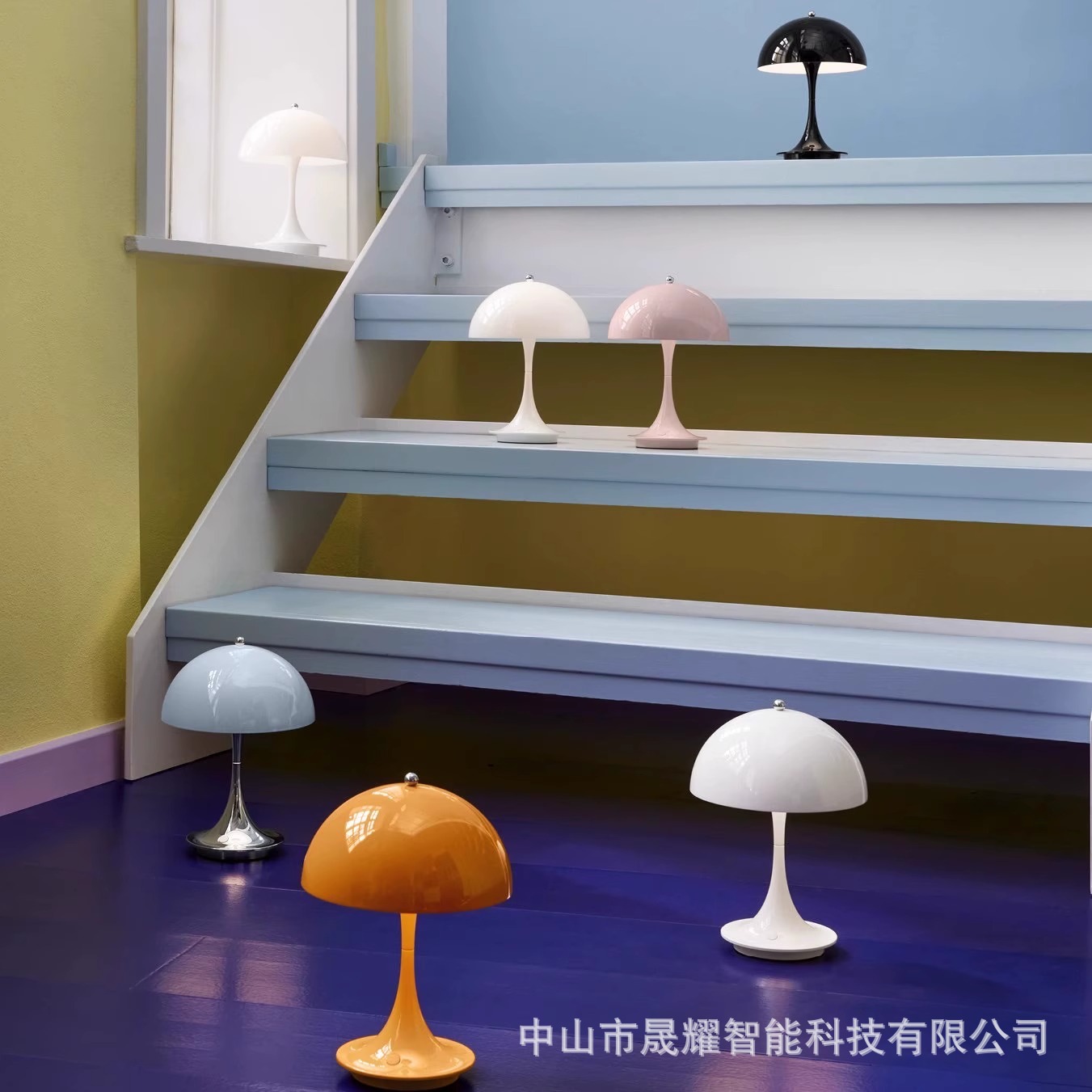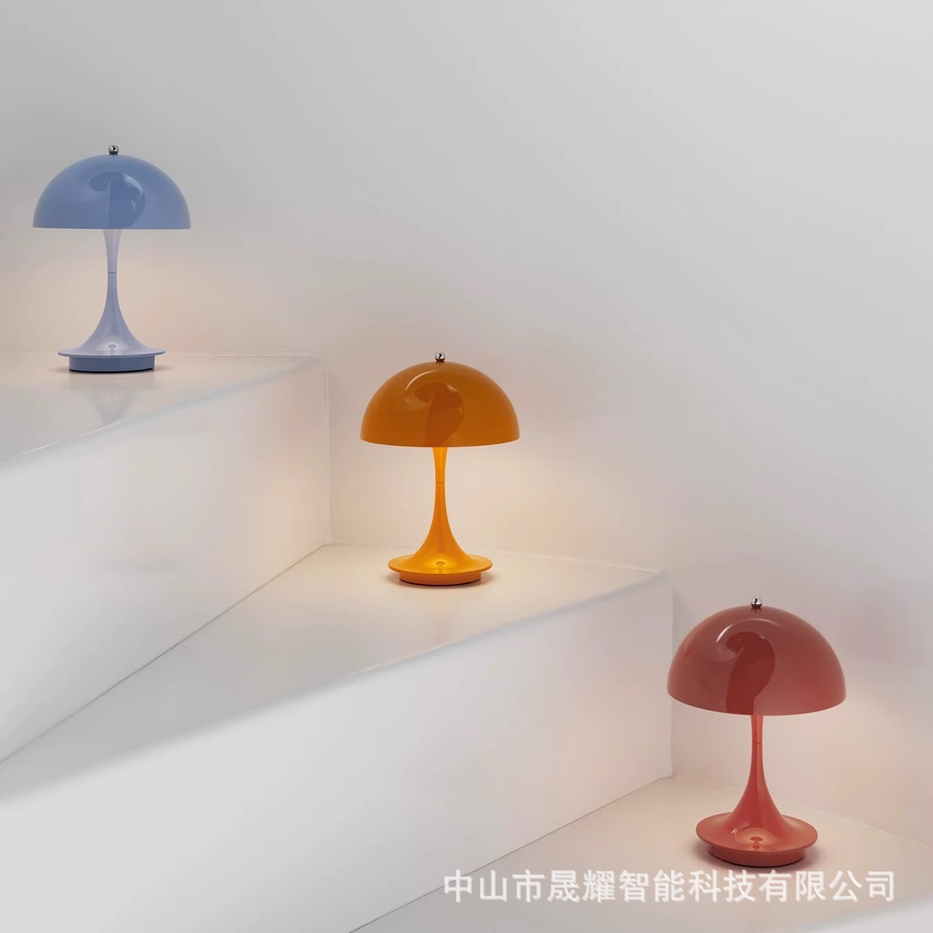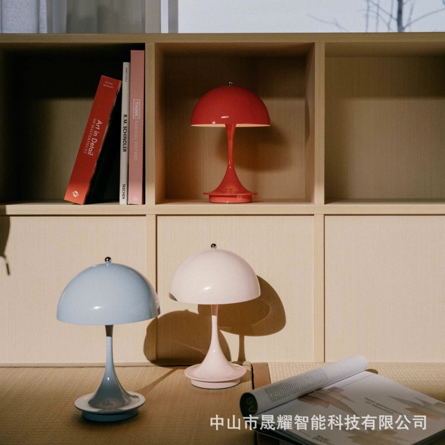 跨境丹麦蘑菇台灯卧室床头ins风花苞灯中古创意调光触摸装饰 台灯