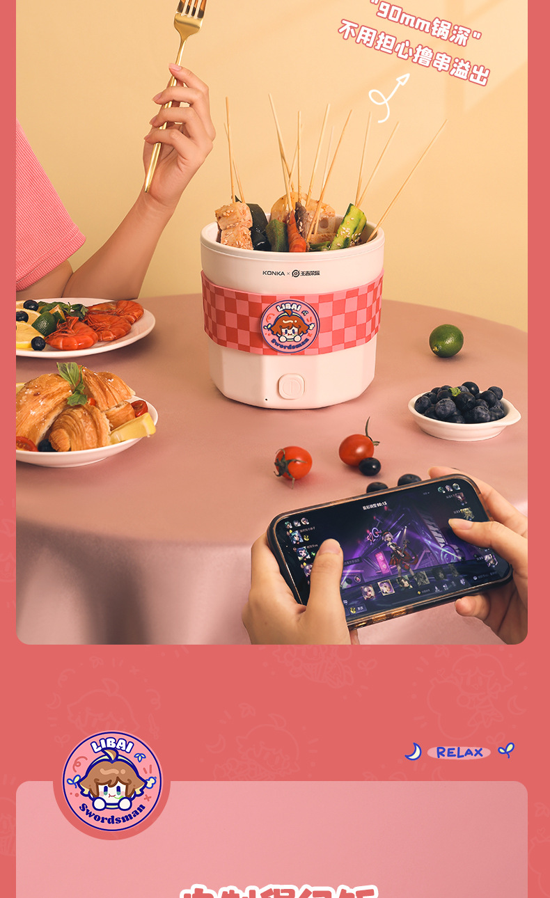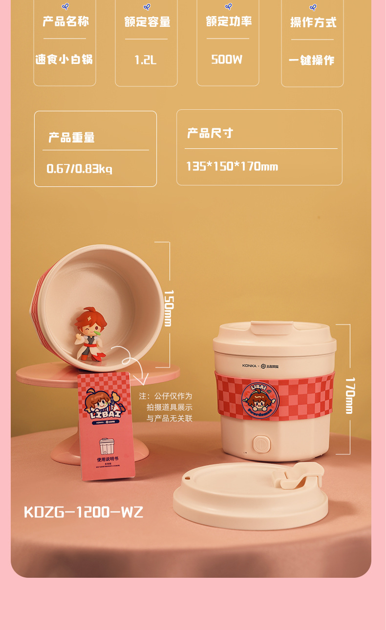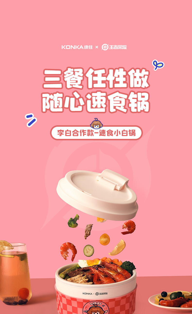 康佳电煮锅多功能一体锅学生宿舍小型泡面锅电火锅王者荣耀李白
