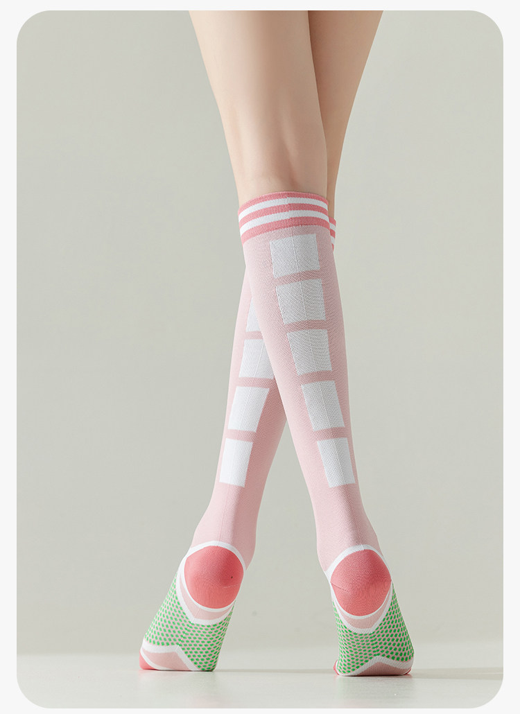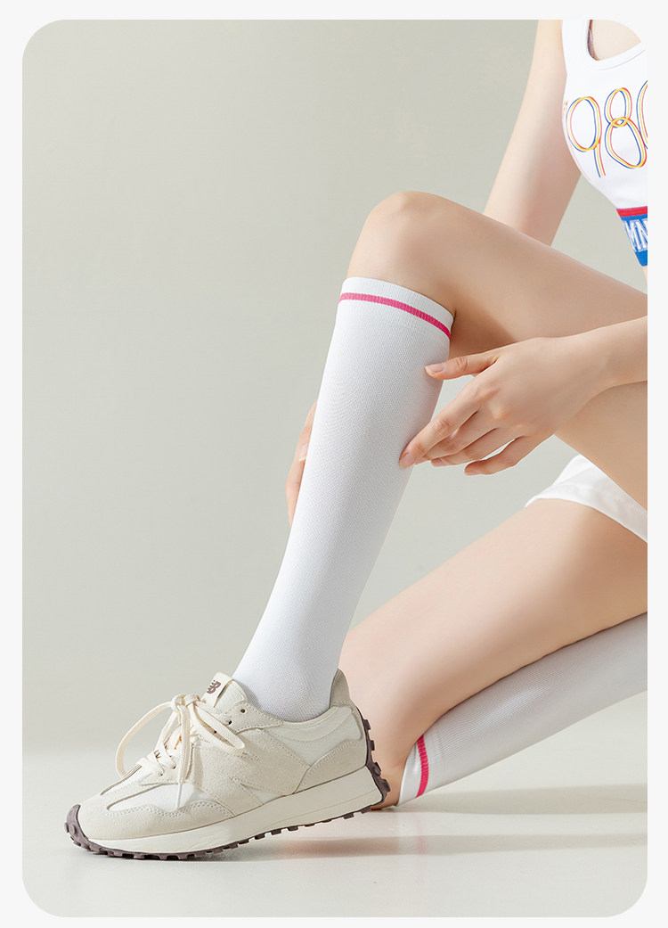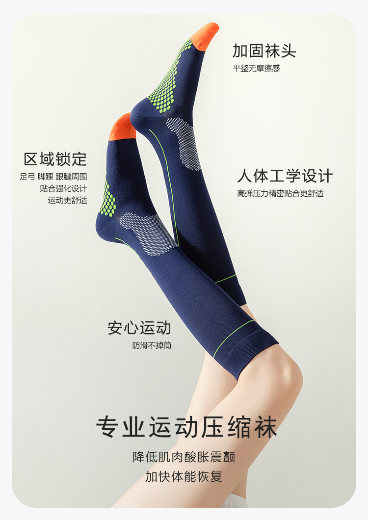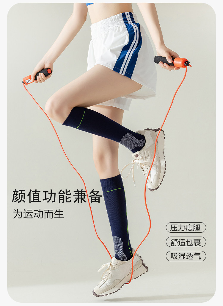 运动肌能压缩袜子女长袜专业健身跑步跳绳压力瘦腿弹力长筒小腿袜