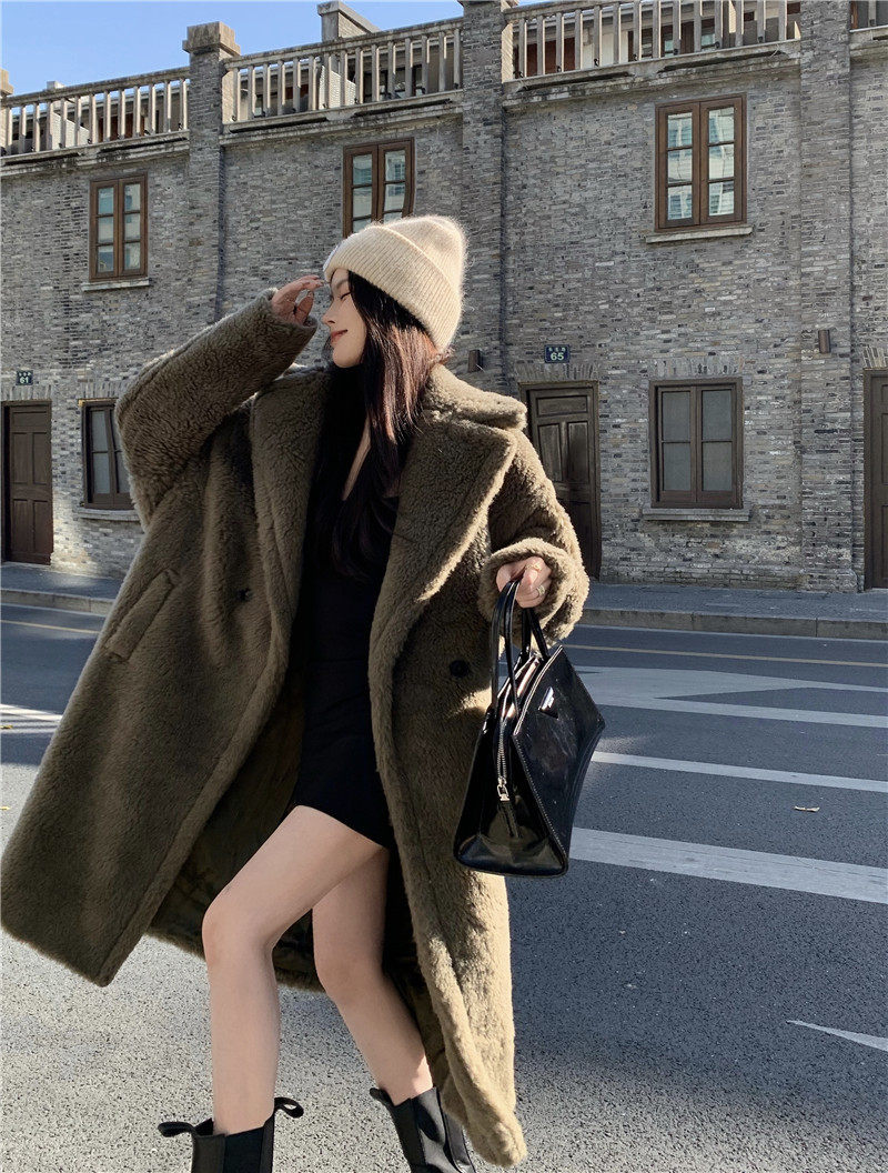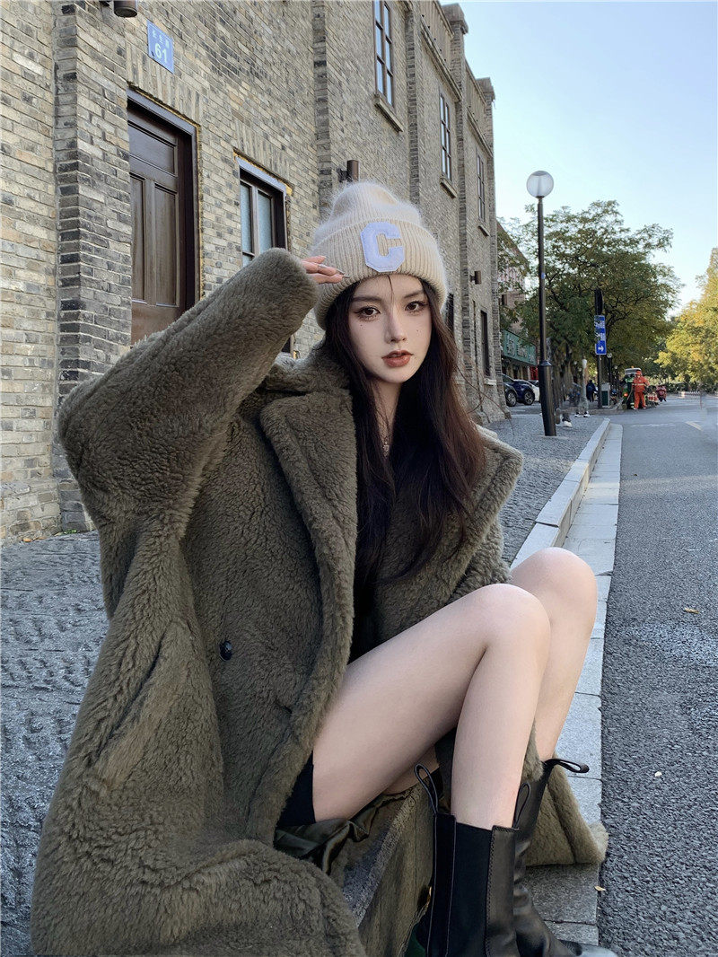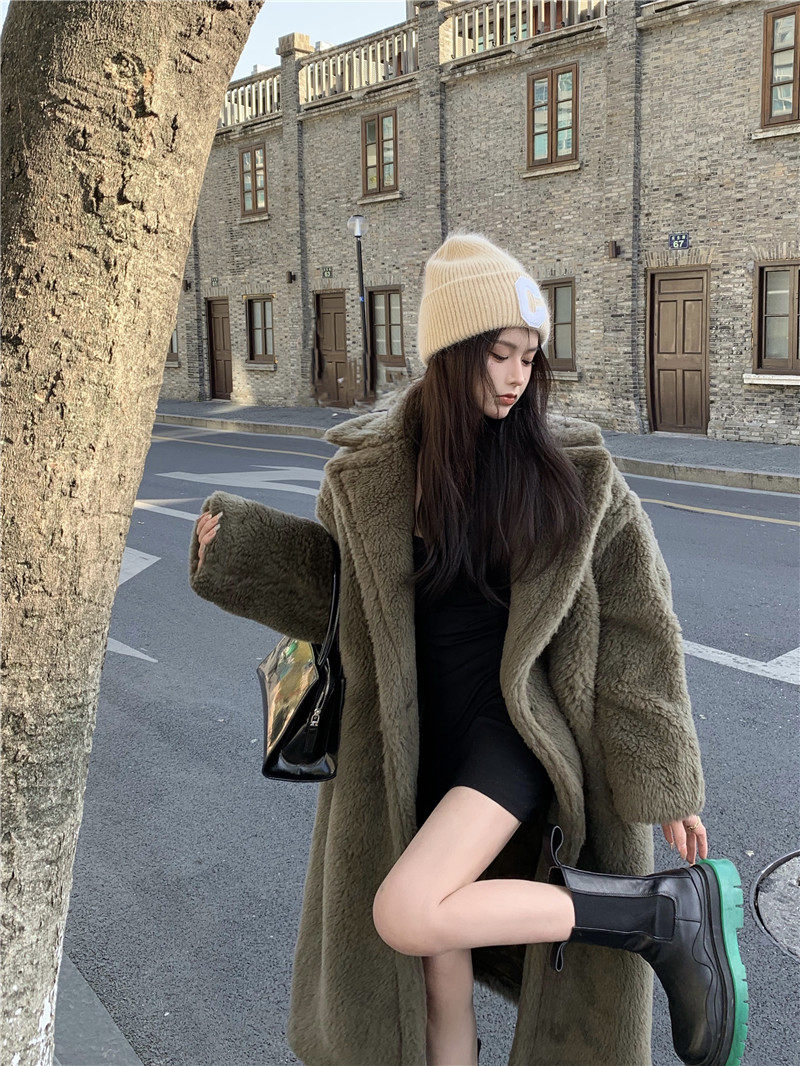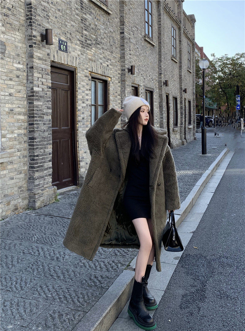 秋冬季加厚中长款颗粒绒毛呢外套女2023年新款高级感小众个子大衣