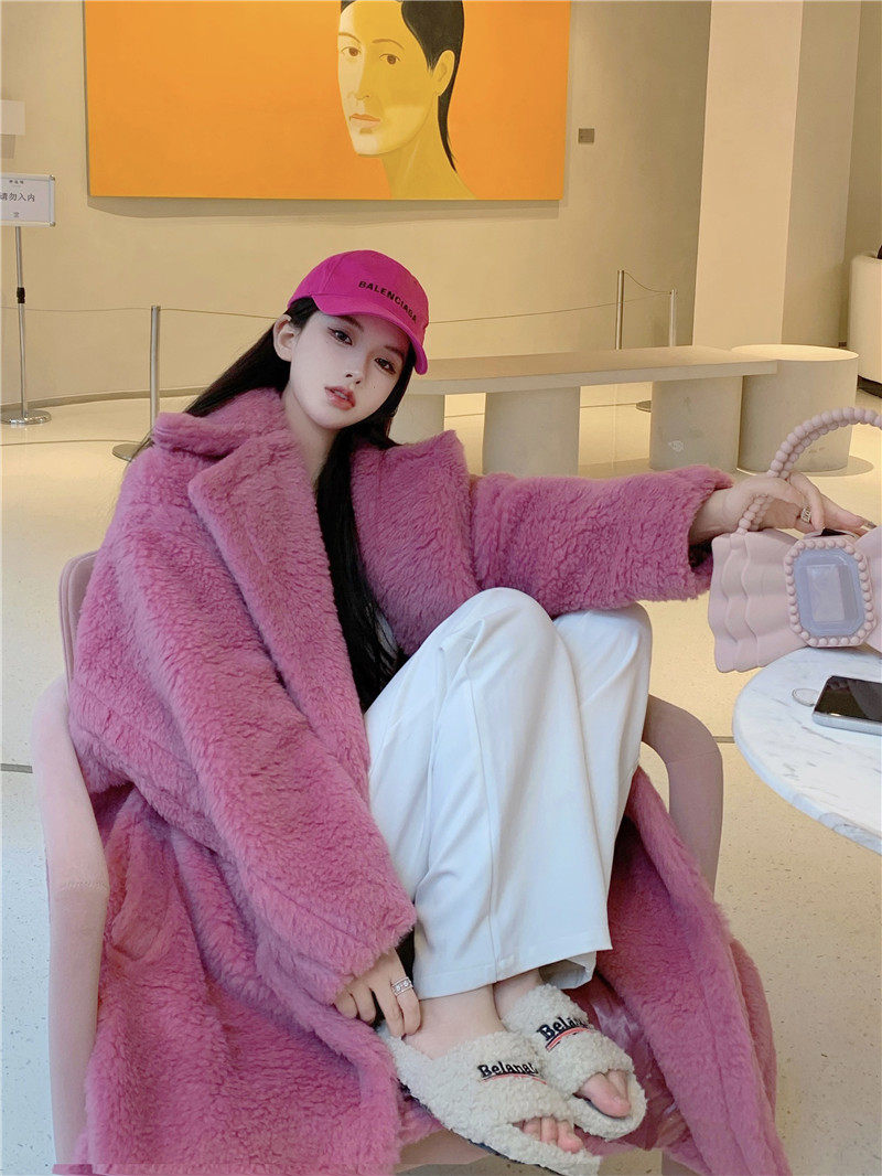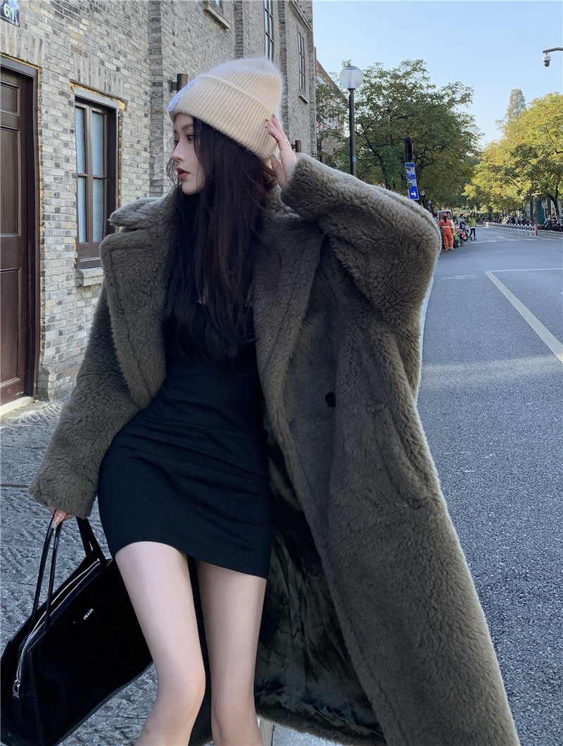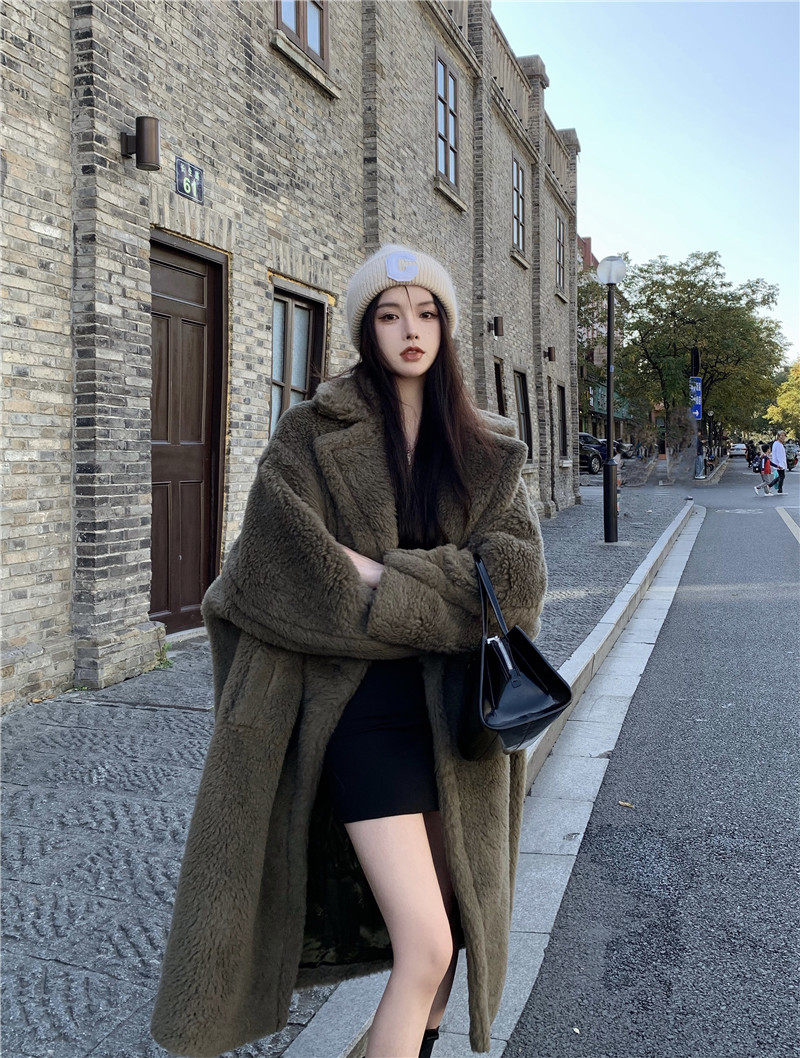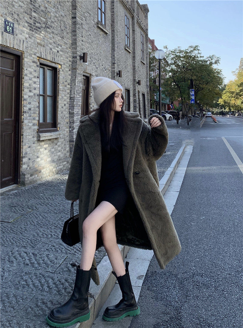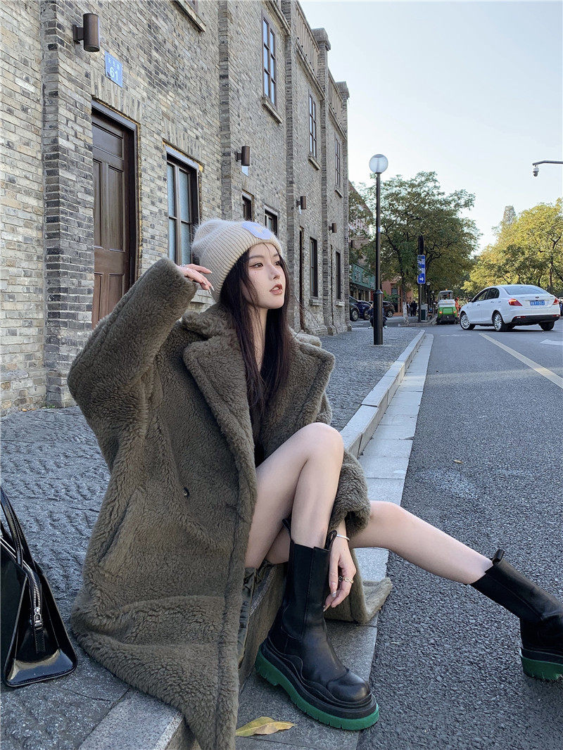 秋冬季加厚中长款颗粒绒毛呢外套女2023年新款高级感小众个子大衣