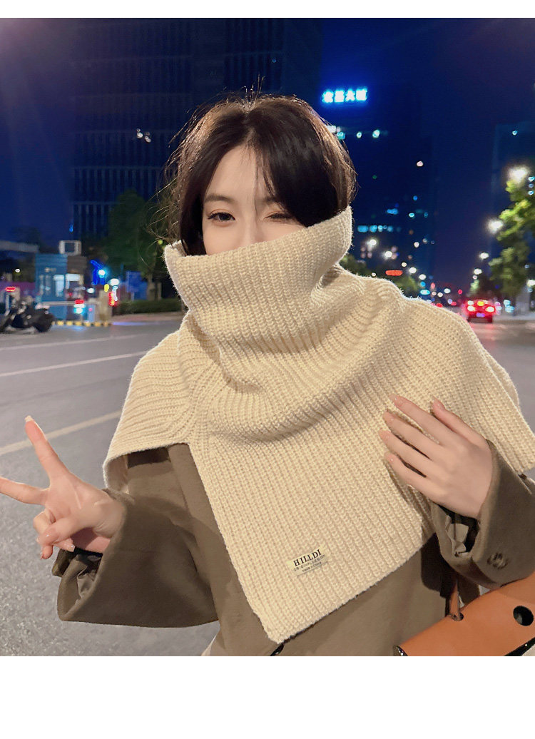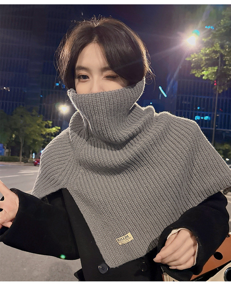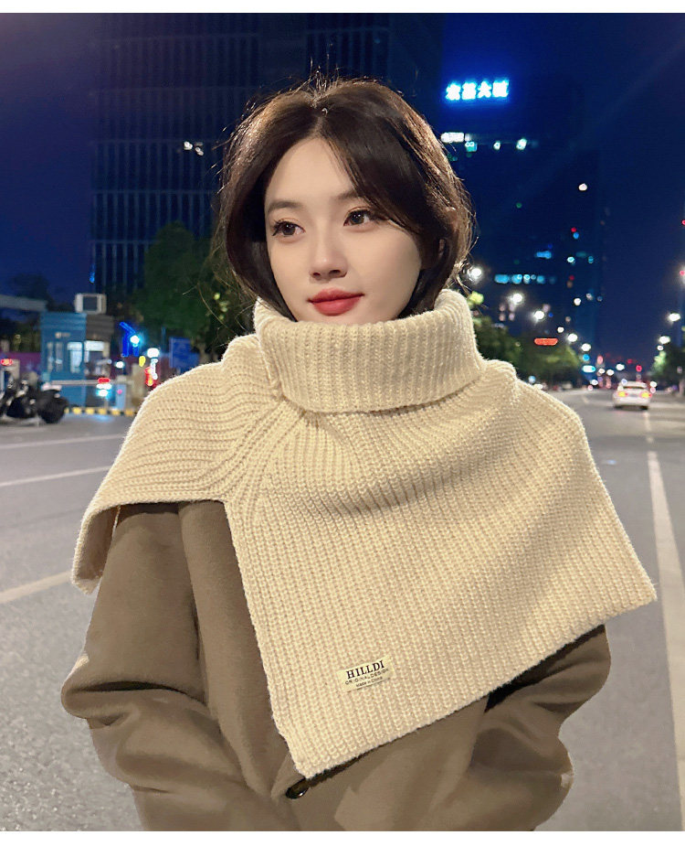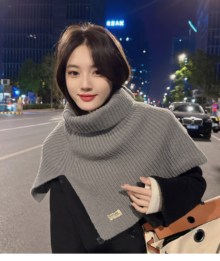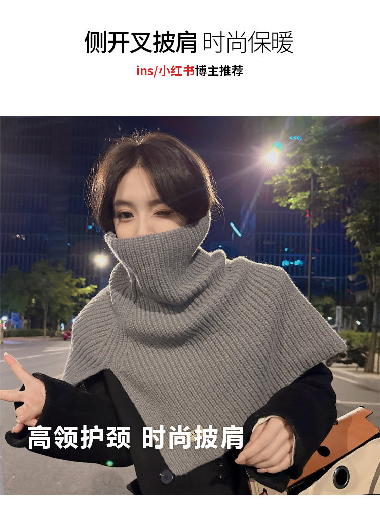 时尚开叉高领披肩女秋冬季韩版百搭针织围巾防寒保暖套头毛线围脖