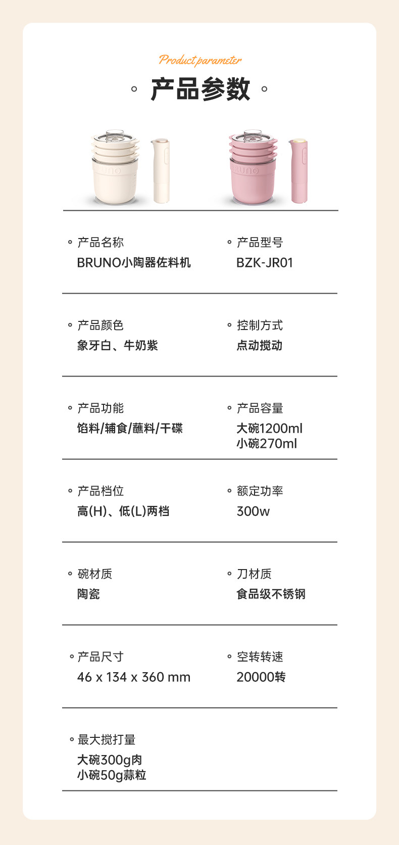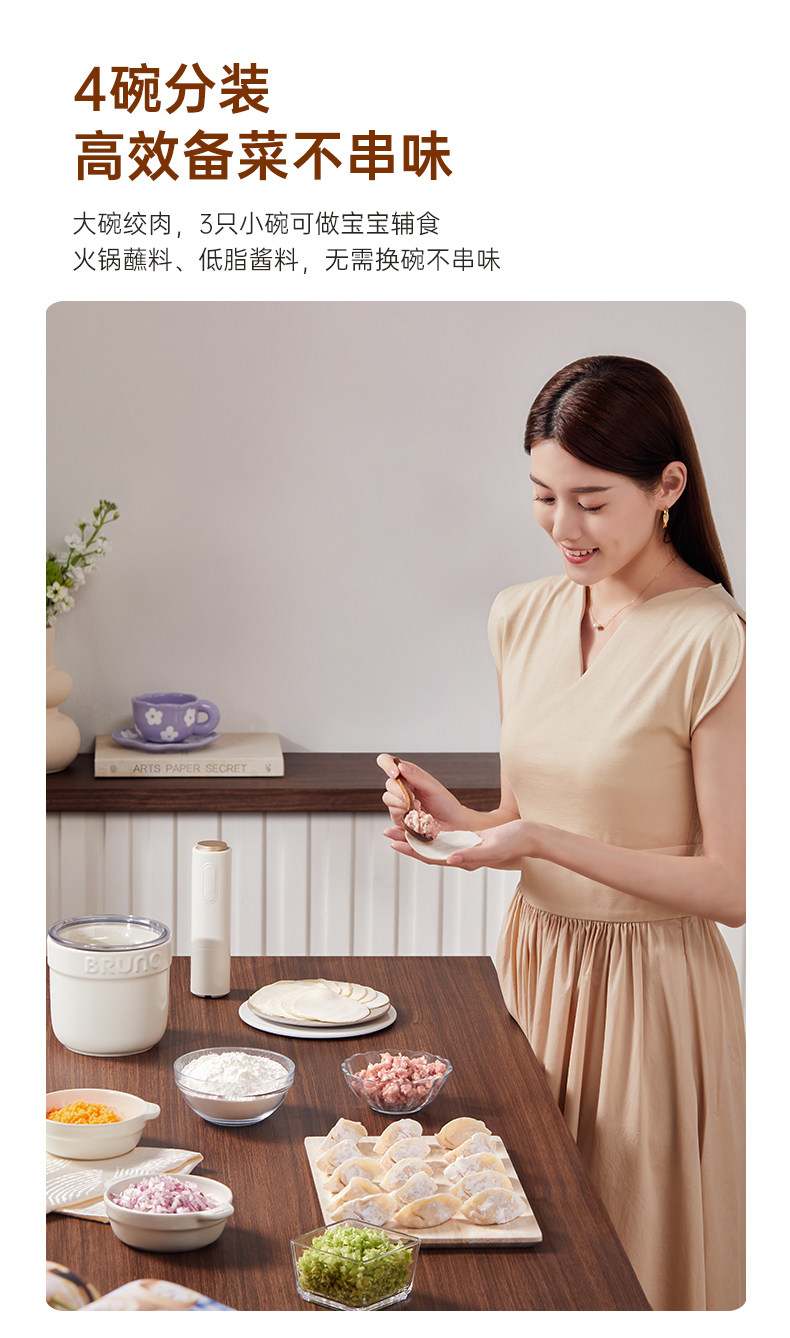 BRUNO绞肉机家用备餐佐料机多功能料理机电动绞馅辅食机碎肉馅机