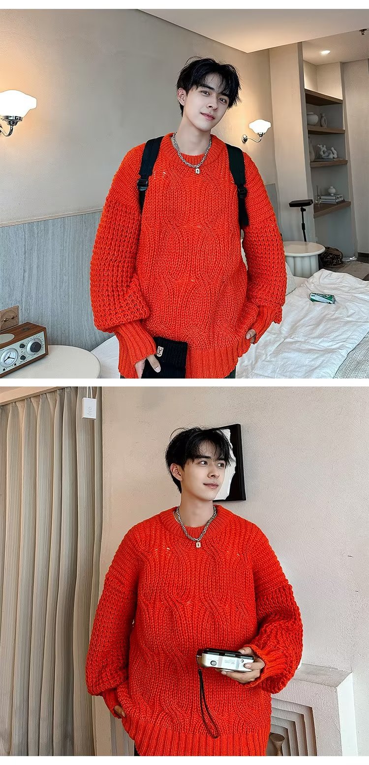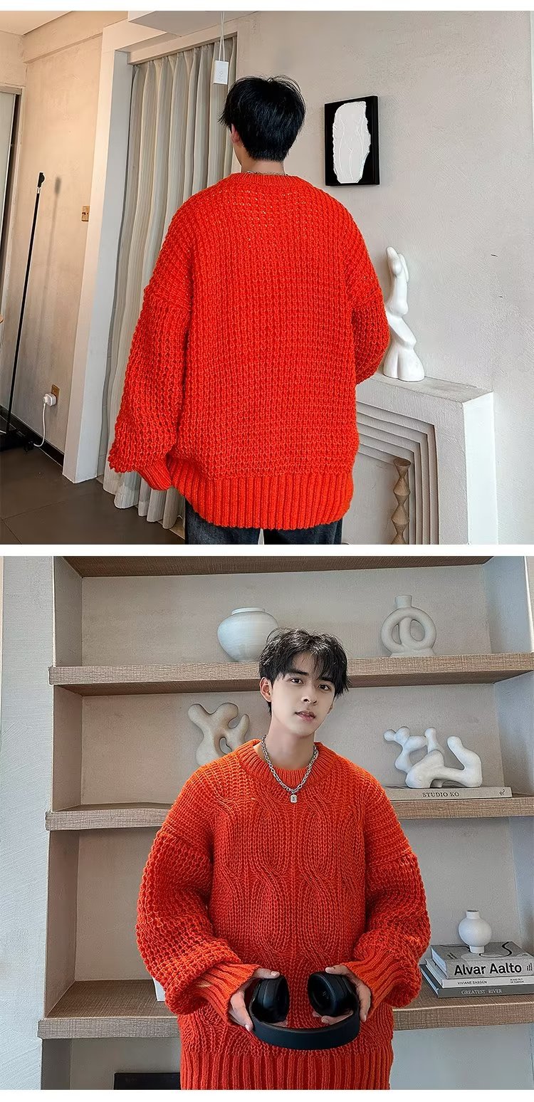开衫毛衣外套男春秋潮牌ins宽松百搭v领针织上衣港风慵懒黑色线衣