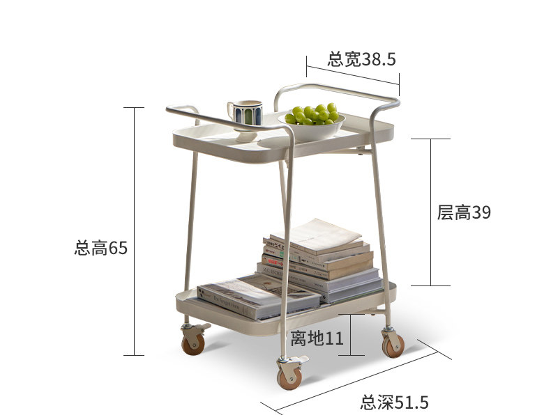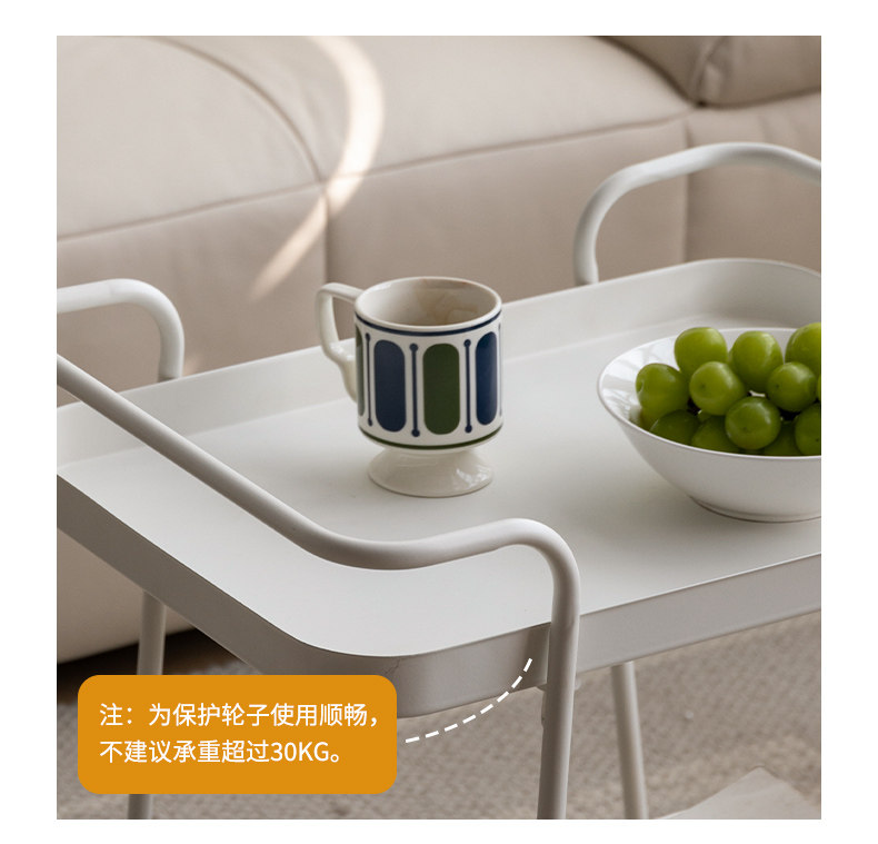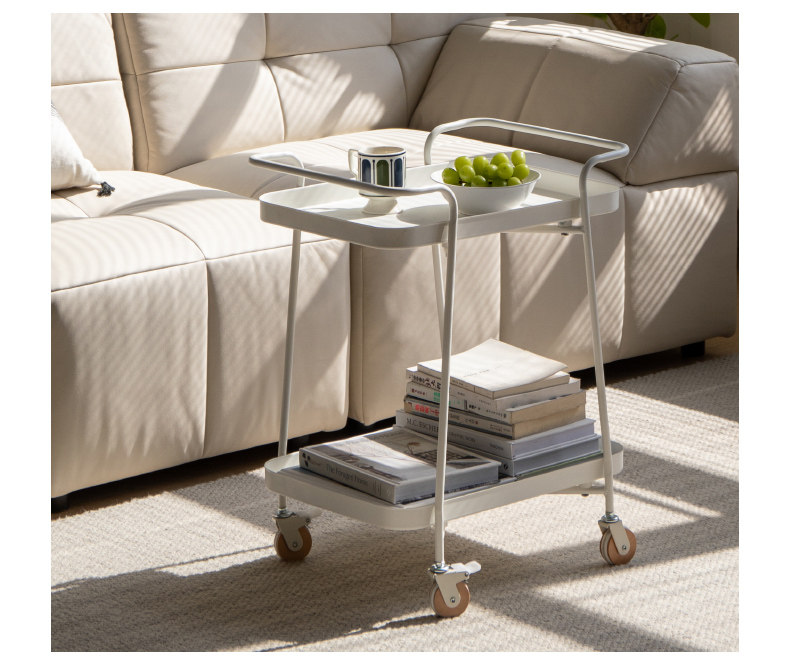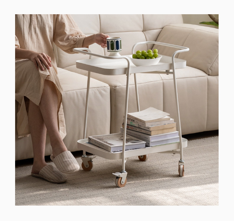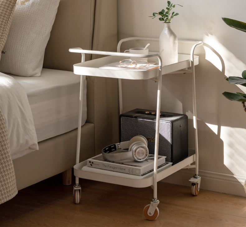 源氏木语双层收纳置物架客厅沙发移动边几现代简约家用白色小推车
