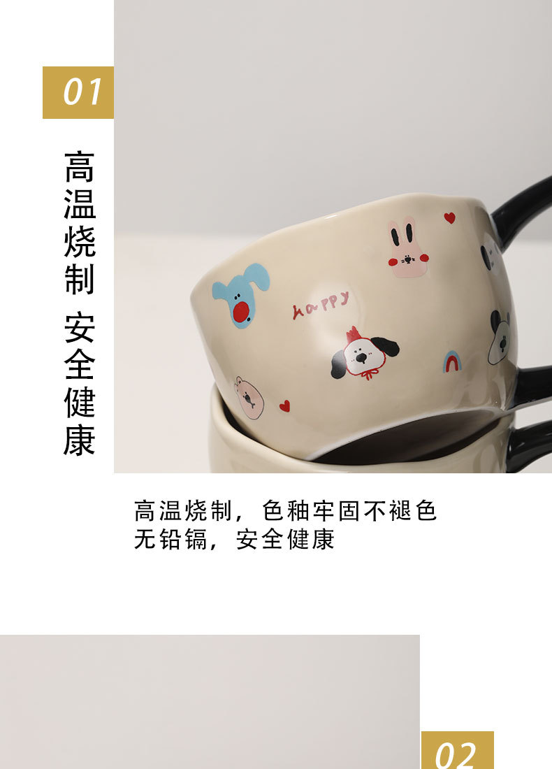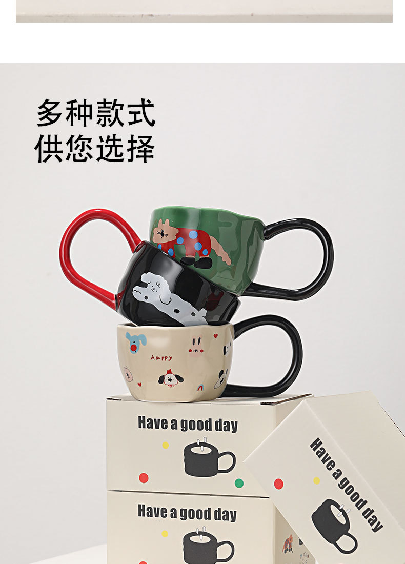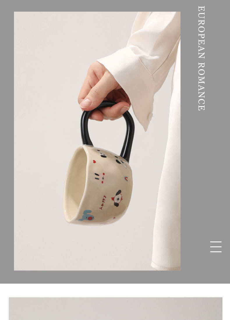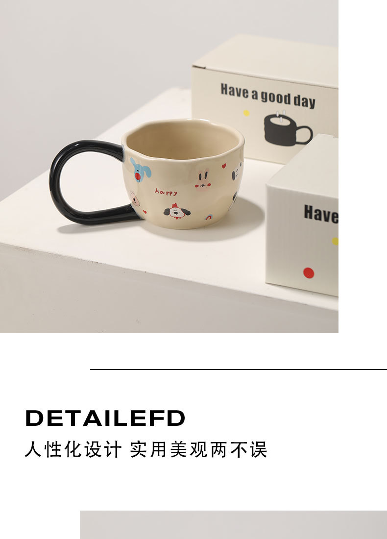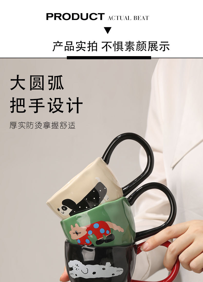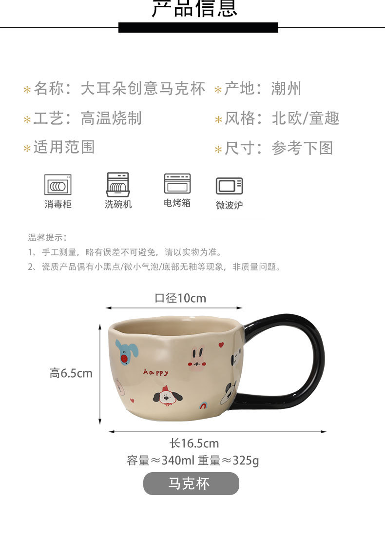 网红大耳朵马克杯陶瓷杯子高颜值可爱大手柄创意卡通图案咖啡杯