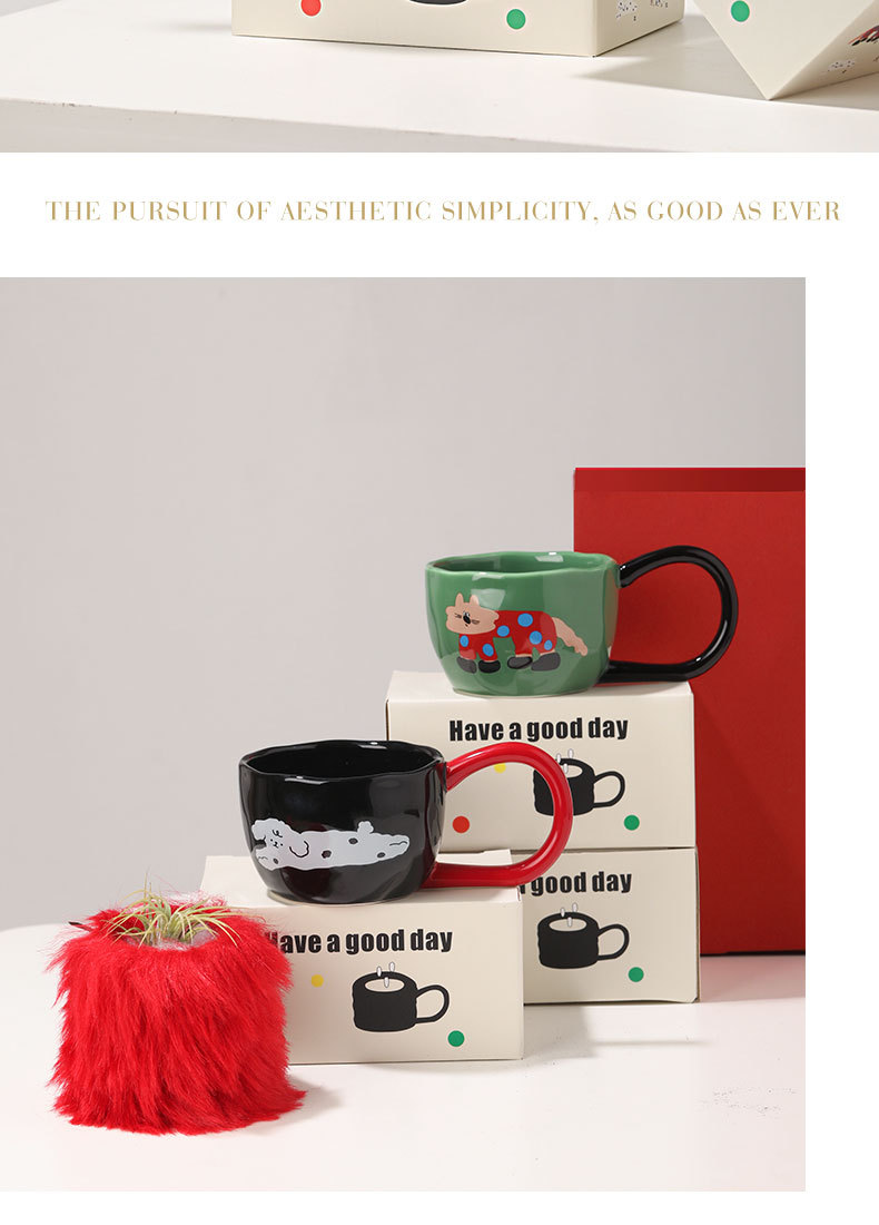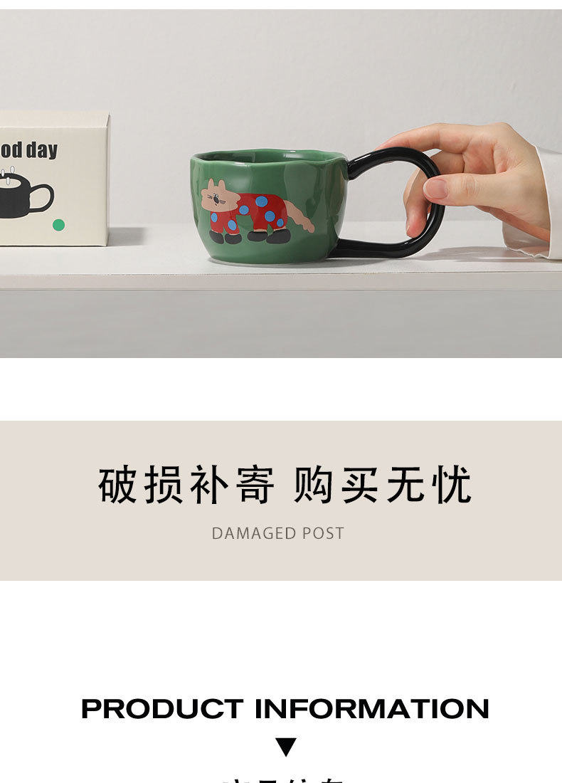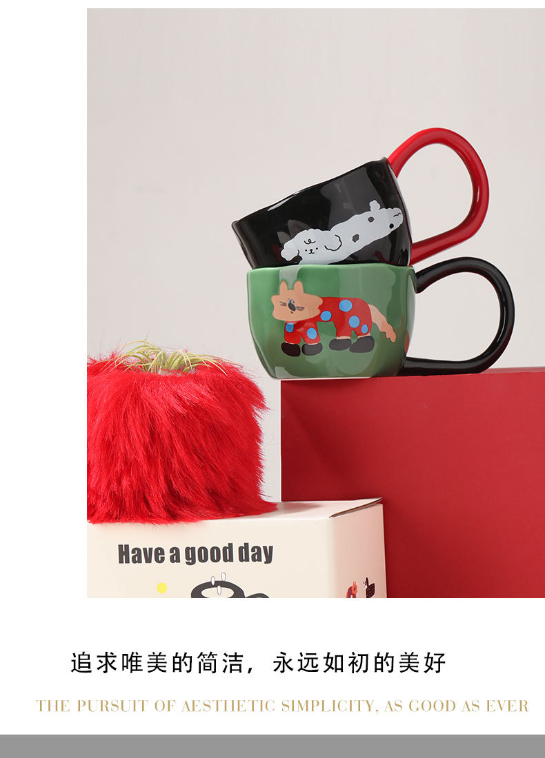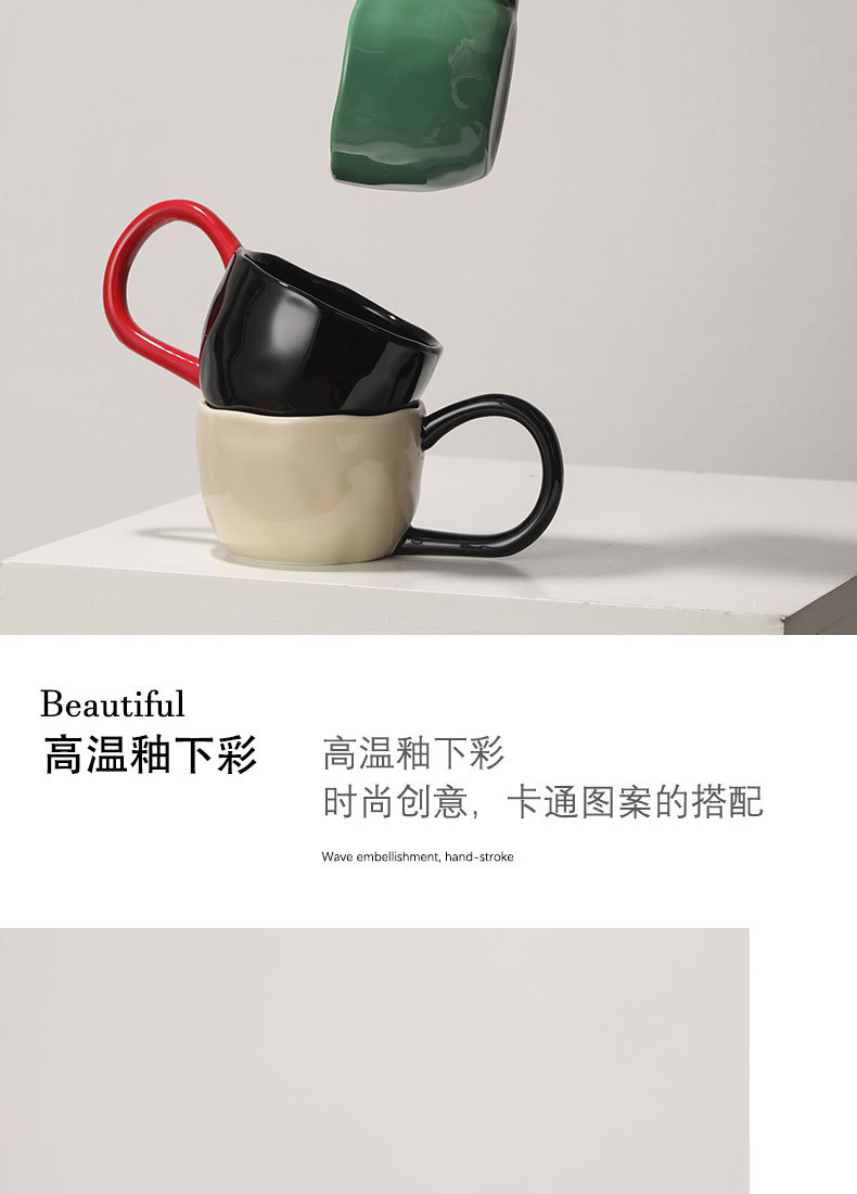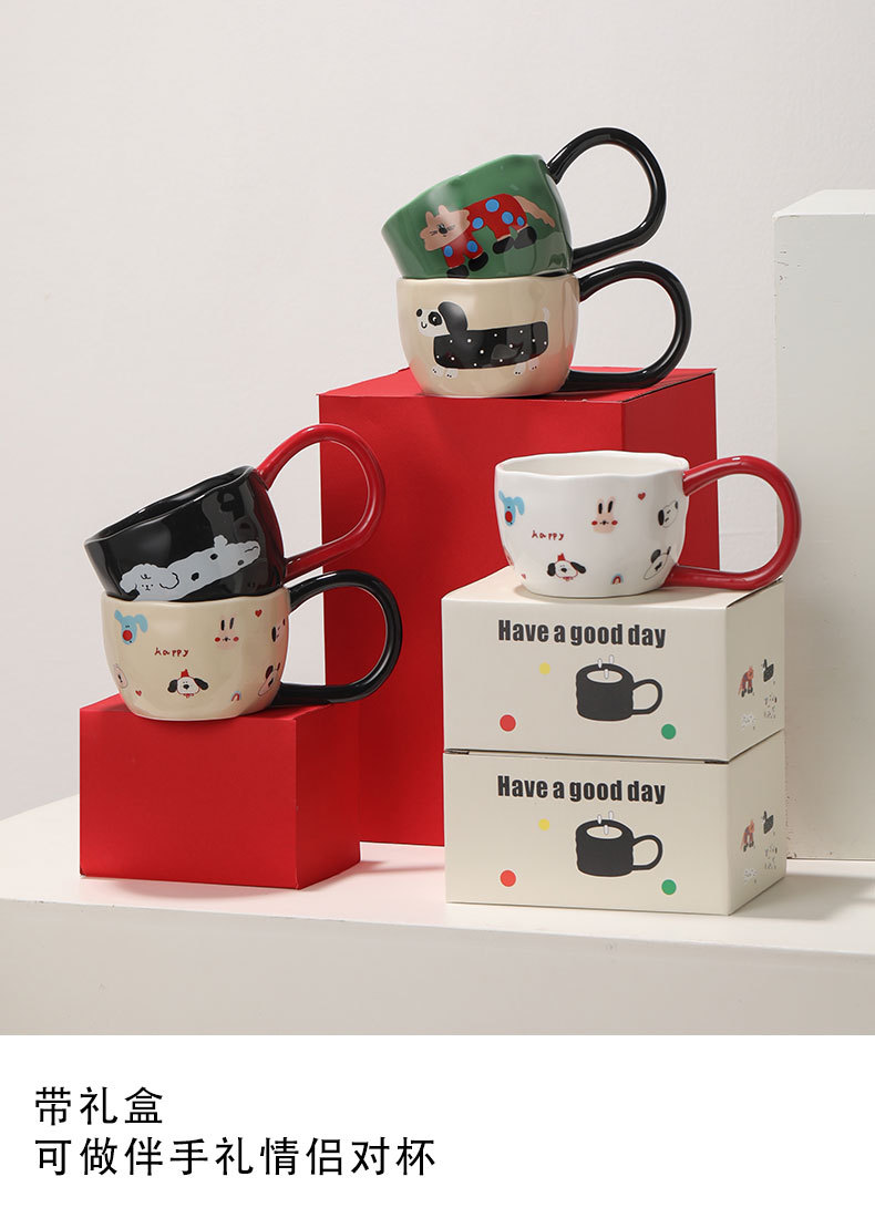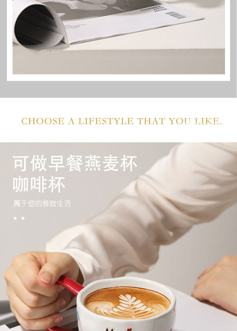 网红大耳朵马克杯陶瓷杯子高颜值可爱大手柄创意卡通图案咖啡杯