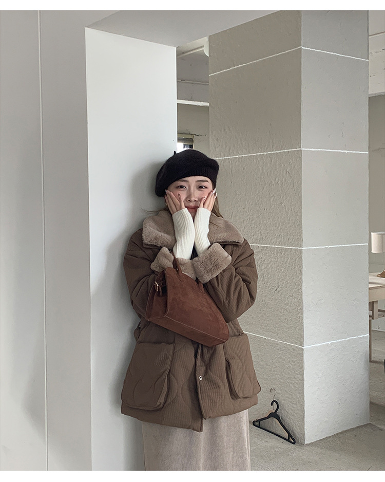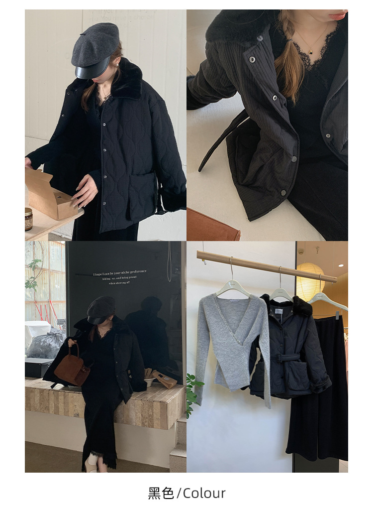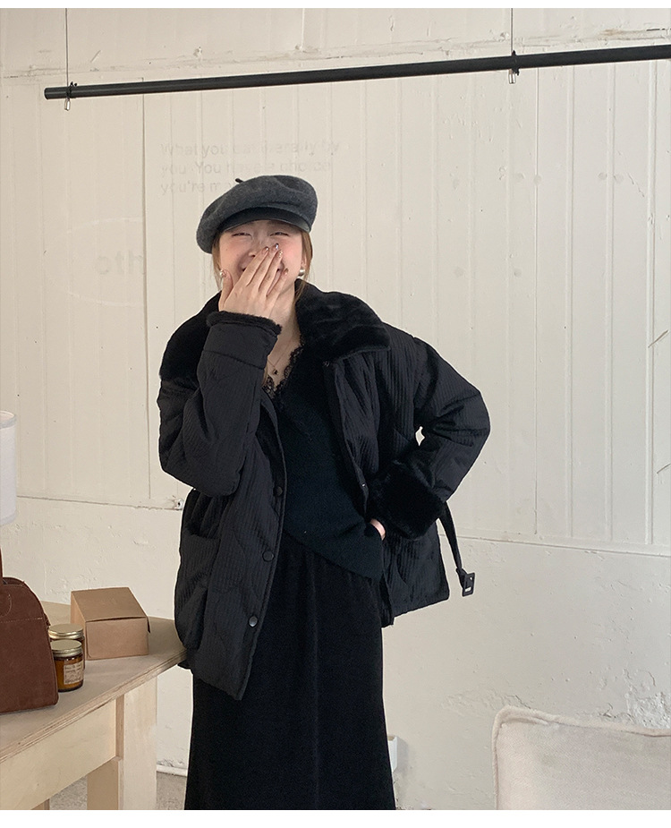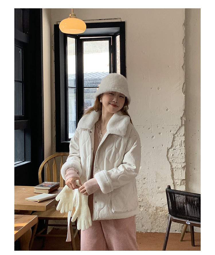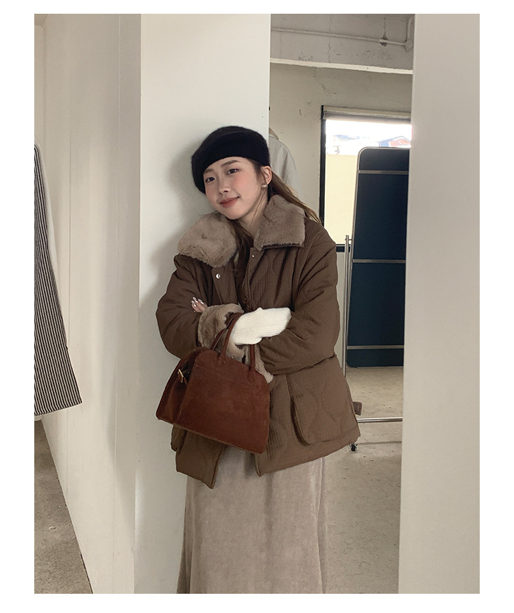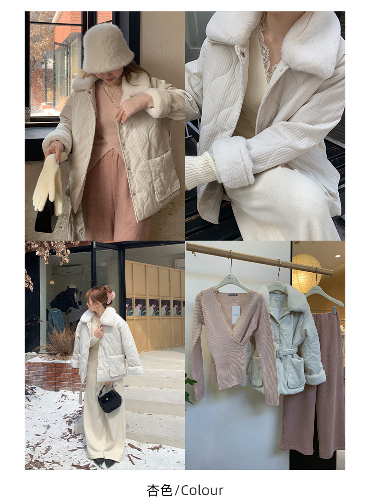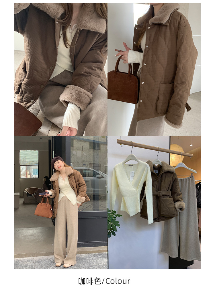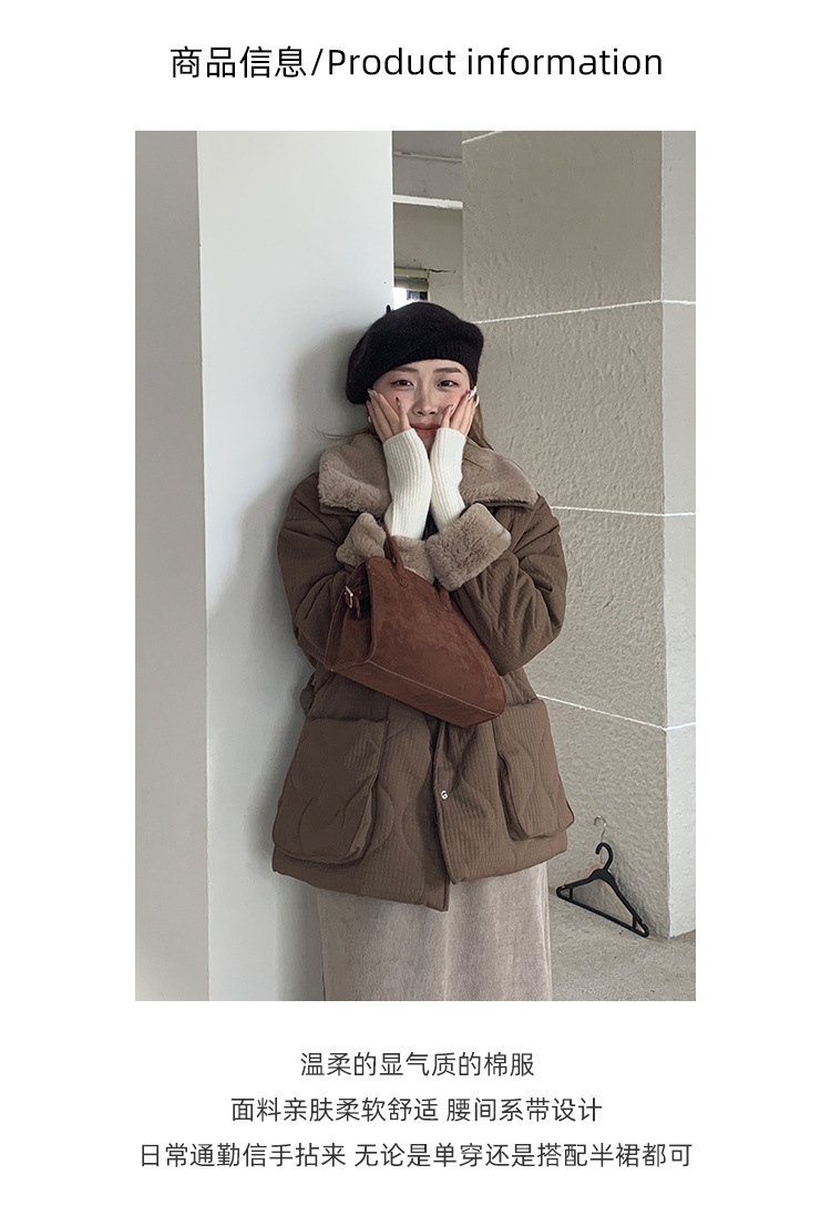 上赛2023秋冬韩系慵懒风毛圈短款棉服女毛绒绒设计百搭外套女1098