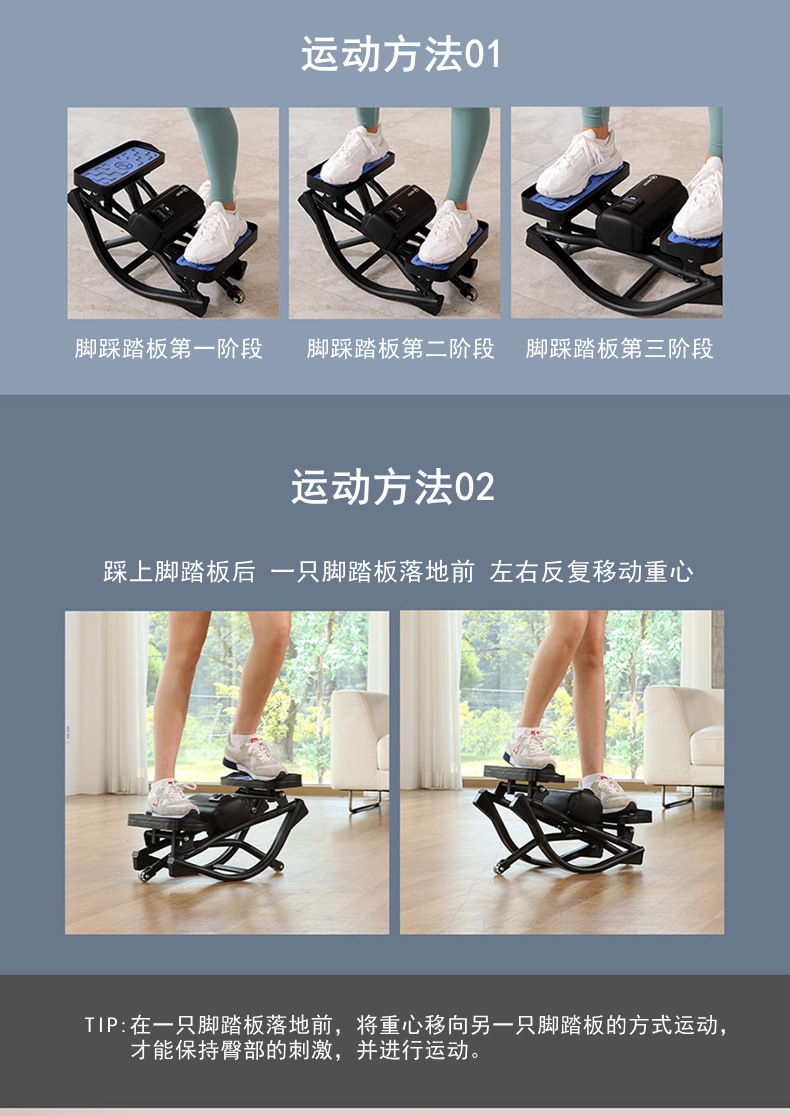 家用走步左右踩踏踏步机带拉绳静音小型运动健身器材原地登山脚踏