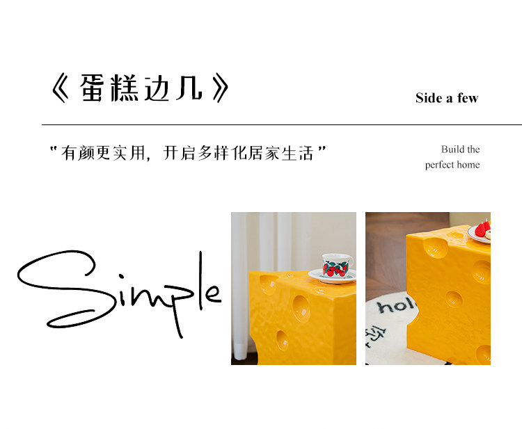 欧又网红创意奶酪边几ins风简约蛋糕茶几小户型客厅家用沙发角几