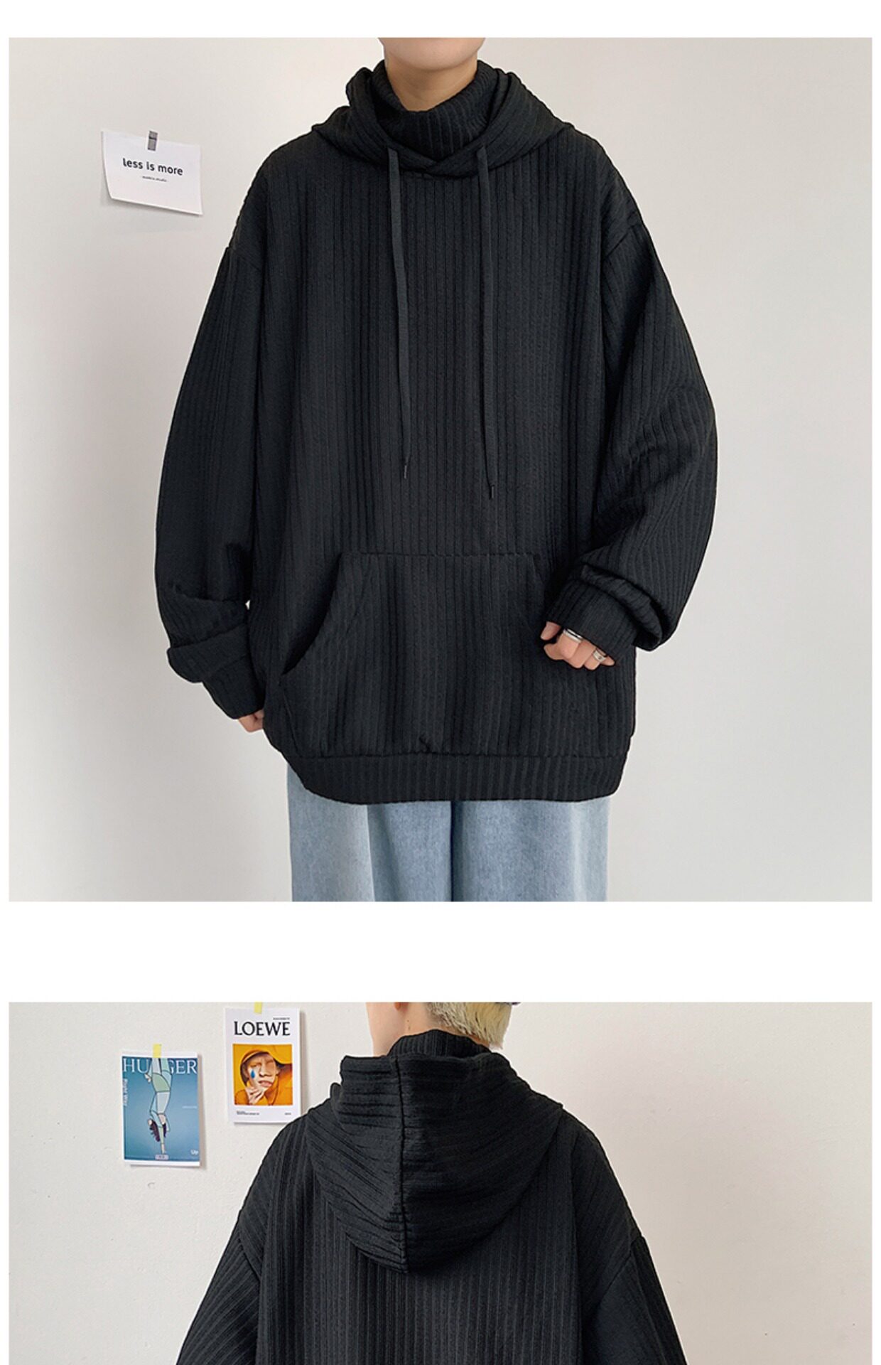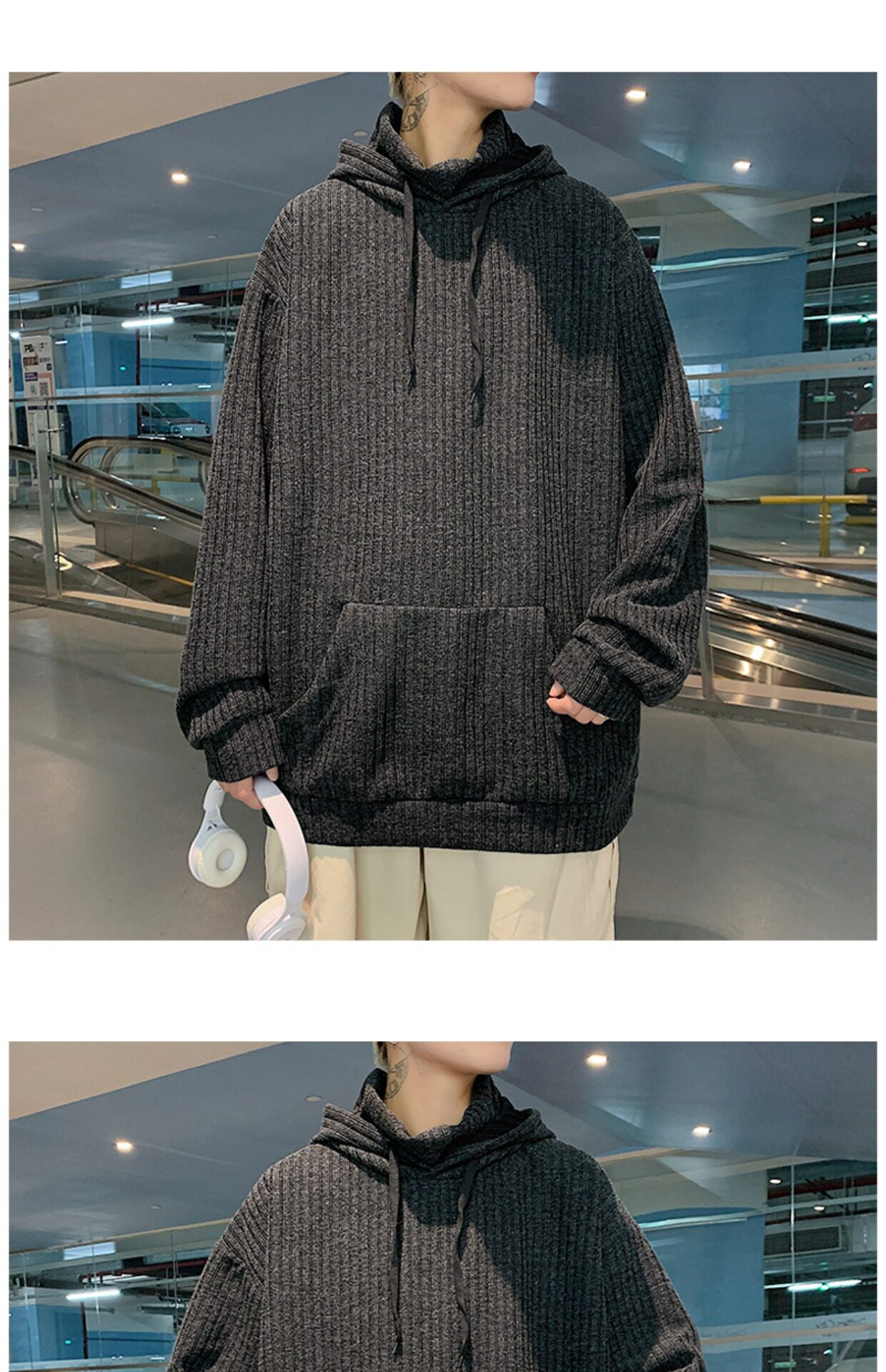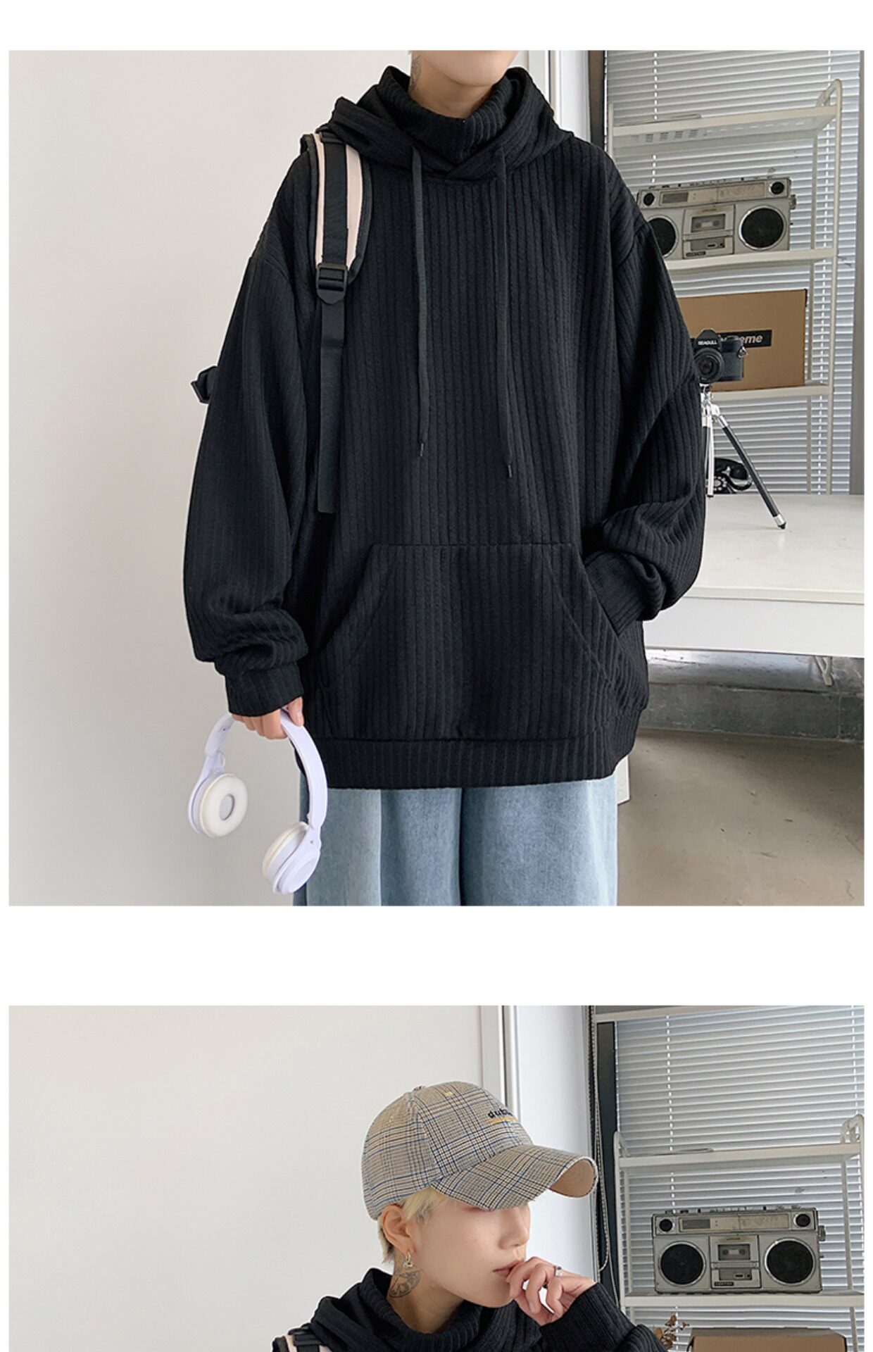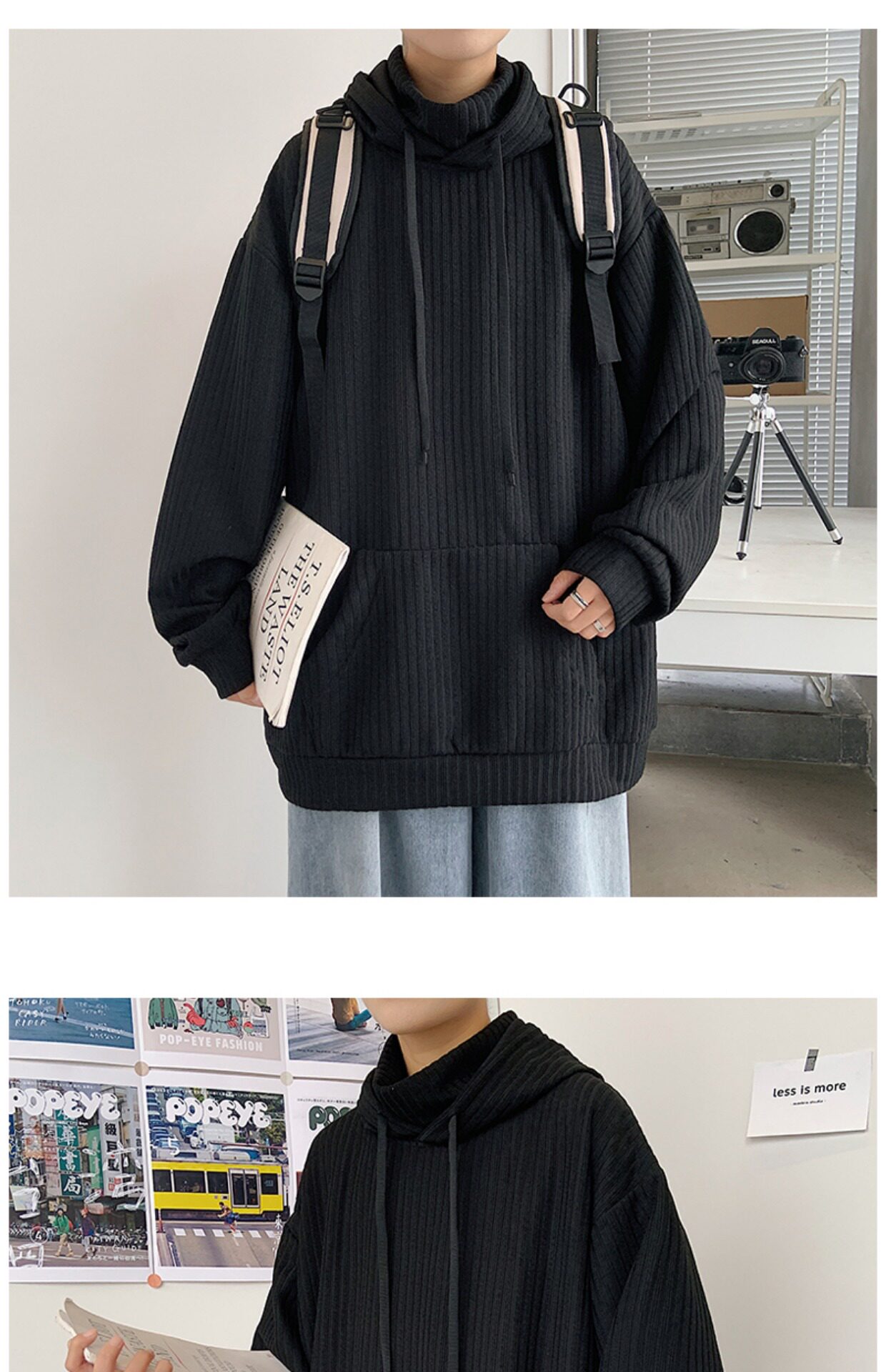 假两件高领连帽卫衣男生春秋季日系复古宽松帽衫潮牌简约套头上衣