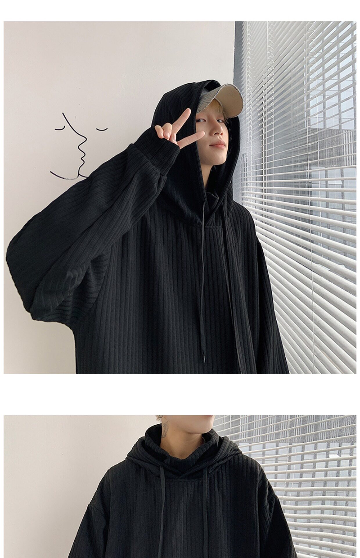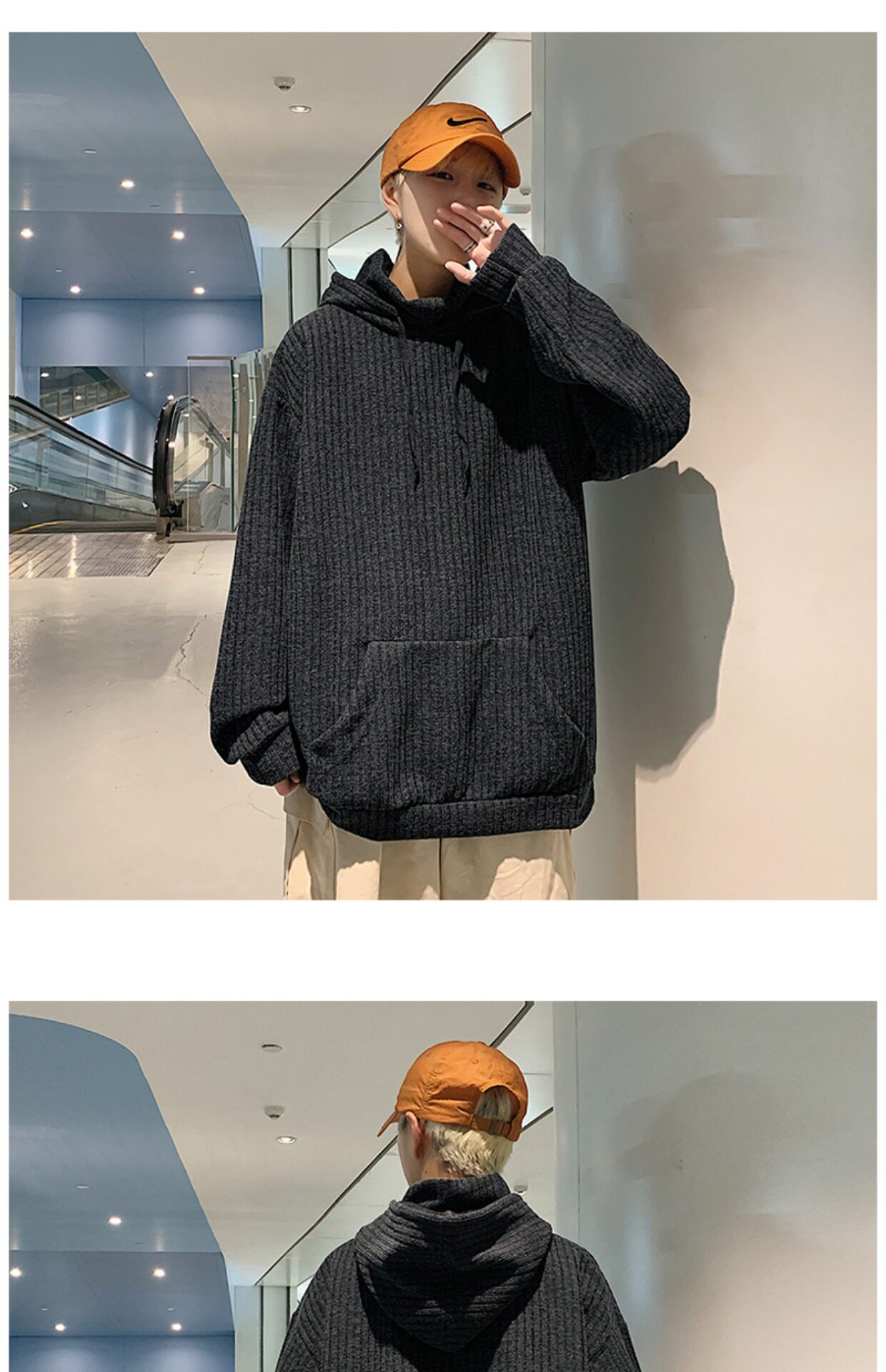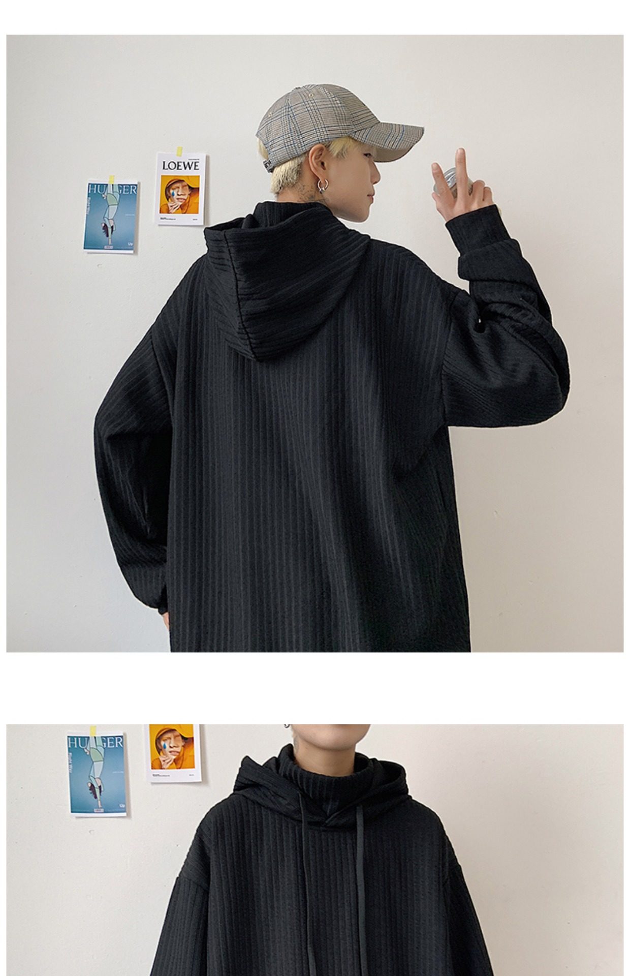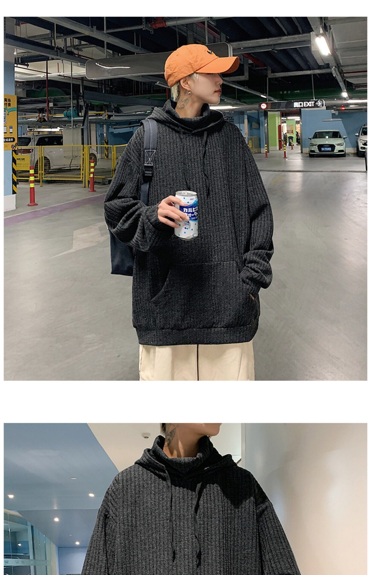假两件高领连帽卫衣男生春秋季日系复古宽松帽衫潮牌简约套头上衣