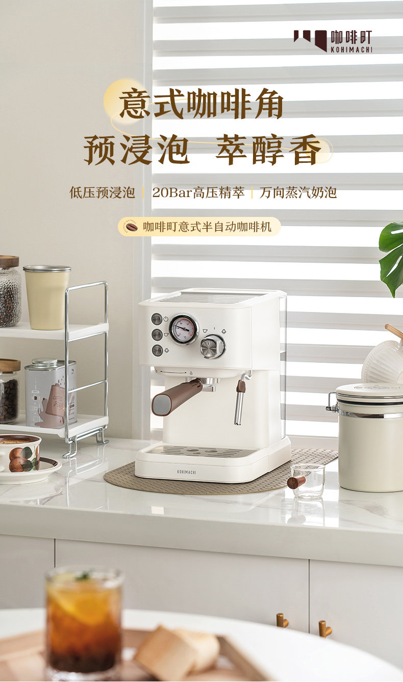 咖啡町意式咖啡机家用小型全半自动一体美式萃取奶泡机kohimachi