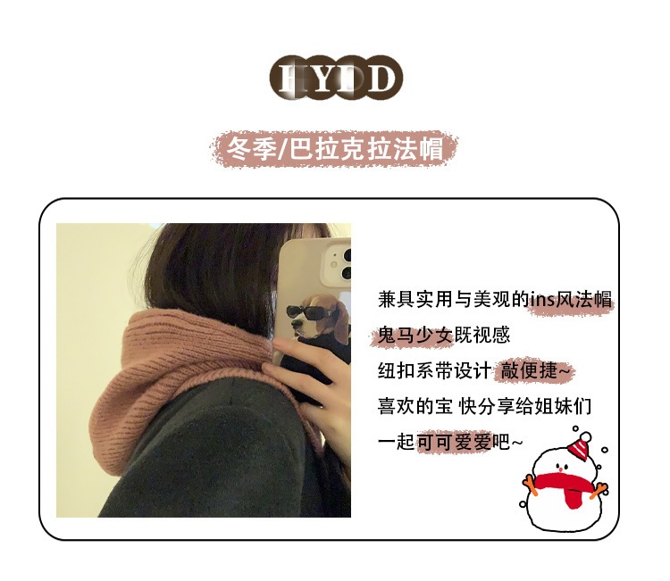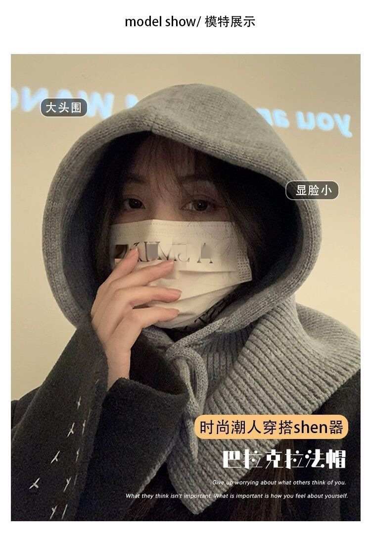 韩国巴拉克拉法帽秋冬季保暖帽子女款时尚围巾一体针织护耳毛线帽