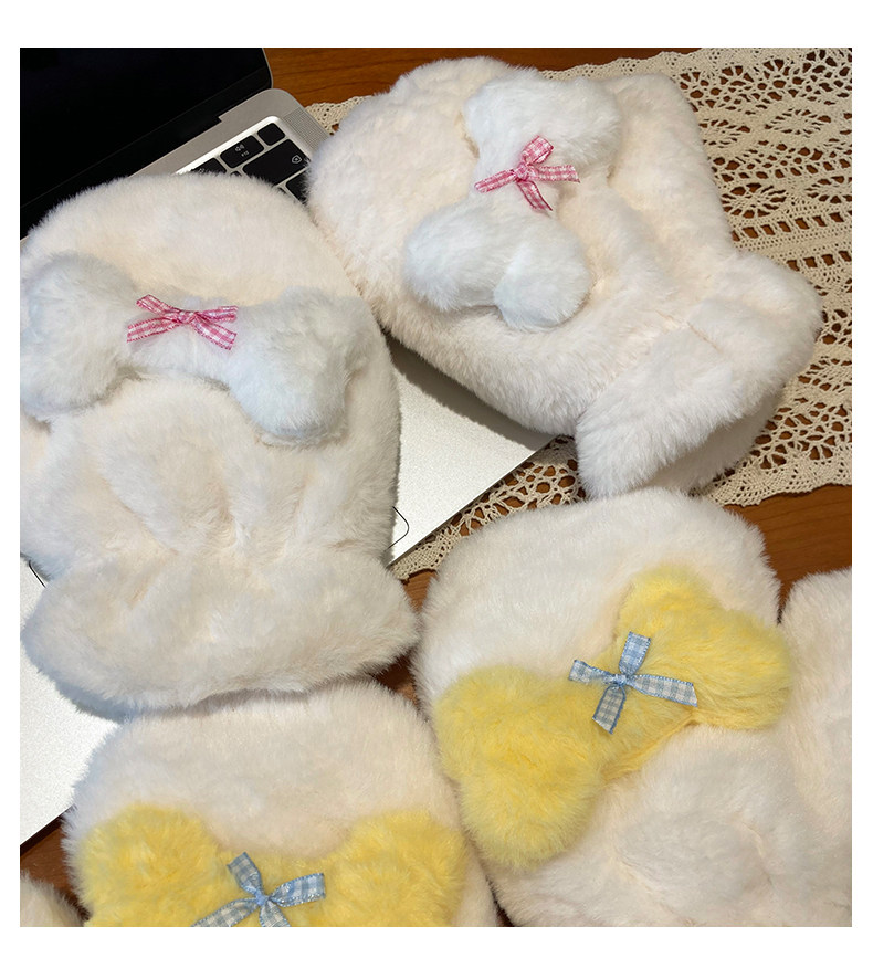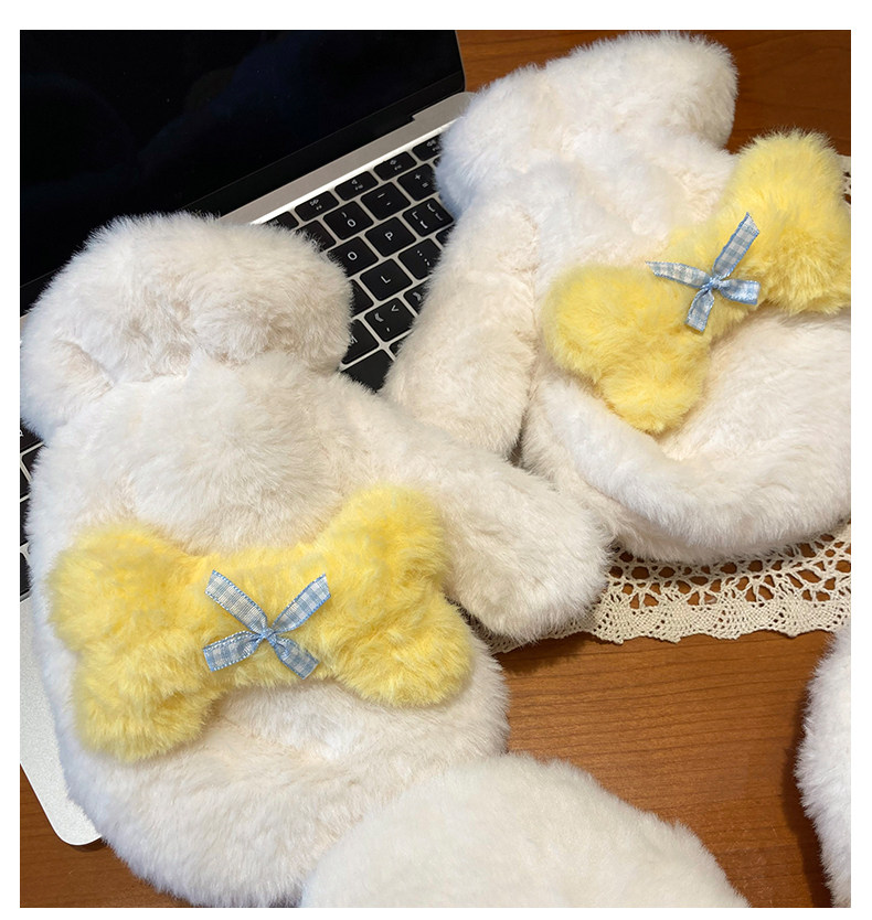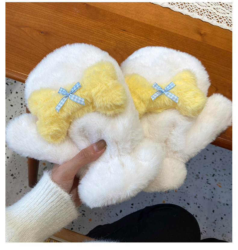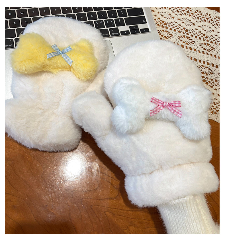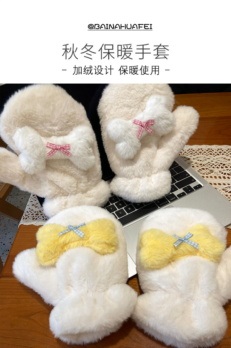 可爱蝴蝶结连指手套女冬季百搭加厚毛茸茸防寒保暖可挂脖全包手套