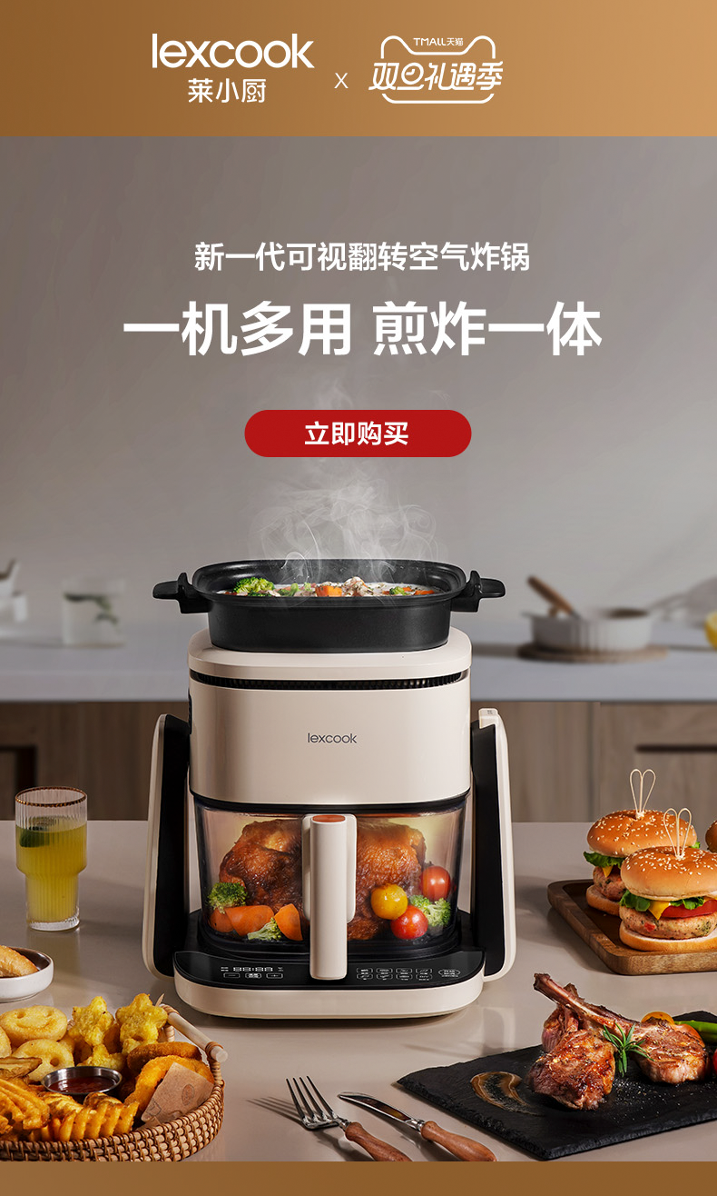 新款莱小厨可视空气炸锅翻转家用低油多功能烘烤煎炸煮一体电炸锅