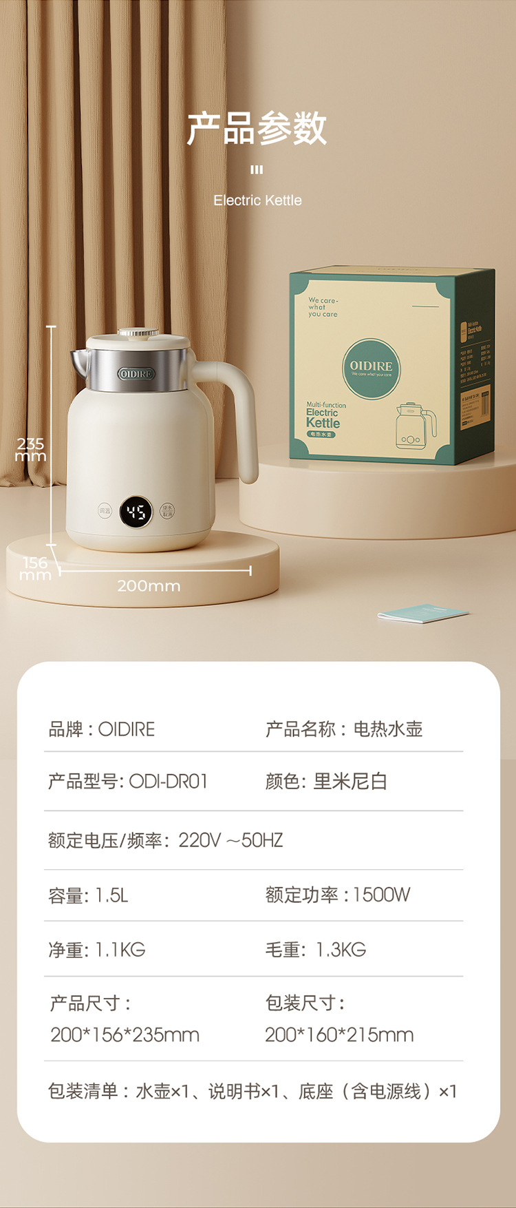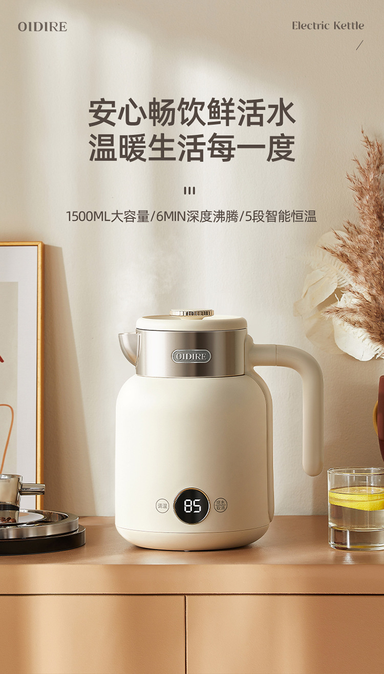 德国OIDIRE电热水壶家用新款304不锈钢全自动恒温开水保温烧水壶