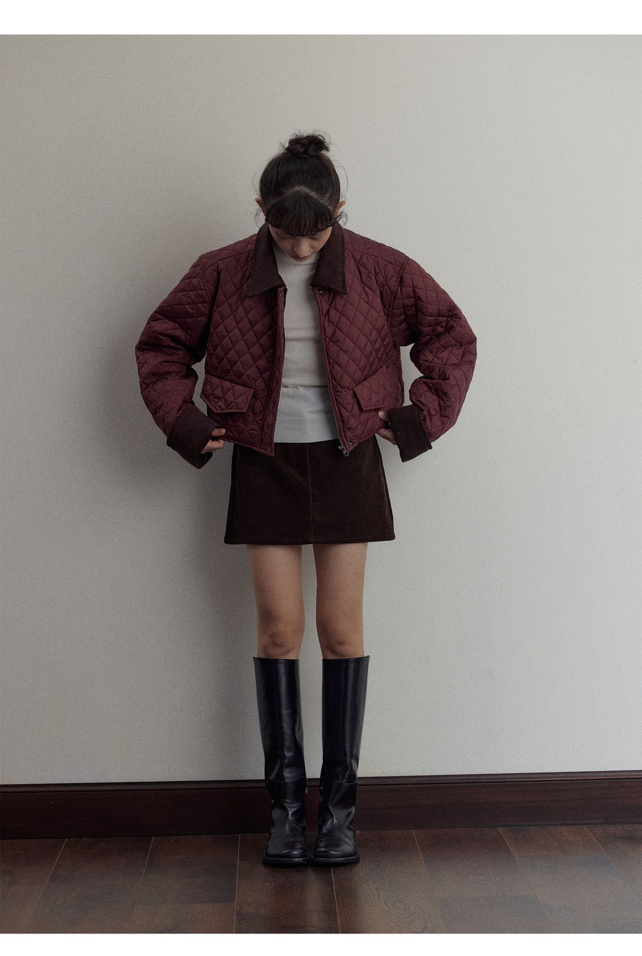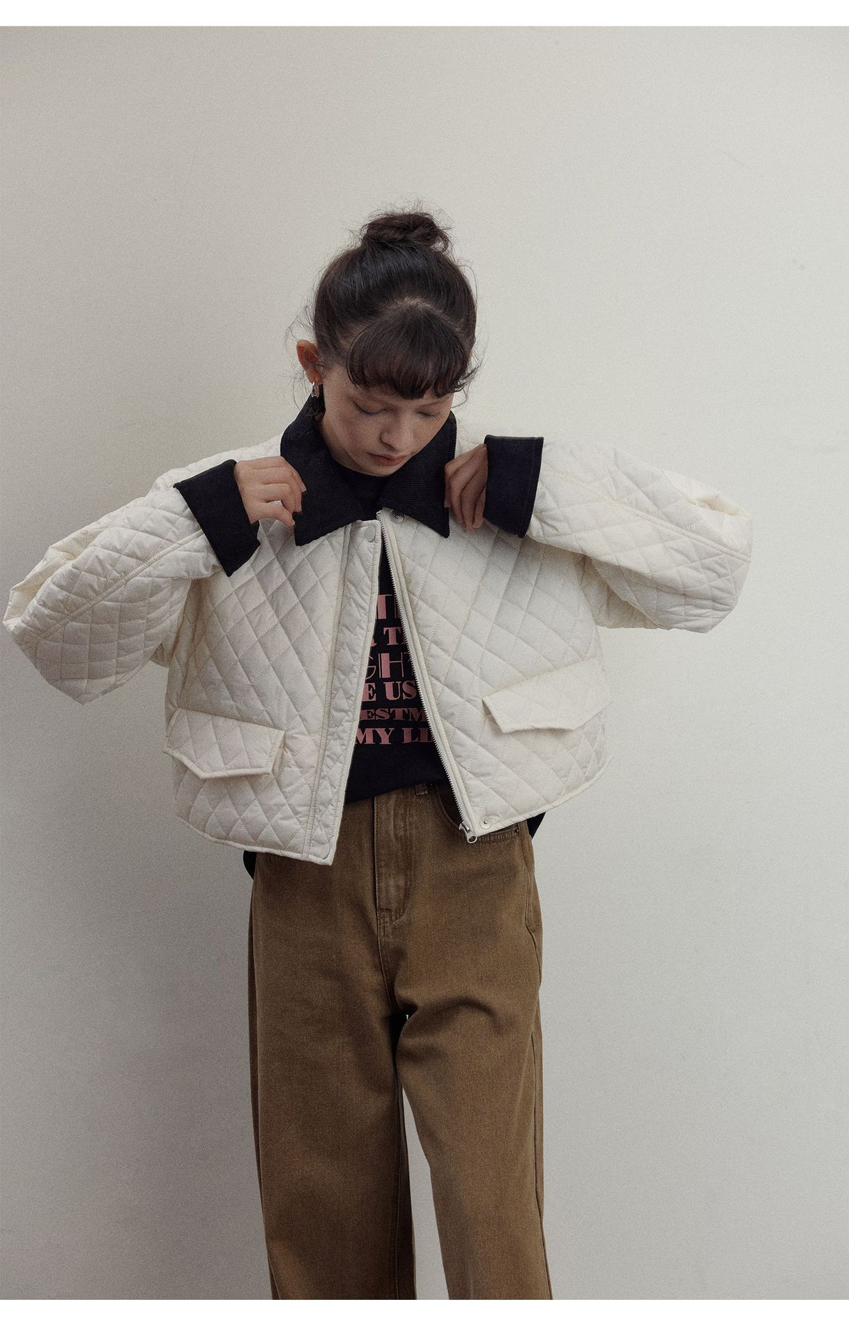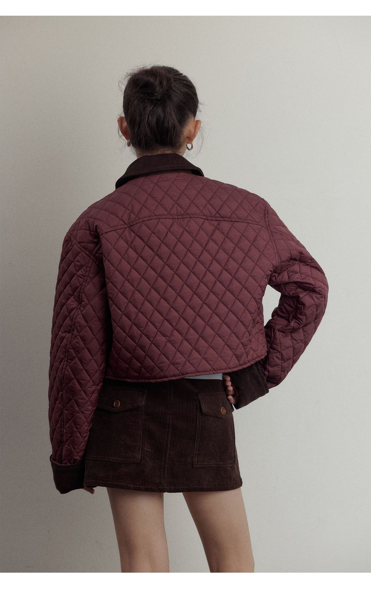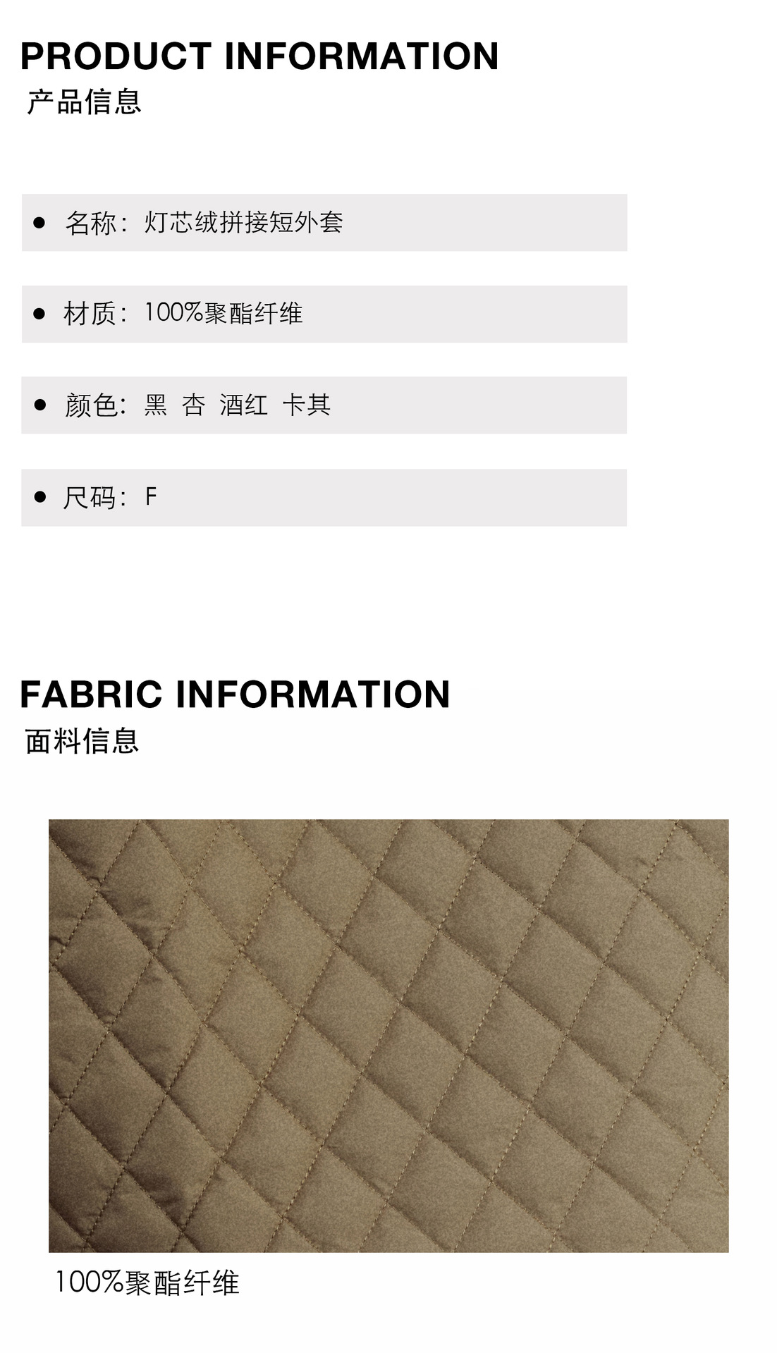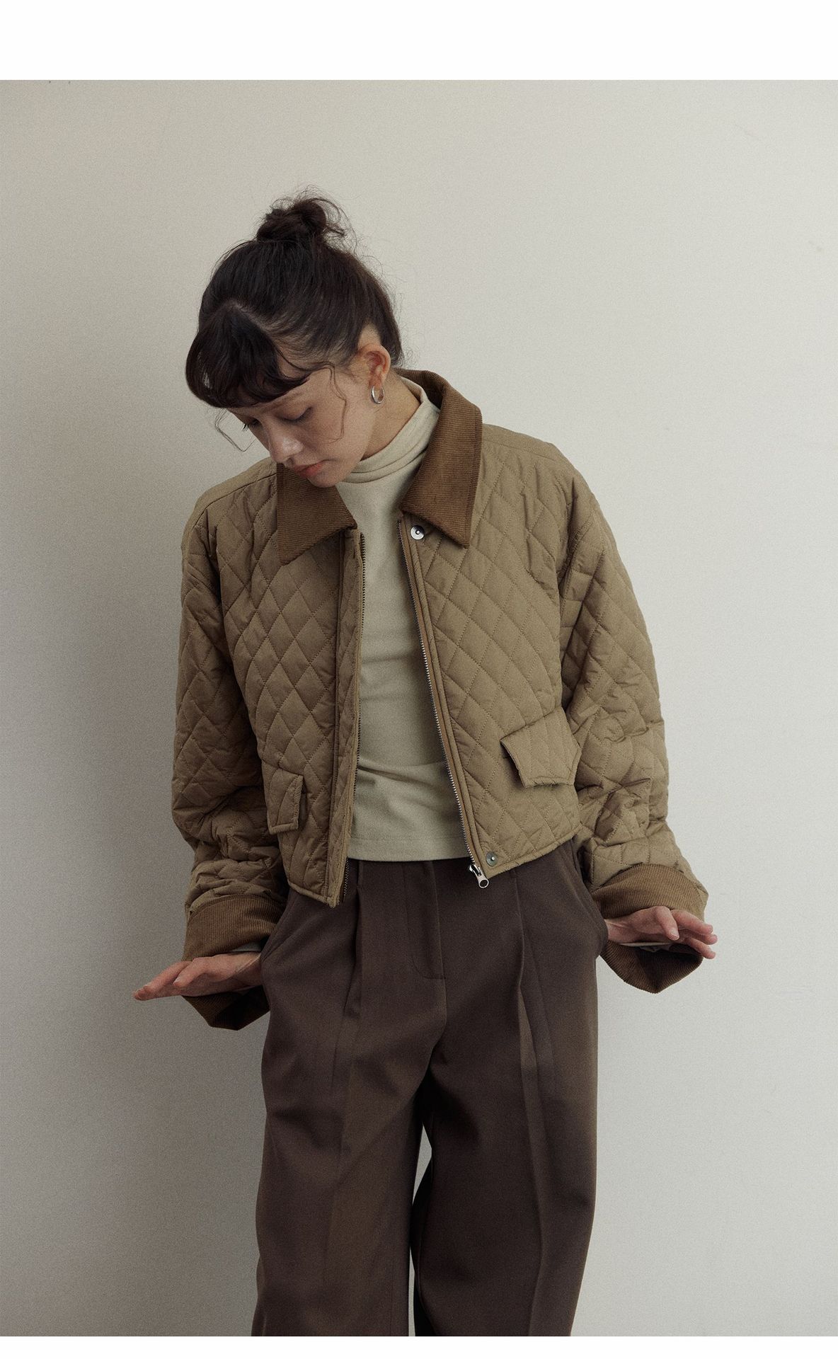 【玳禾】秋冬新品休闲翻领灯芯绒绗缝拼接撞色短款棉衣外套H5610