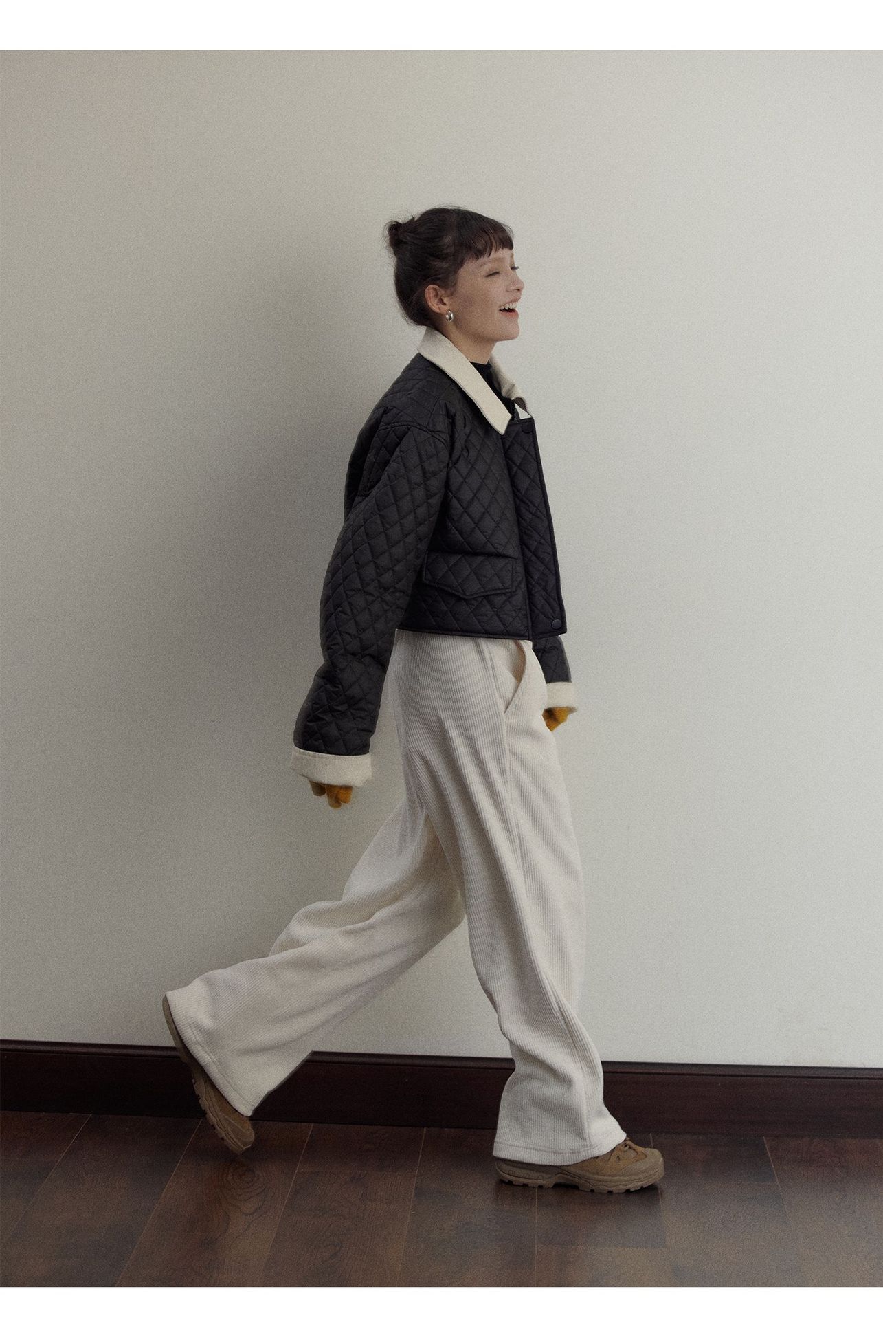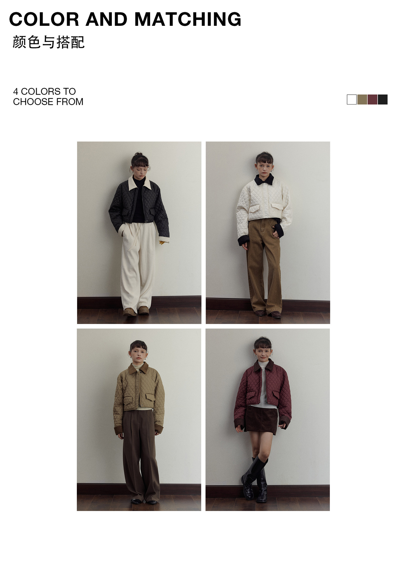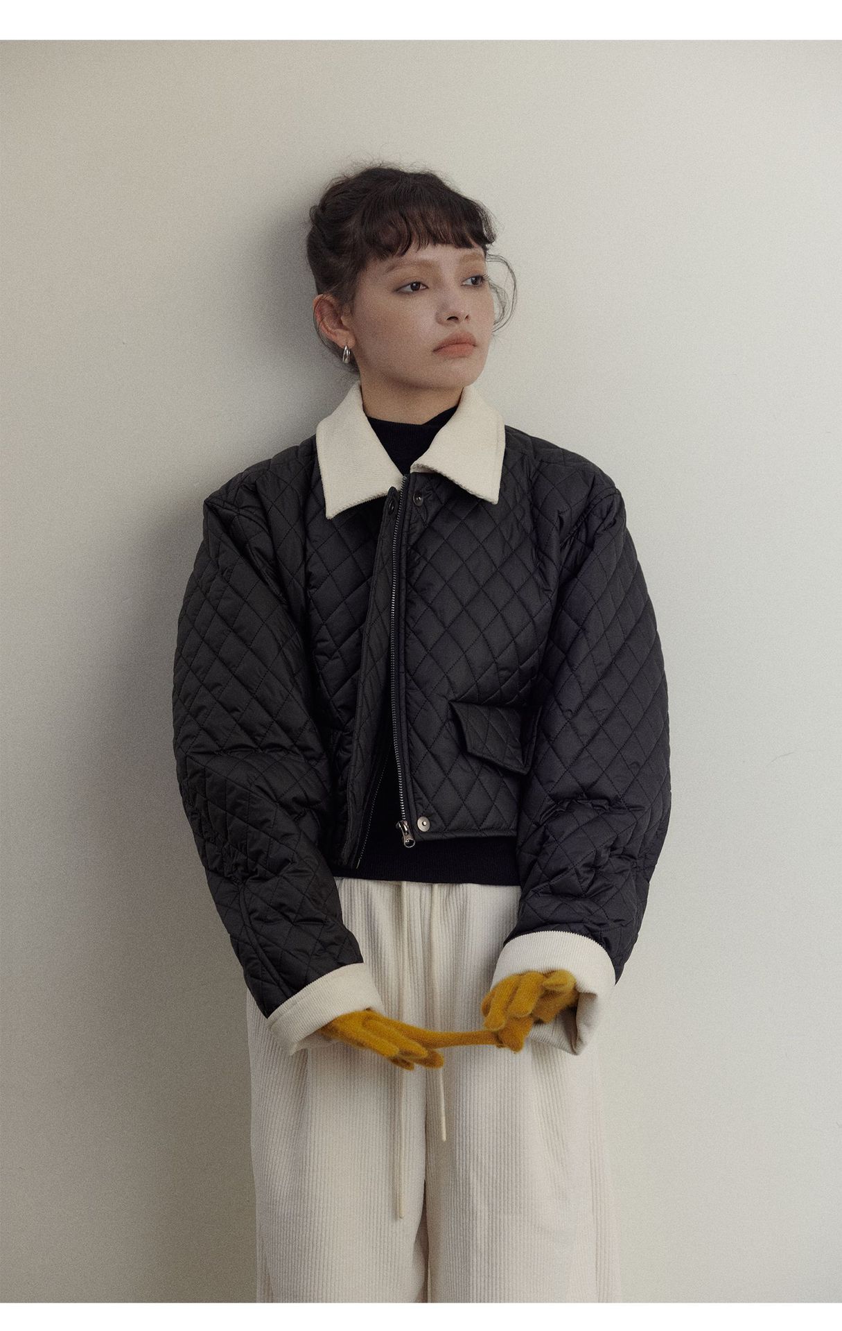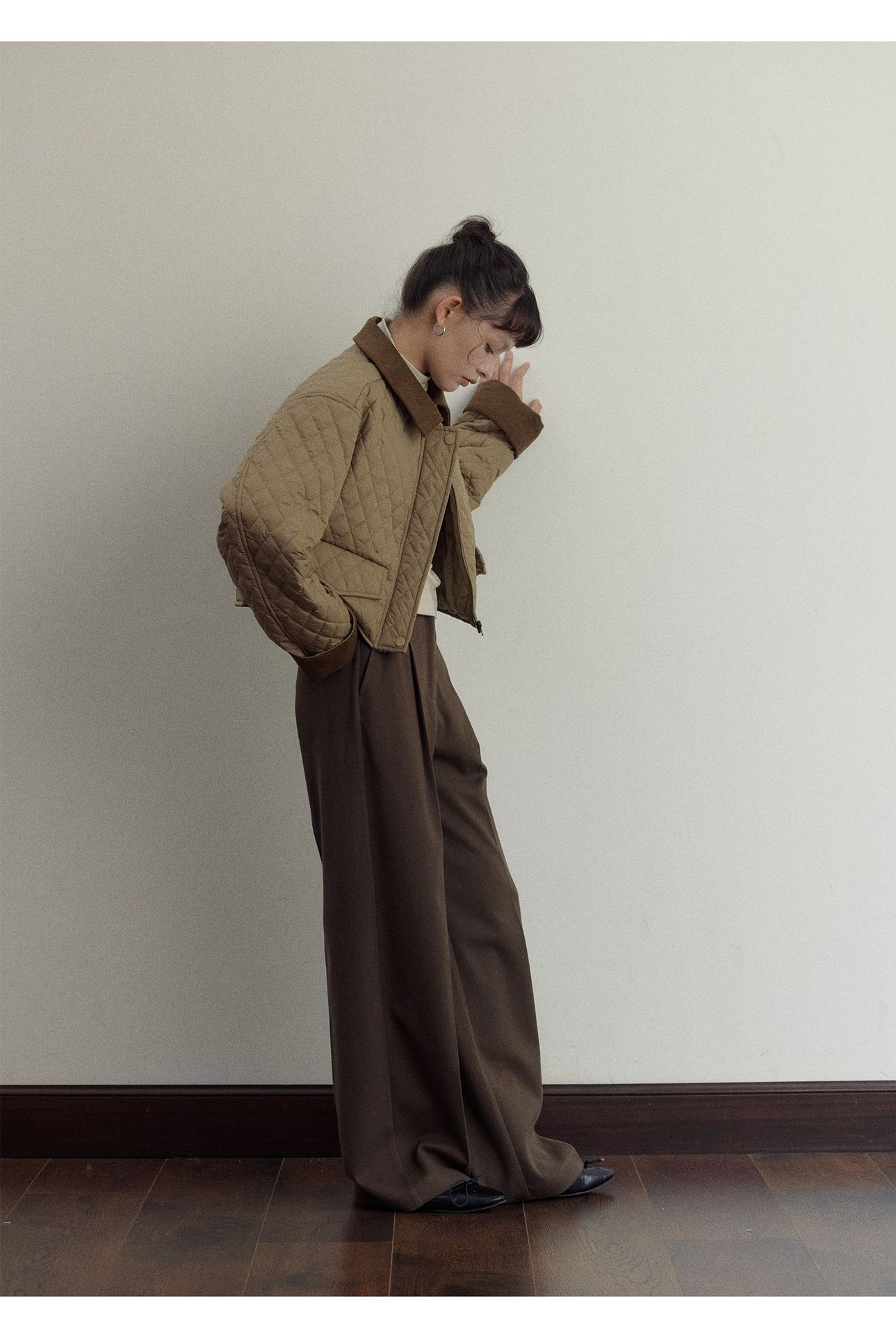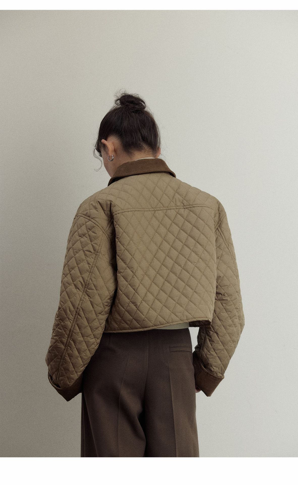 【玳禾】秋冬新品休闲翻领灯芯绒绗缝拼接撞色短款棉衣外套H5610