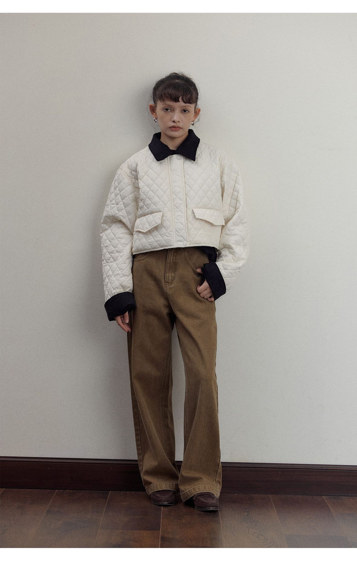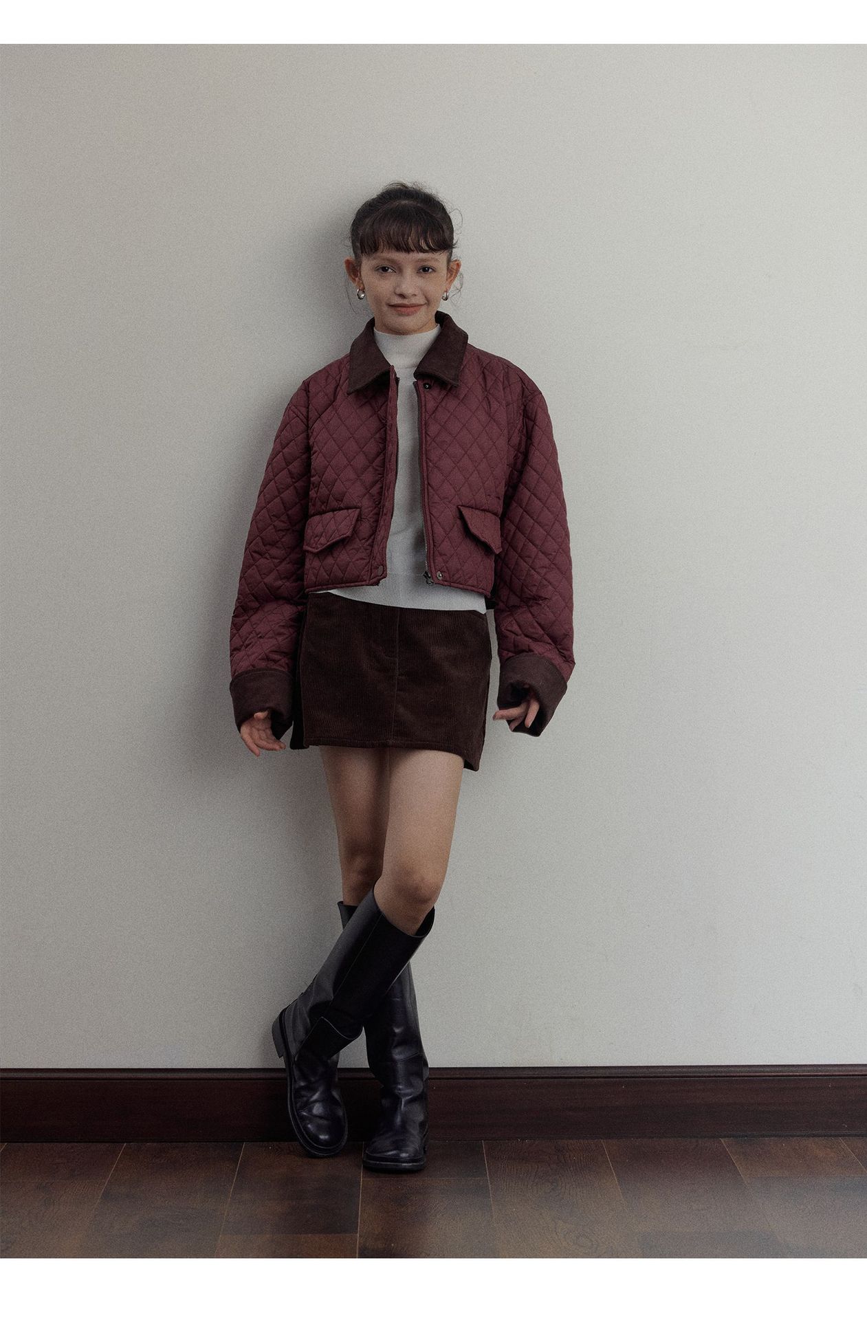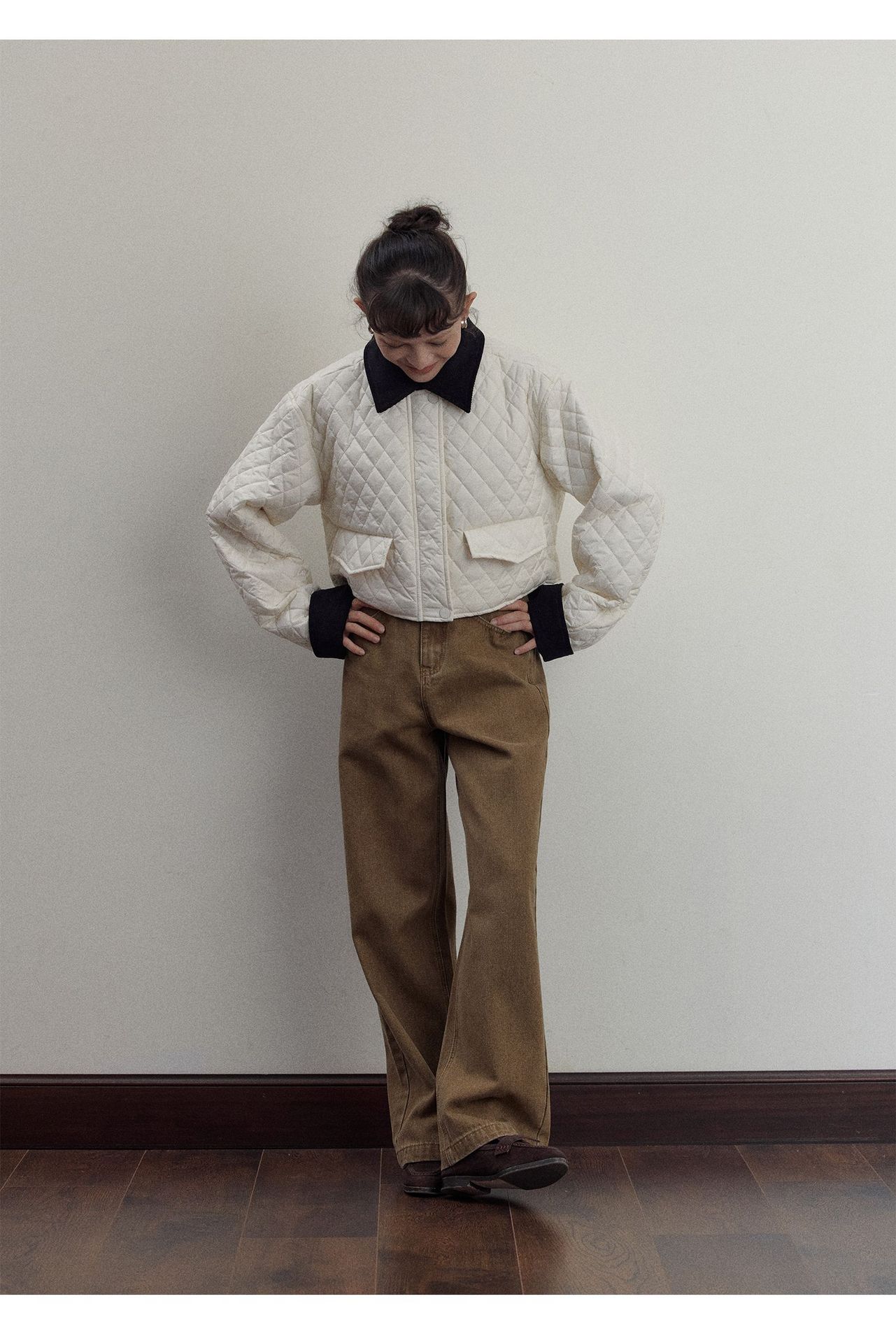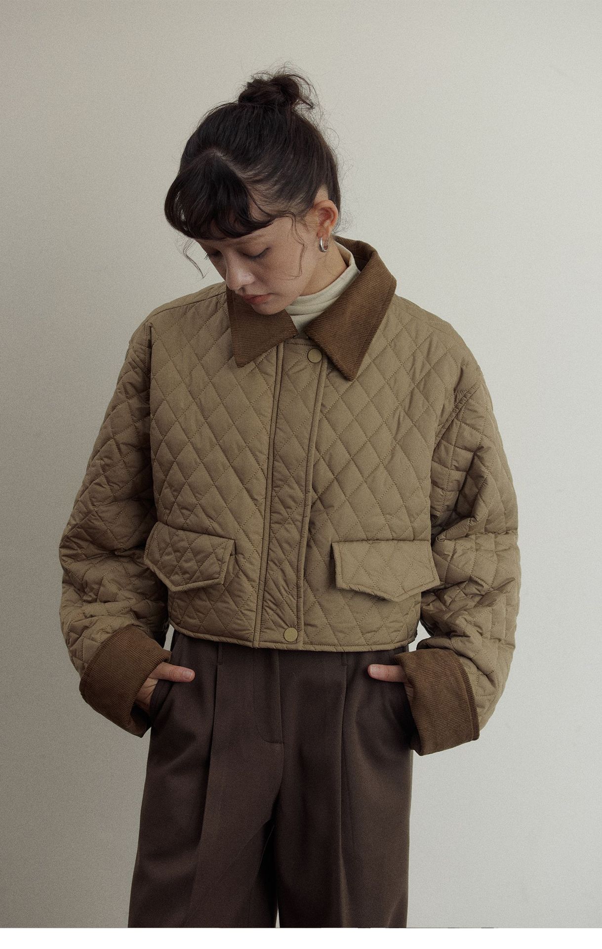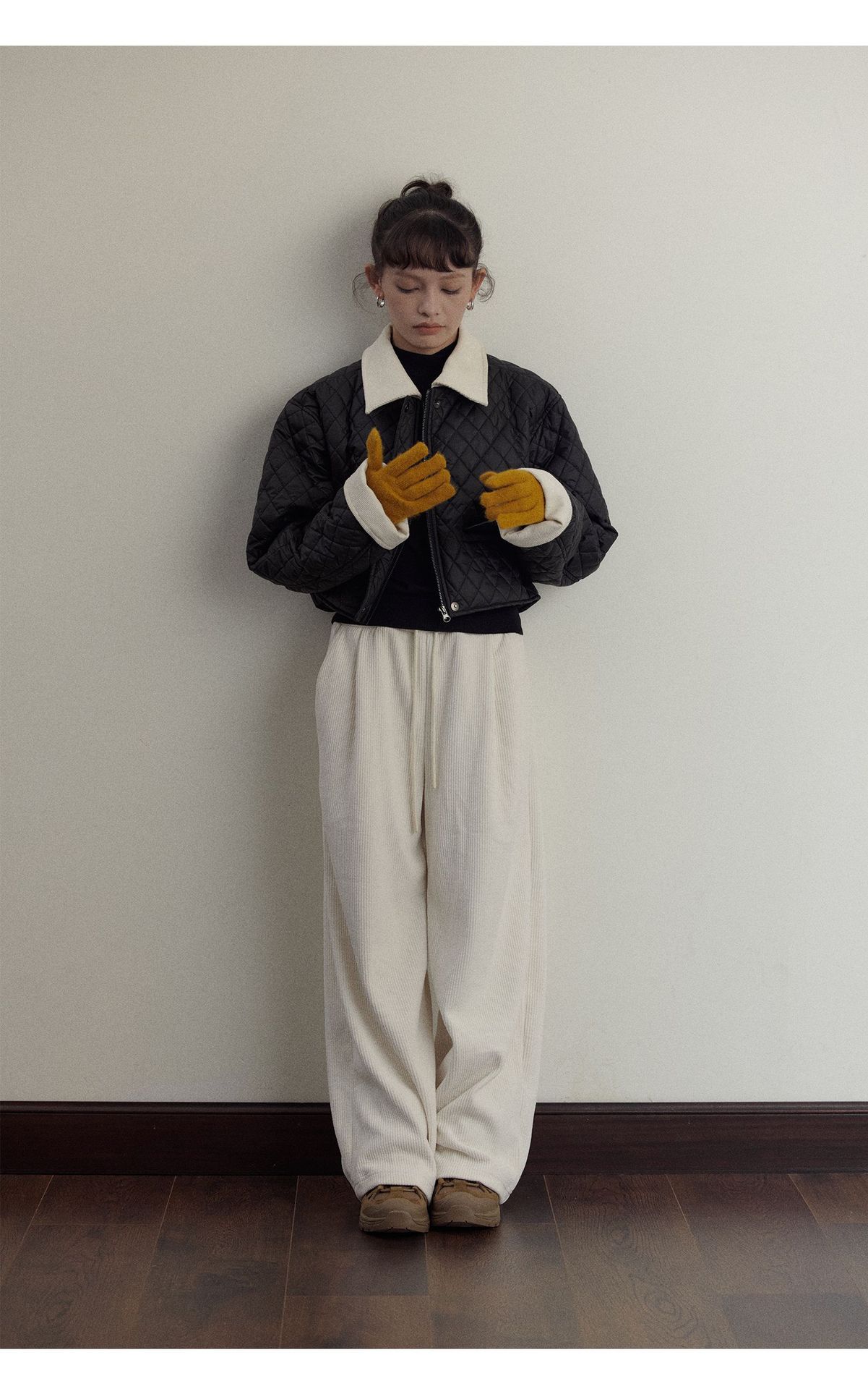 【玳禾】秋冬新品休闲翻领灯芯绒绗缝拼接撞色短款棉衣外套H5610