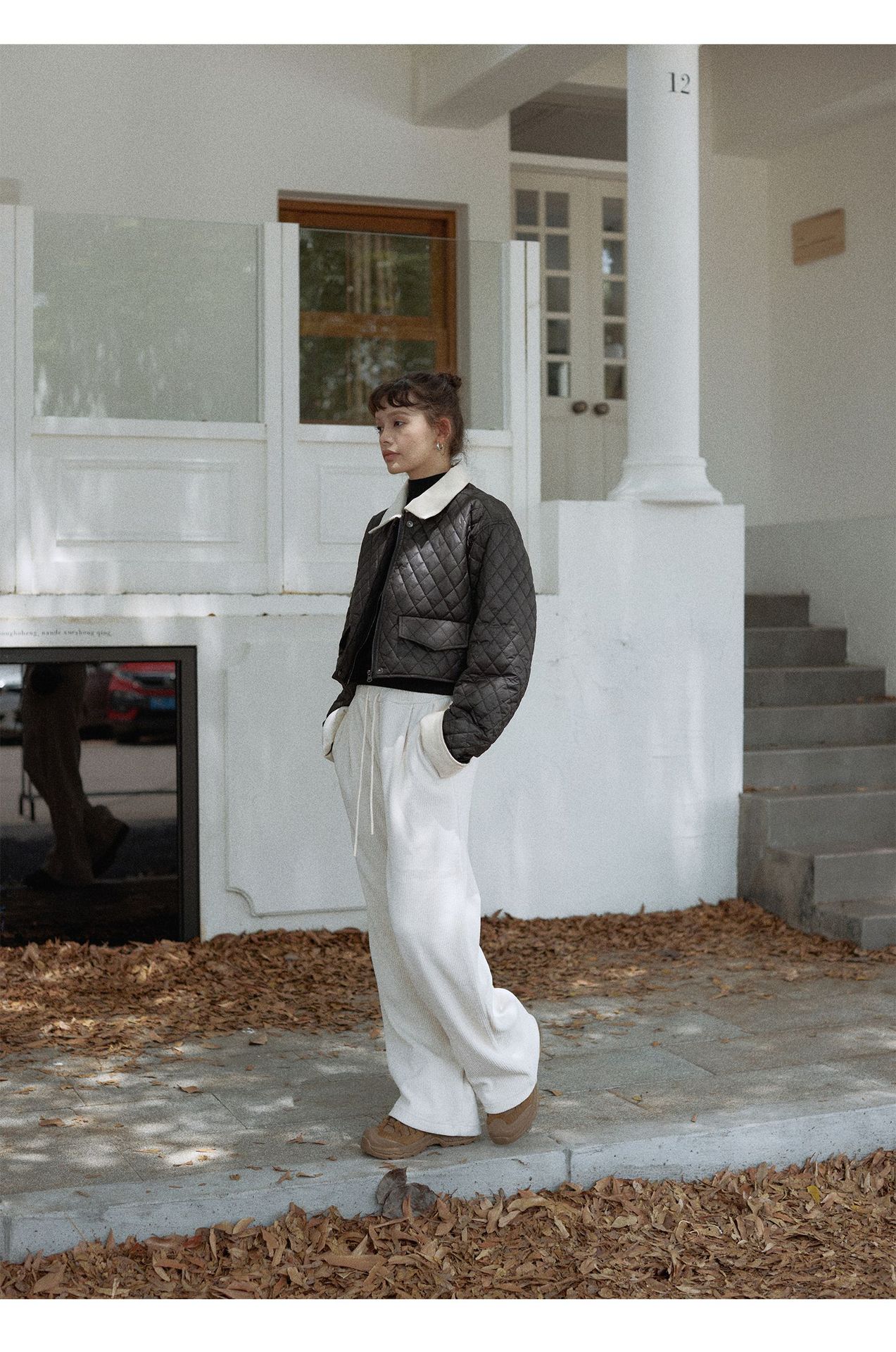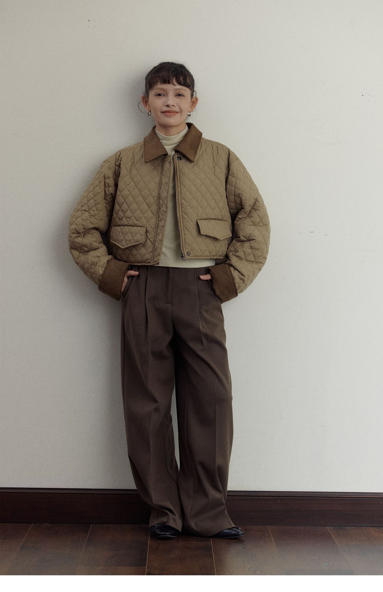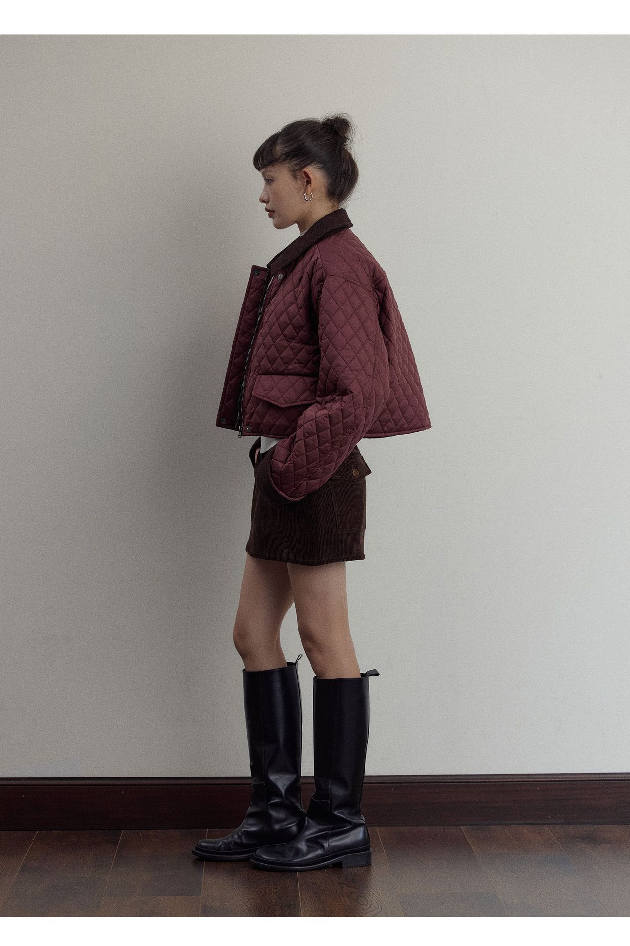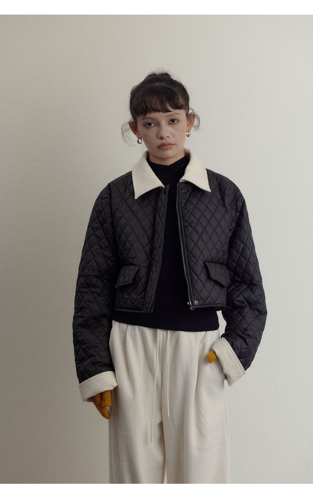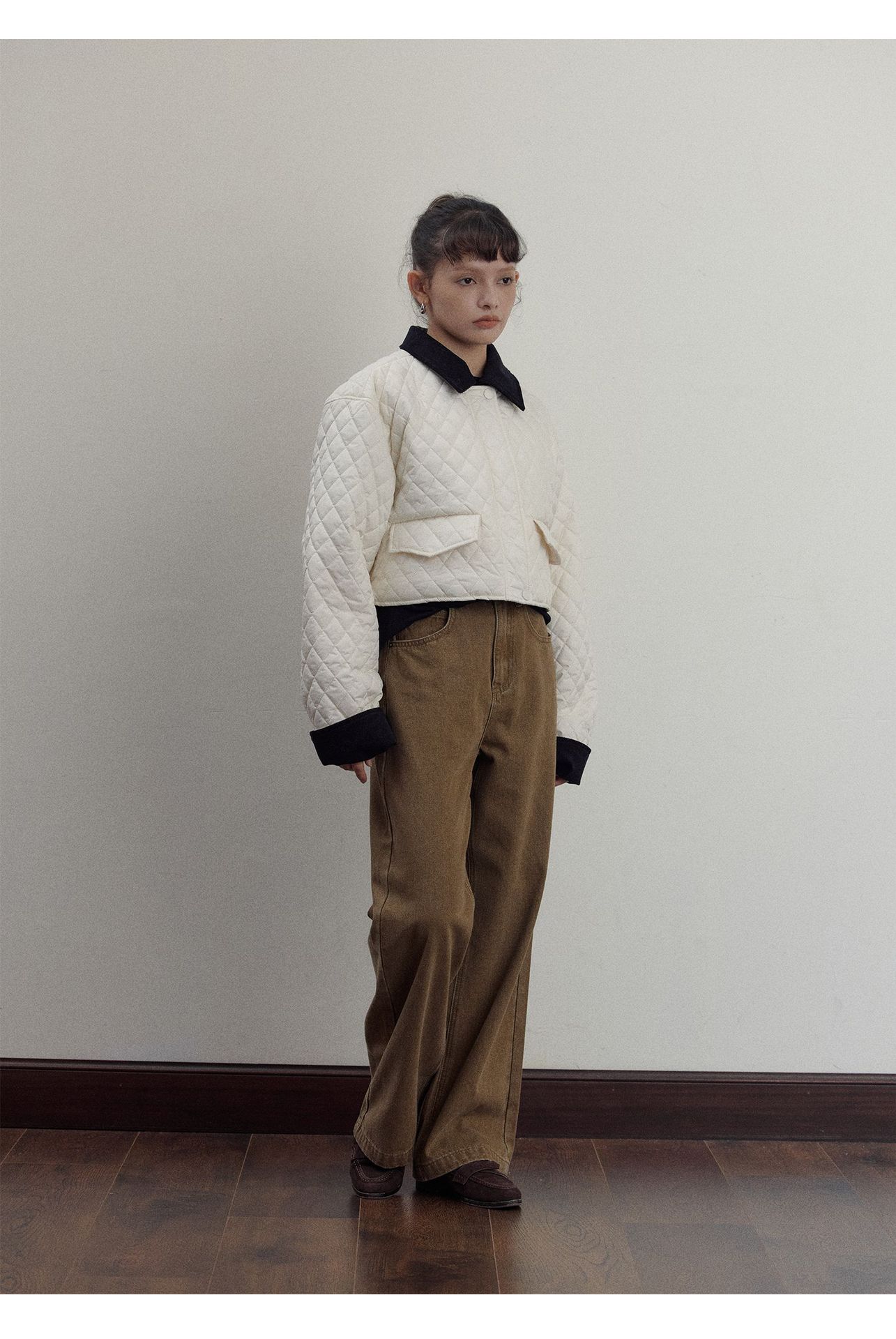 【玳禾】秋冬新品休闲翻领灯芯绒绗缝拼接撞色短款棉衣外套H5610